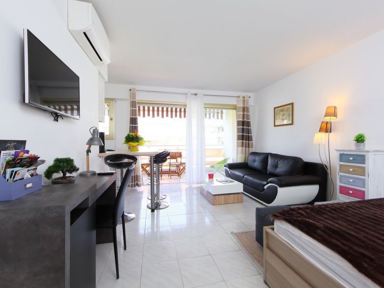 1-room apartment 27 m2 on 4th floor. Fully renovated in 2016, very beautiful furnishings: living/dining room with 1 french bed (160 cm, length 190 cm), TV (flat screen), air conditioning. Exit to the terrace. Open kitchen (oven, dishwasher, 3 induction hot plates, microwave, freezer, electric coffee machine).