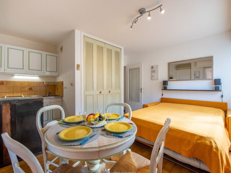 1-room studio 22 m2 on 2nd floor, south facing position. Comfortable and beautiful furnishings: living/dining room with 1 double sofabed (140 cm, length 190 cm), TV (flat screen). Exit to the balcony. Kitchenette (2 ceramic glass hob hotplates, toaster, kettle, microwave, electric coffee machine).