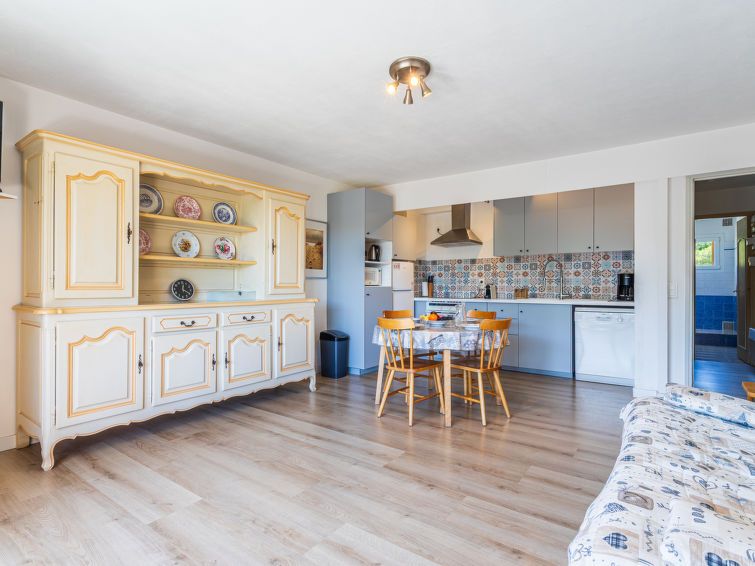 2-room apartment 47 m2 on 2nd floor. Beautiful furnishings: living room with 1 sleeping facility (140 cm, length 190 cm), TV (flat screen), air conditioning. Exit to the terrace. 1 room with 1 french bed (140 cm, length 190 cm), TV (flat screen). Open kitchen (oven, dishwasher, 4 induction hot plates, toaster, kettle, microwave, freezer, electric coffee machine, Capsules for coffee machine (Magimix) extra).