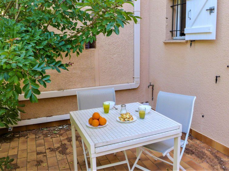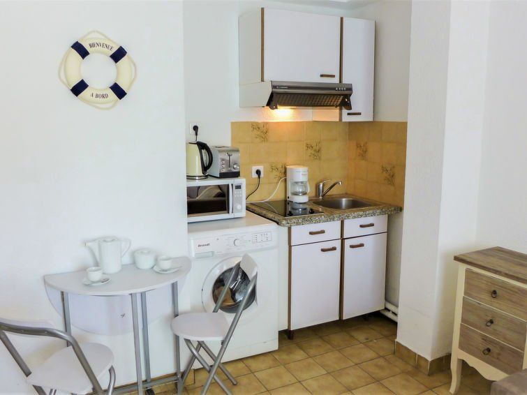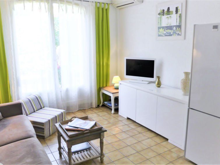 1-room studio 22 m2, on the ground floor, west facing position. Bright, practical and beautiful furnishings: living/dining room with 1 double sofabed (140 cm, length 190 cm), flat screen. Exit to the terrace. Kitchenette (oven, 2 ceramic glass hob hotplates, kettle, microwave, electric coffee machine).