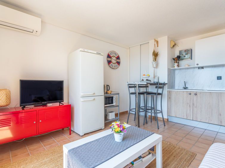 2-room apartment 30 m2 on 1st floor, south facing position. Comfortable and beautiful furnishings: living/dining room with 1 sofabed (140 cm, length 190 cm), TV (flat screen). Exit to the terrace. 1 room with 1 french bed (140 cm, length 190 cm). Kitchenette (2 induction hot plates, toaster, kettle, microwave, freezer, electric coffee machine, Capsules for coffee machine (Magimix)).
