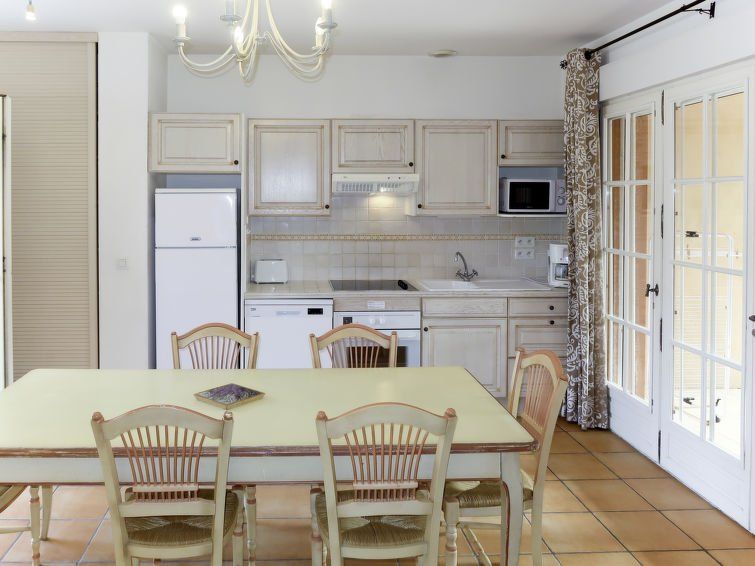 "Domaine de Fayence M4K", 2-room terraced house 41 m2. Object suitable for 2 adults + 2 children. Practical and tasteful furnishings: living/dining room with dining table and satellite TV. Exit to the terrace. 1 room with 1 french bed. Open alcove with 1 x 2 bunk beds. Kitchenette (dishwasher, 2 ceramic glass hob hotplates, combination microwave).
