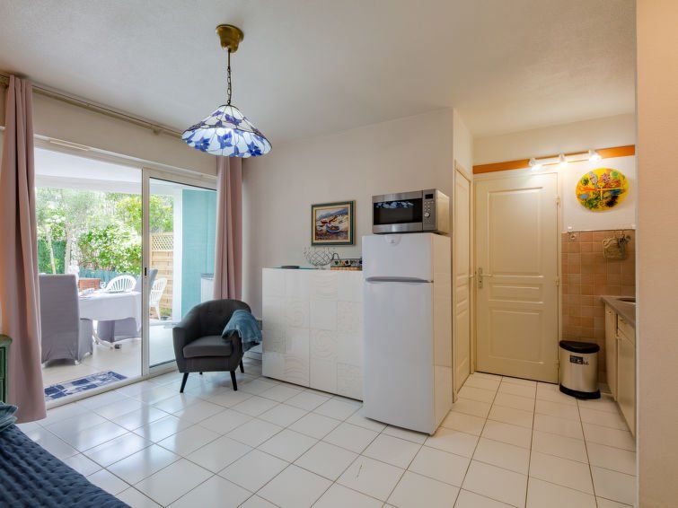 2-room apartment 40 m2, on the ground floor. Living/dining room with 1 double sofabed (1 x 140 cm, length 190 cm), TV and air conditioning. Exit to the veranda. 1 room with 1 french bed (1 x 140 cm, length 190 cm), TV. Open kitchen (2 hot plates, oven, dishwasher, toaster, kettle, microwave, freezer, electric coffee machine).
