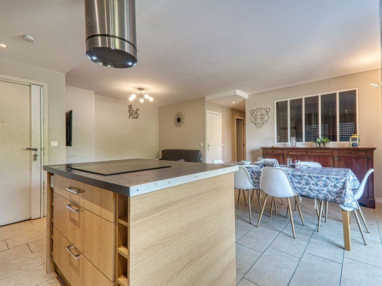 3-room apartment 55 m2 on 2nd floor. Living/dining room with TV (flat screen), air conditioning. Exit to the balcony. 1 room with 1 french bed (1 x 160 cm, length 200 cm). Exit to the balcony. 1 room with 2 beds (80 cm, length 200 cm). Open kitchen (oven, dishwasher, 4 ceramic glass hob hotplates, toaster, kettle, microwave, freezer, electric coffee machine, Capsules for coffee machine (Senseo) extra, cooking island).