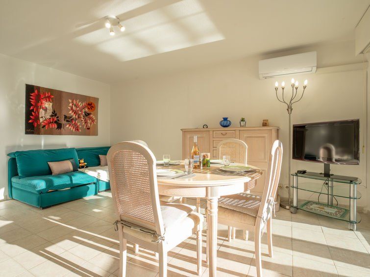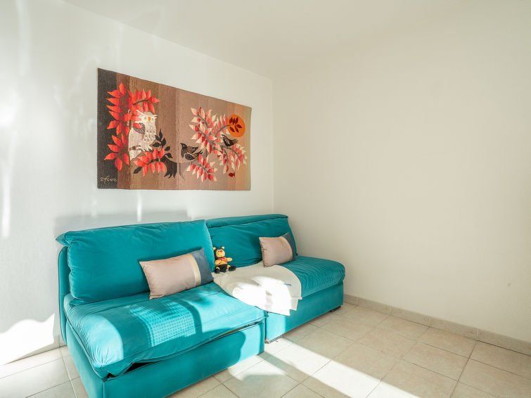 2-room apartment 45 m2, on the ground floor. Living/dining room with 2 sofabeds (1 x 90 cm, length 190 cm), dining table and TV (flat screen), air conditioning and electric shutters. Exit to the terrace. 1 room with 1 french bed (1 x 140 cm, length 190 cm). Open kitchen (oven, dishwasher, 2 ceramic glass hob hotplates, kettle, electric coffee machine).