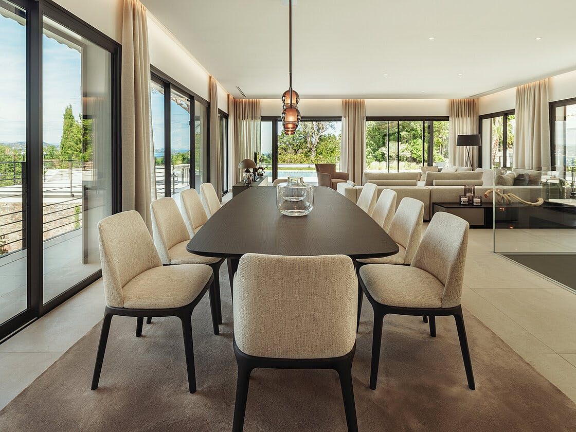 This luxurious villa awaits you, boasting splendid views and plenty of space outdoors for sharing drinks and alfresco meals. The heated private pool and home gym will help kids and adults alike get active, while the hammock and sauna provide endless relaxation both indoors and out. The Althoff Villa Belrose Hotel is just a few minutes walk away, where you'll have complimentary access to facilities like the spa and restaurant during your stay. We recommend hiring a car here – the golden Pampelonne Beach is around a ten-minute drive away, while the Port of St Tropez is even closer.