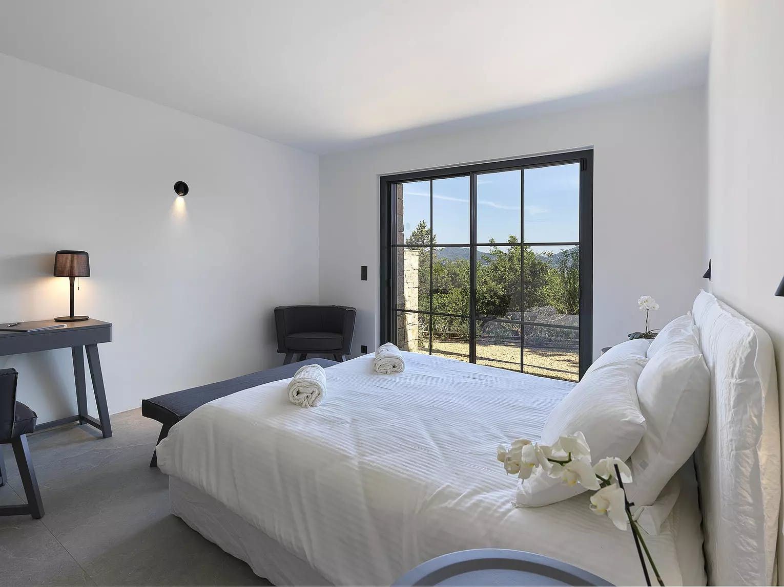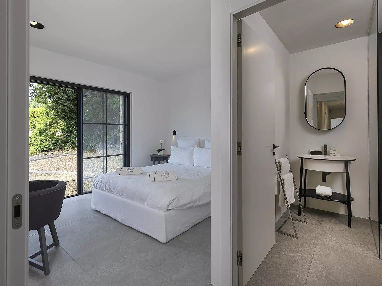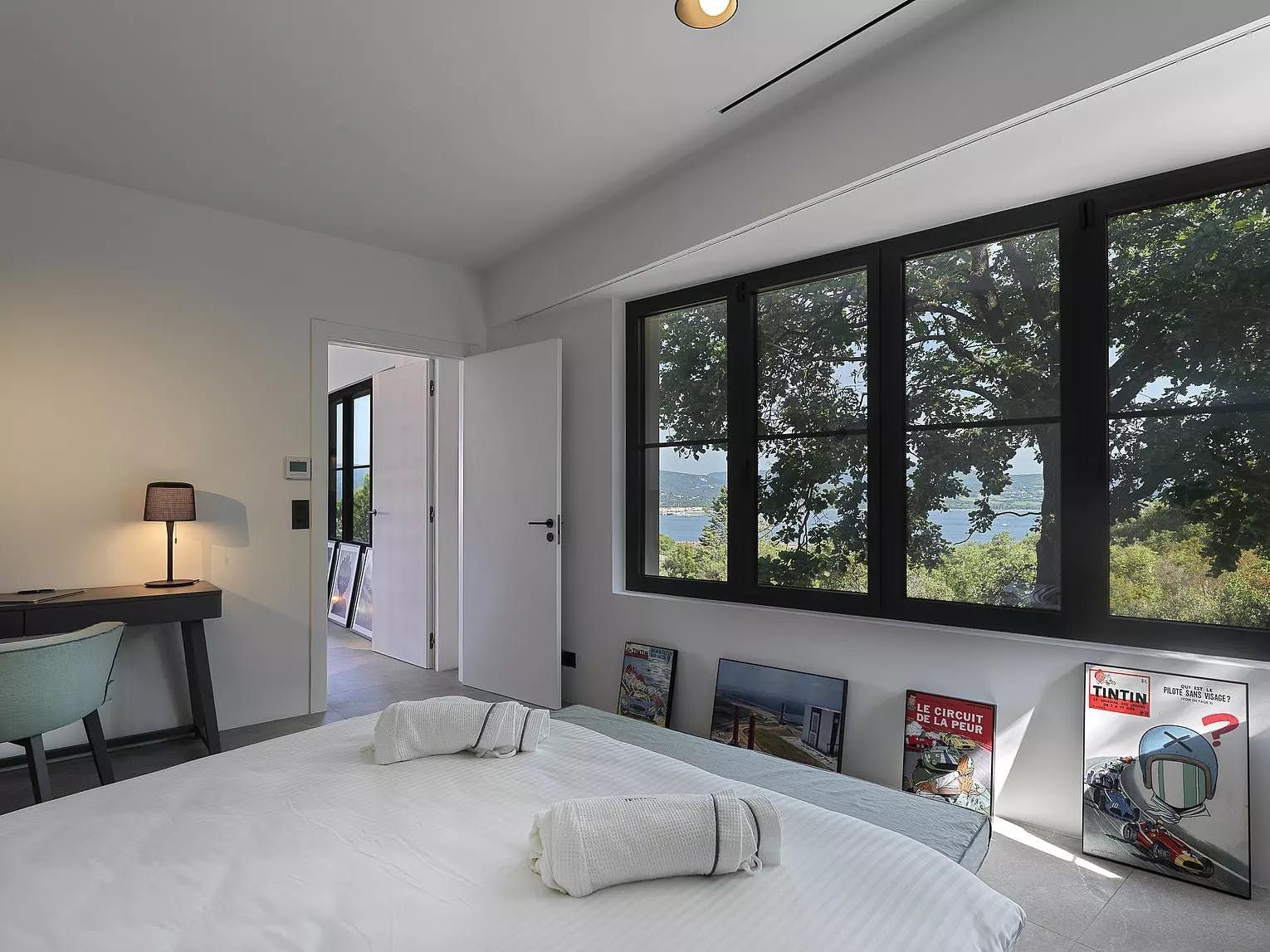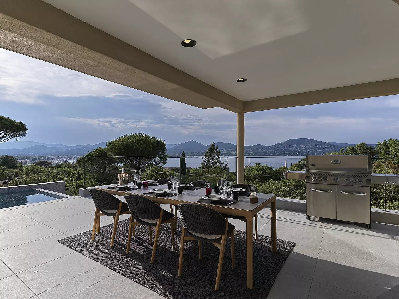 Overlooking Port Grimaud, this modern villa exemplifies coastal living with a touch of luxury. Large rooms and minimalist living spaces give way to a sweeping garden and an infinity pool that'll delight little ones. Here you'll also have your pick of outdoor seating, with everything from an alfresco dining table to sun loungers facing the beautiful natural landscape. But we didn't pick this home just for its looks. Beach lovers will find the sandy shores of Pampelonne about fifteen minutes away. And drive to the Port of St. Tropez in ten.