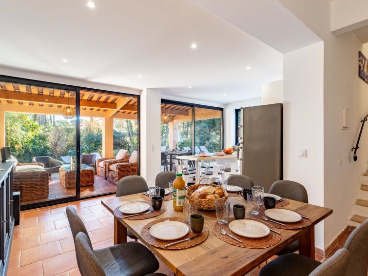 6-room villa 150 m2 on 2 levels. Beautiful furnishings: living/dining room with open-hearth fireplace (only for decoration), TV (flat screen). Exit to the terrace. 2 rooms, each room with 1 french bed (140 cm, length 200 cm). Exit to the garden. 1 room with 1 french bed (140 cm, length 200 cm), shower.