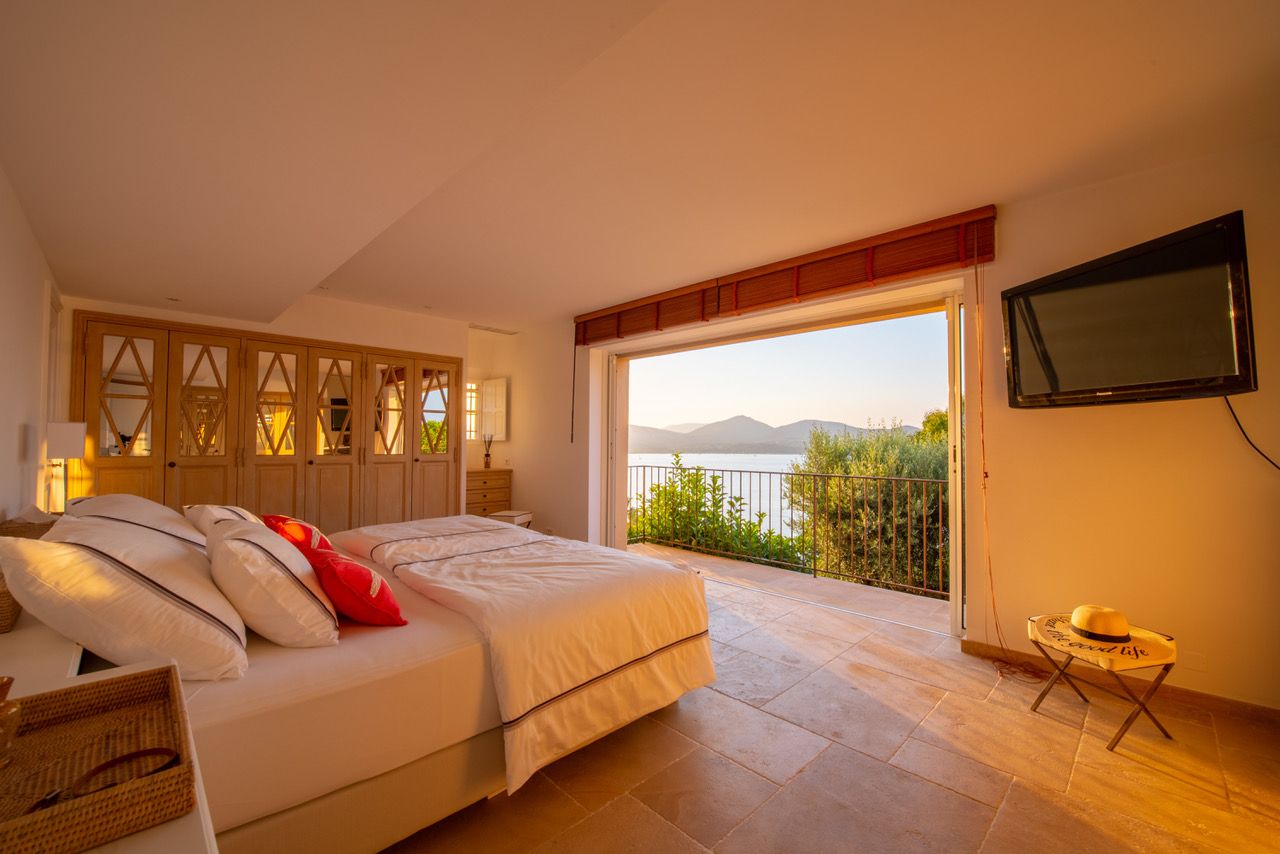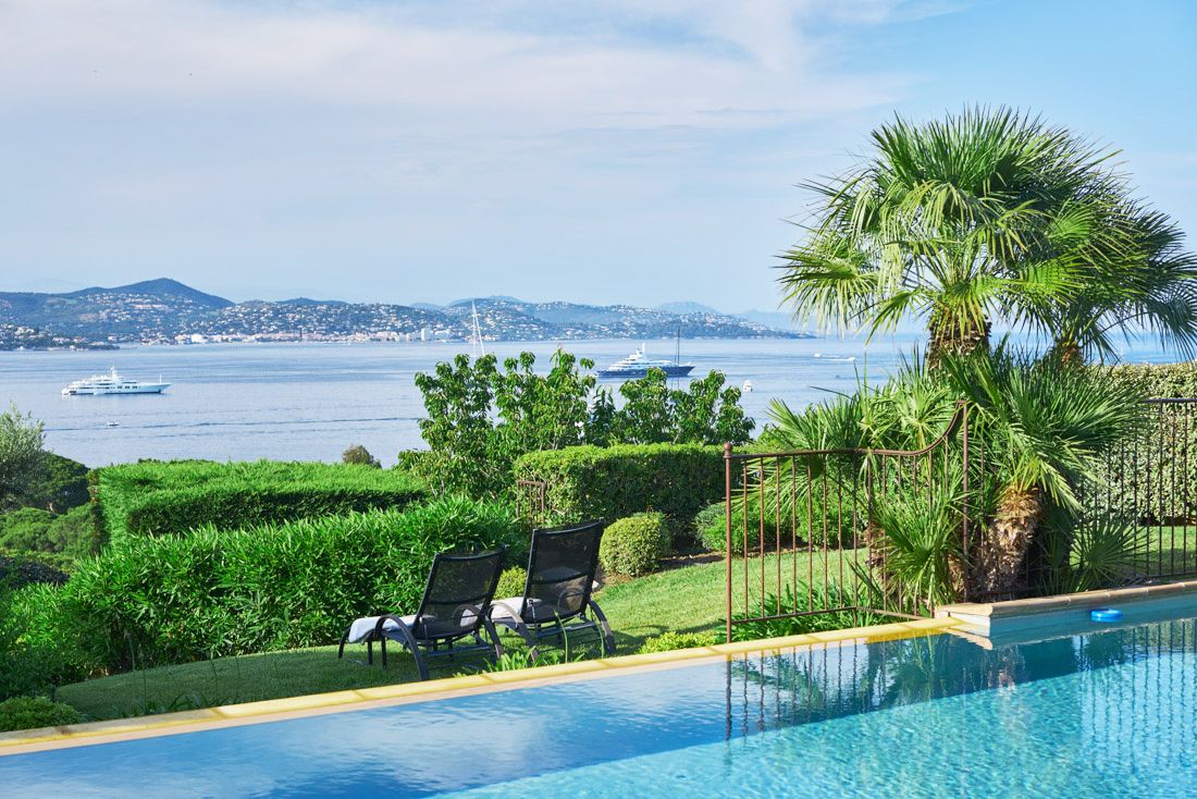 We were immediately drawn to this villa's sea views – one glance, and you'll understand why. Perched above Saint-Tropez and just a ten-minute drive from its famous beaches, it has coastal relaxation written all over it. The balcony offers a birds-eye view of the Mediterranean, as does the private pool. Even indoors, you'll catch a glimpse of the sea. There's also an on-site fitness room, sauna, and a charming covered terrace where you can indulge in alfresco meals. For a getaway on the Côte d'Azur, this home is just the ticket.