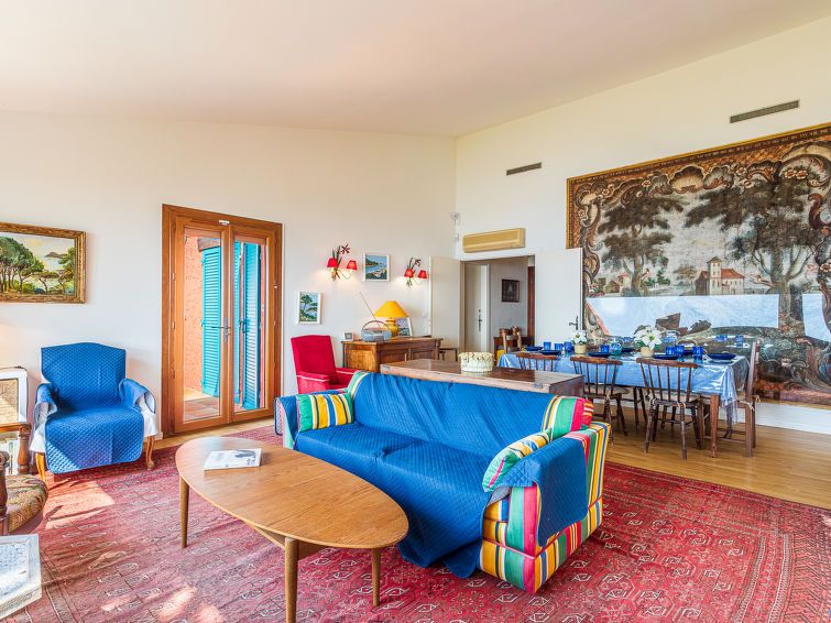 6-room villa 260 m2 on 2 levels. Object suitable for 5 adults + 2 children. Spacious, beautiful and rustic furnishings: living/dining room with dining table and air conditioning. Exit to the terrace. 1 room with 1 bed (120 cm, length 190 cm), shower/WC. Exit to the garden. Kitchen (4 hot plates, oven, dishwasher, toaster, kettle, microwave, freezer, electric coffee machine) with dining table.