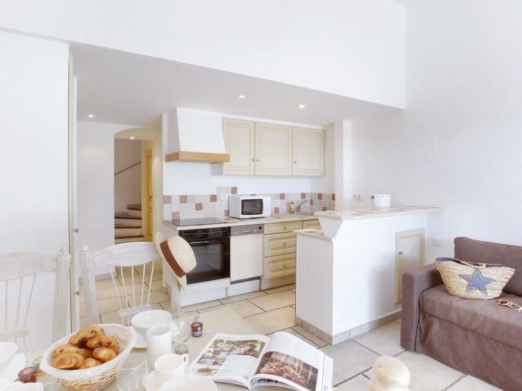 "Odalys Référence La Bastide des Chênes", 2-room terraced house 33 m2. Bright, practical and beautiful furnishings: living/sleeping room with 1 sofabed, 1 pull-out bed, dining table and satellite TV. Exit to the terrace. 1 room, without wardrobe with 1 french bed. Kitchenette (oven, dishwasher, 4 ceramic glass hob hotplates, microwave, freezer, electric coffee machine).