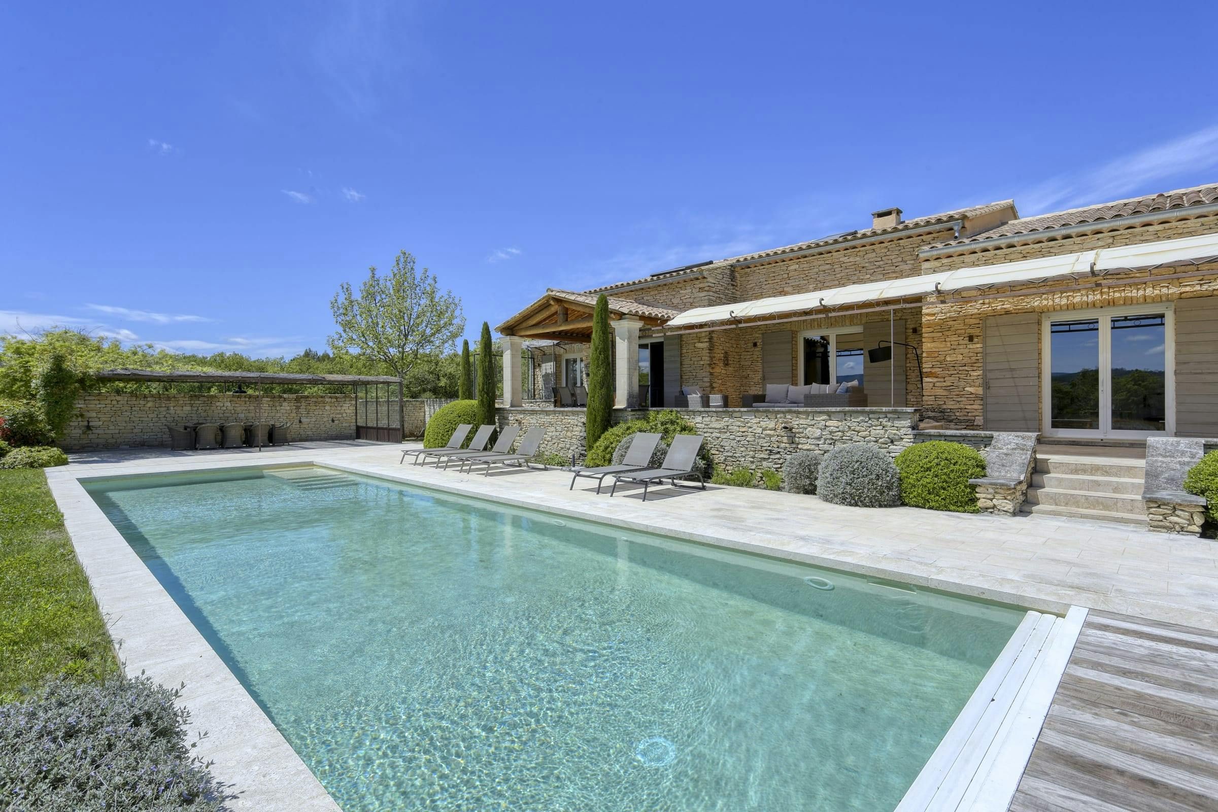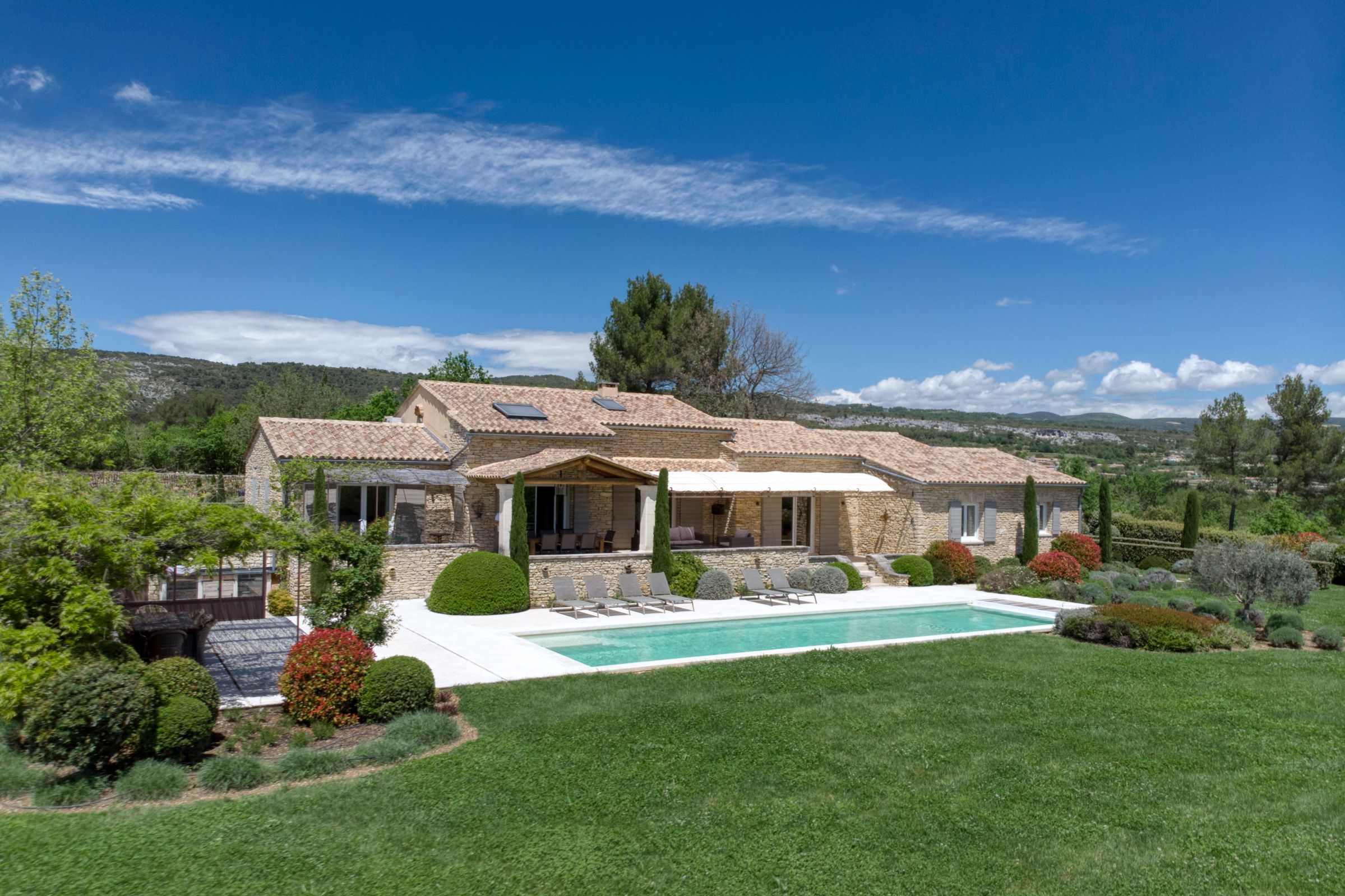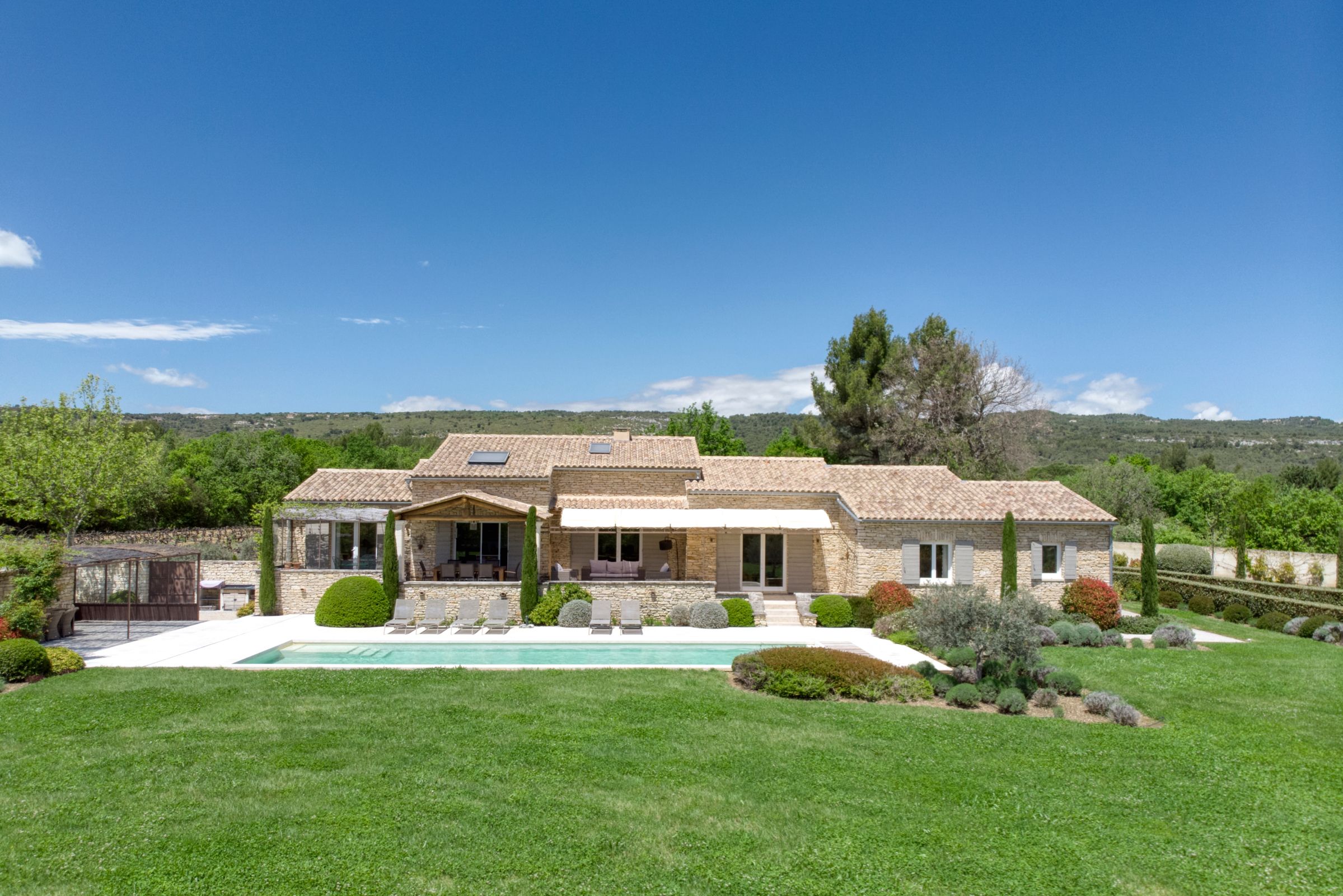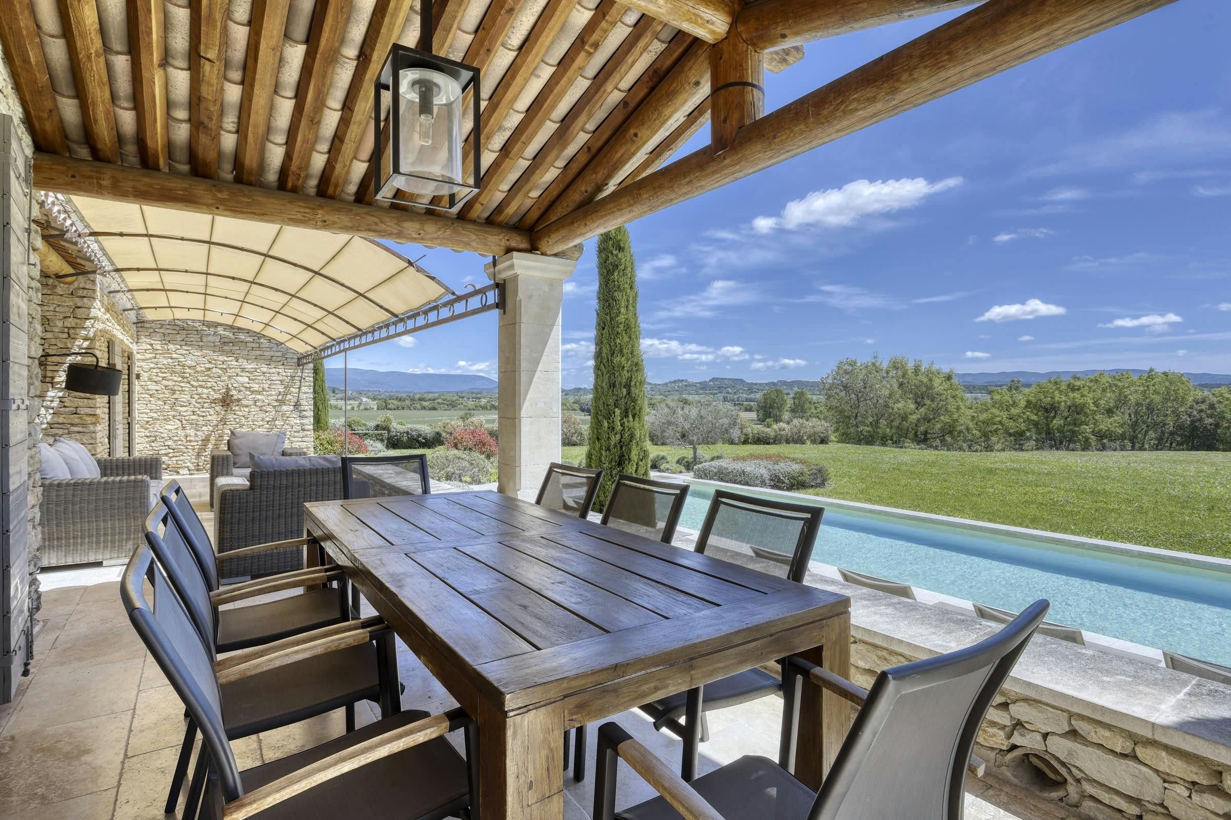 Tucked into the Provençal hills just a short drive from Roussillon and Gordes, this peaceful farmhouse is all about space, silence and sweeping views of Luberon. With multiple terraces for laid-back lunching, a large heated pool big enough for swimming lengths in, and uninterrupted countryside gardens, it’s perfect for slow days and a chance to unwind. With two separate living areas, this home is ideal for two families sharing or a chance for bigger groups to spread out. Interiors are relaxed and homely, while the thick stone walls and cooling floors will help to keep you cool and comfortable.