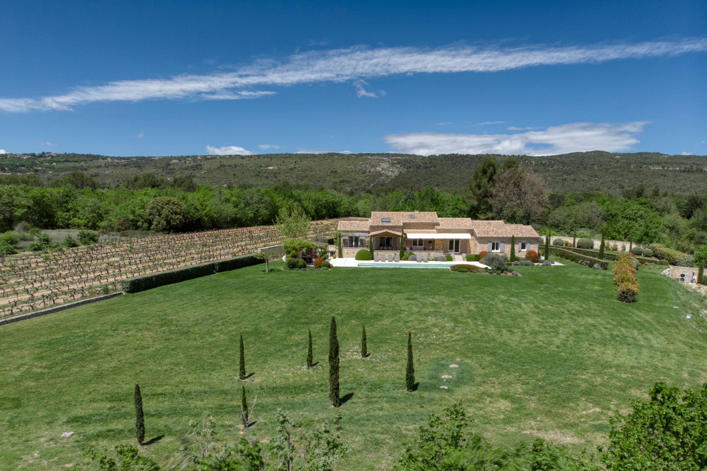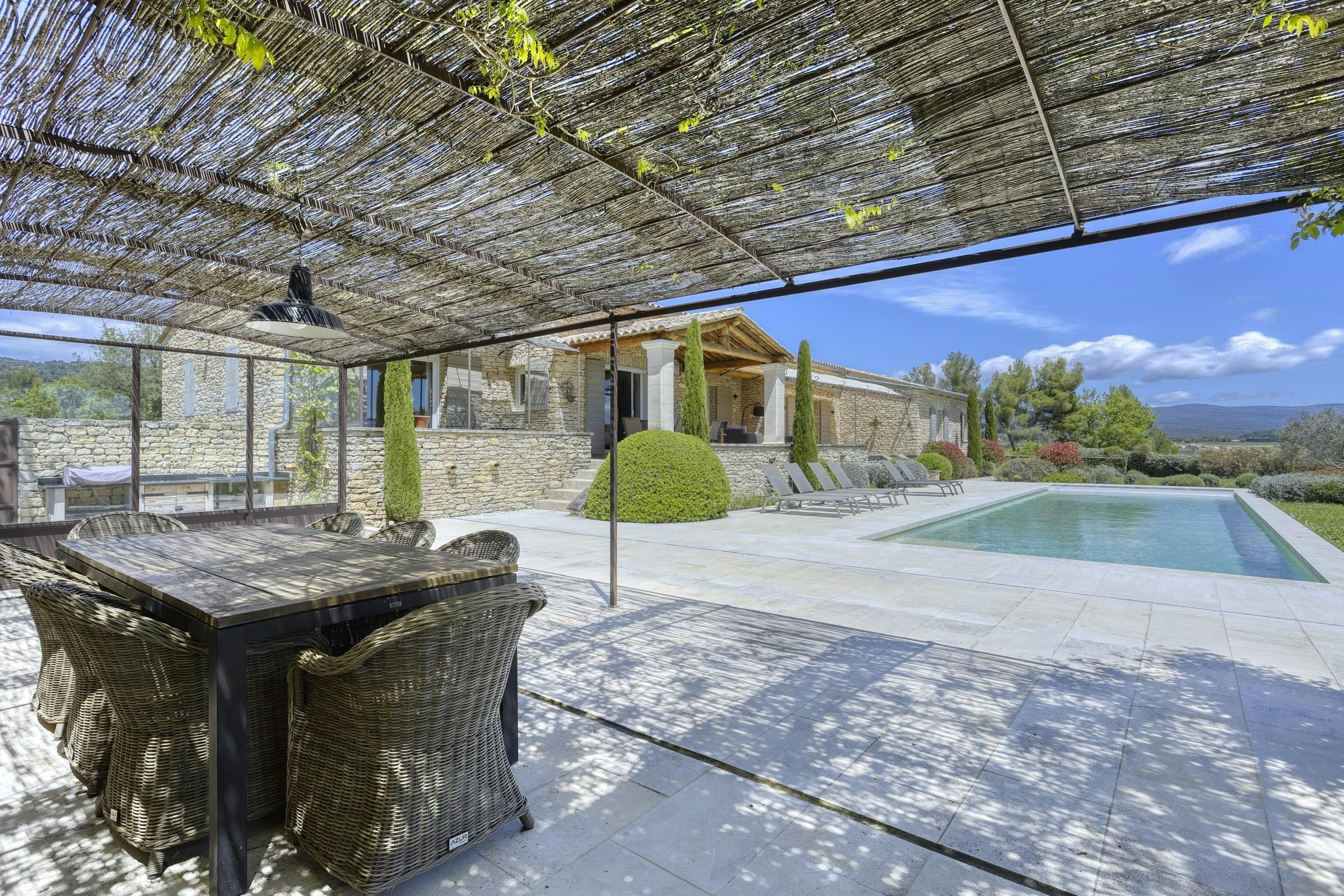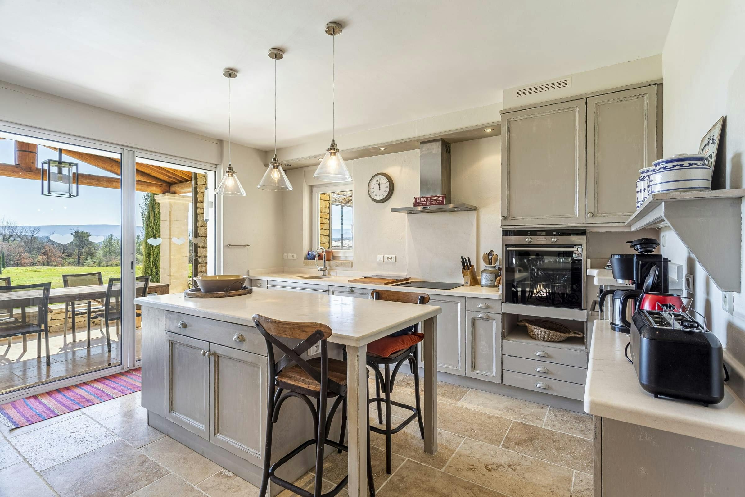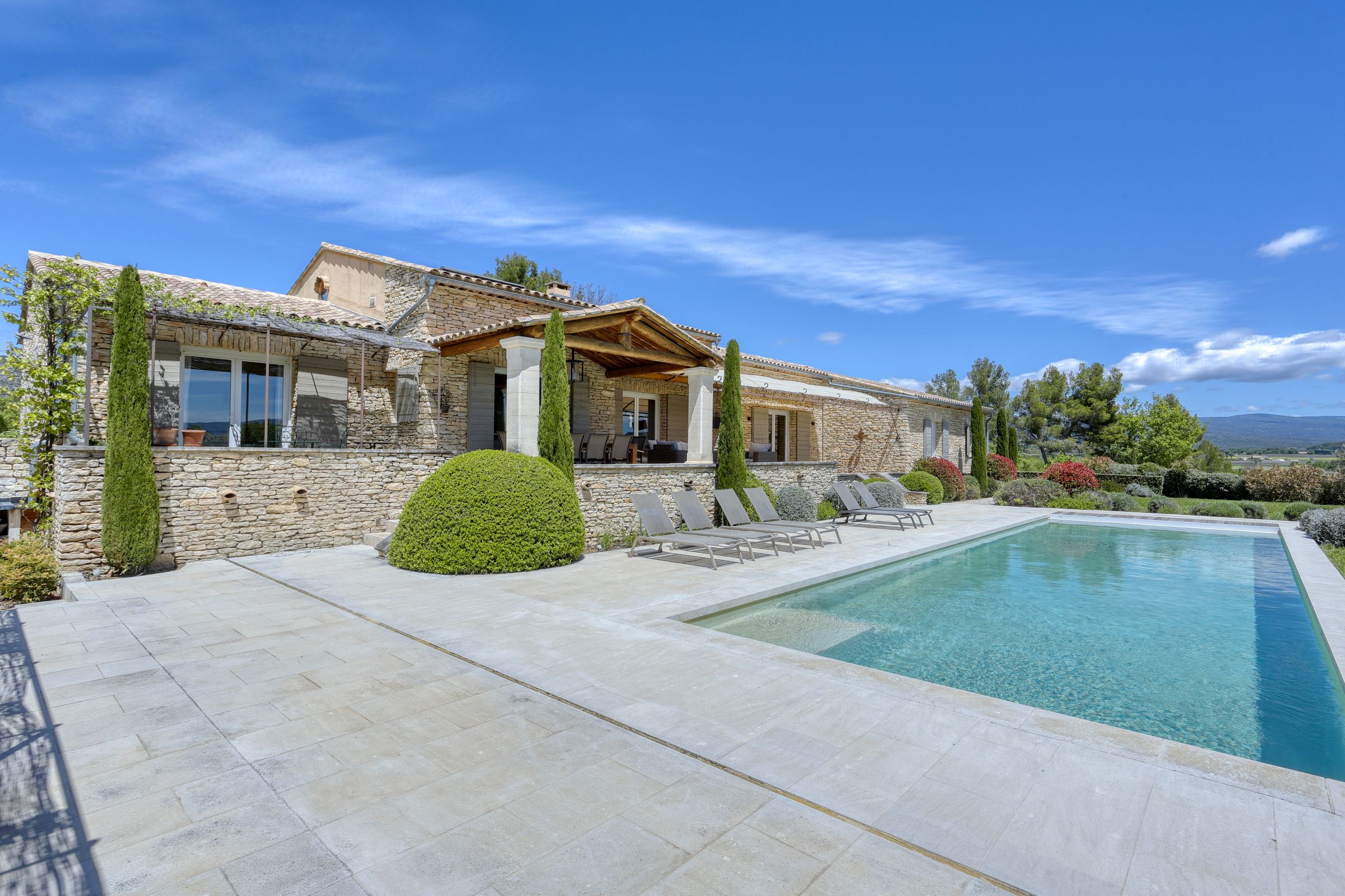 Tucked into the Provençal hills just a short drive from Roussillon and Gordes, this peaceful farmhouse is all about space, silence and sweeping views of Luberon. With multiple terraces for laid-back lunching, a large heated pool big enough for swimming lengths in, and uninterrupted countryside gardens, it’s perfect for slow days and a chance to unwind. With two separate living areas, this home is ideal for two families sharing or a chance for bigger groups to spread out. Interiors are relaxed and homely, while the thick stone walls and cooling floors will help to keep you cool and comfortable.