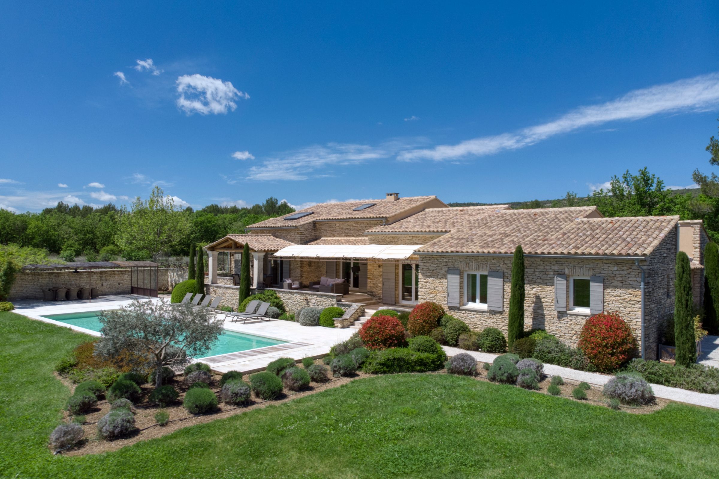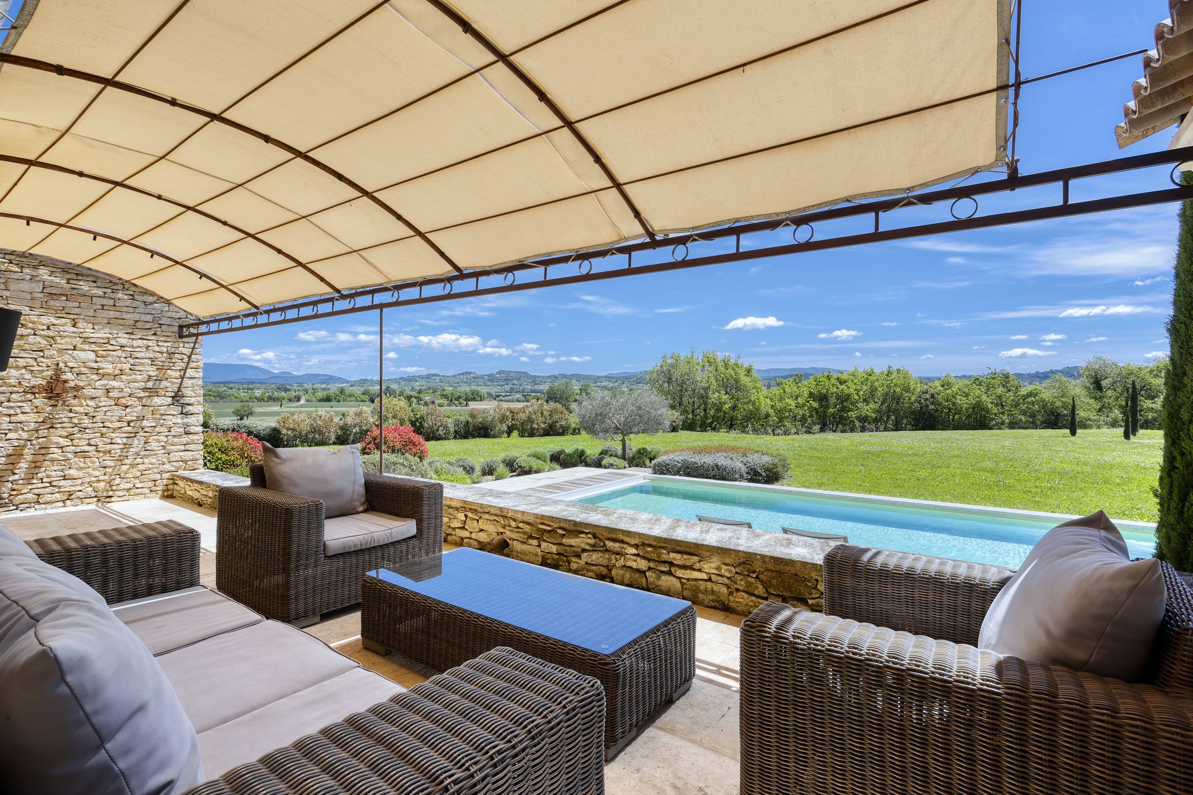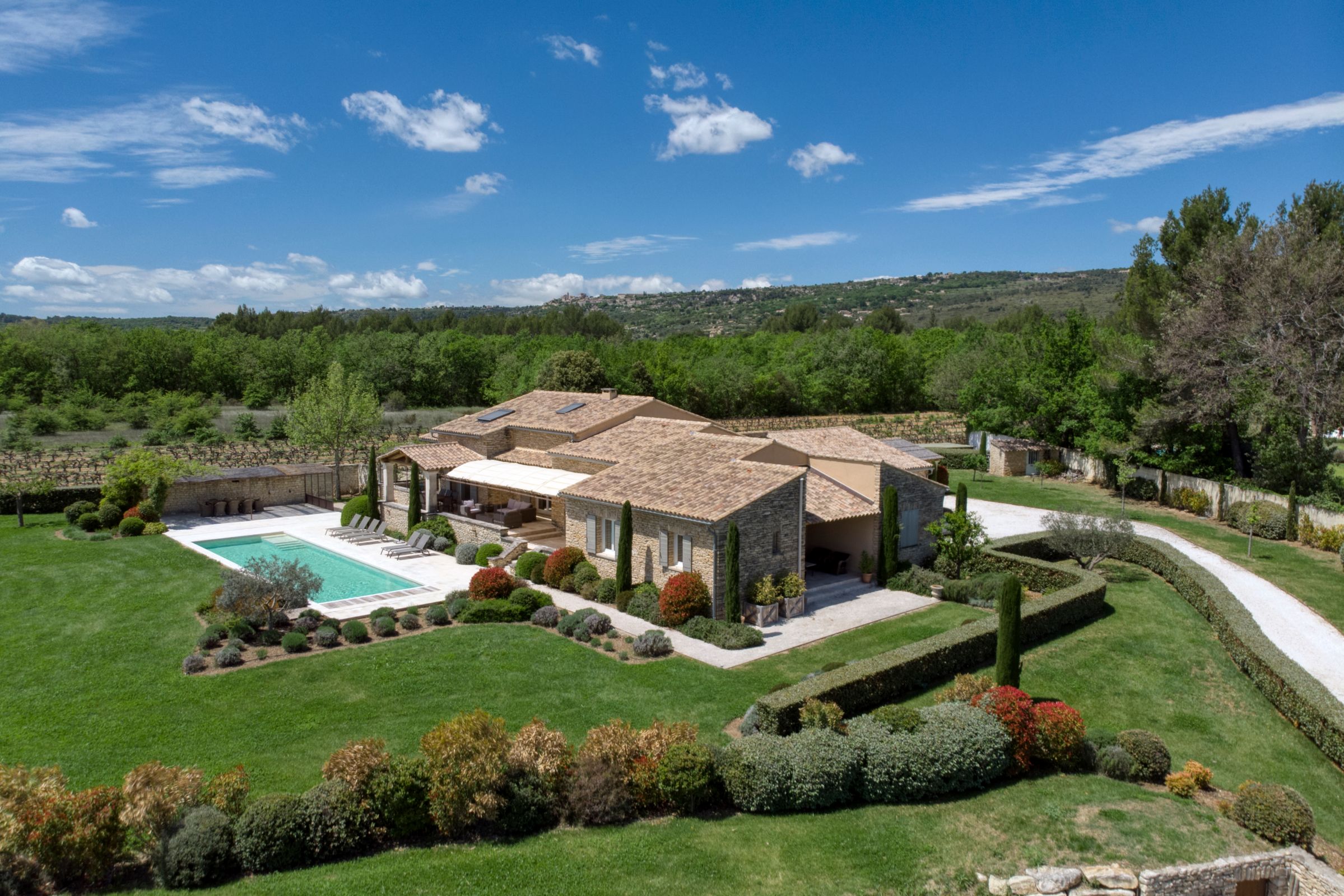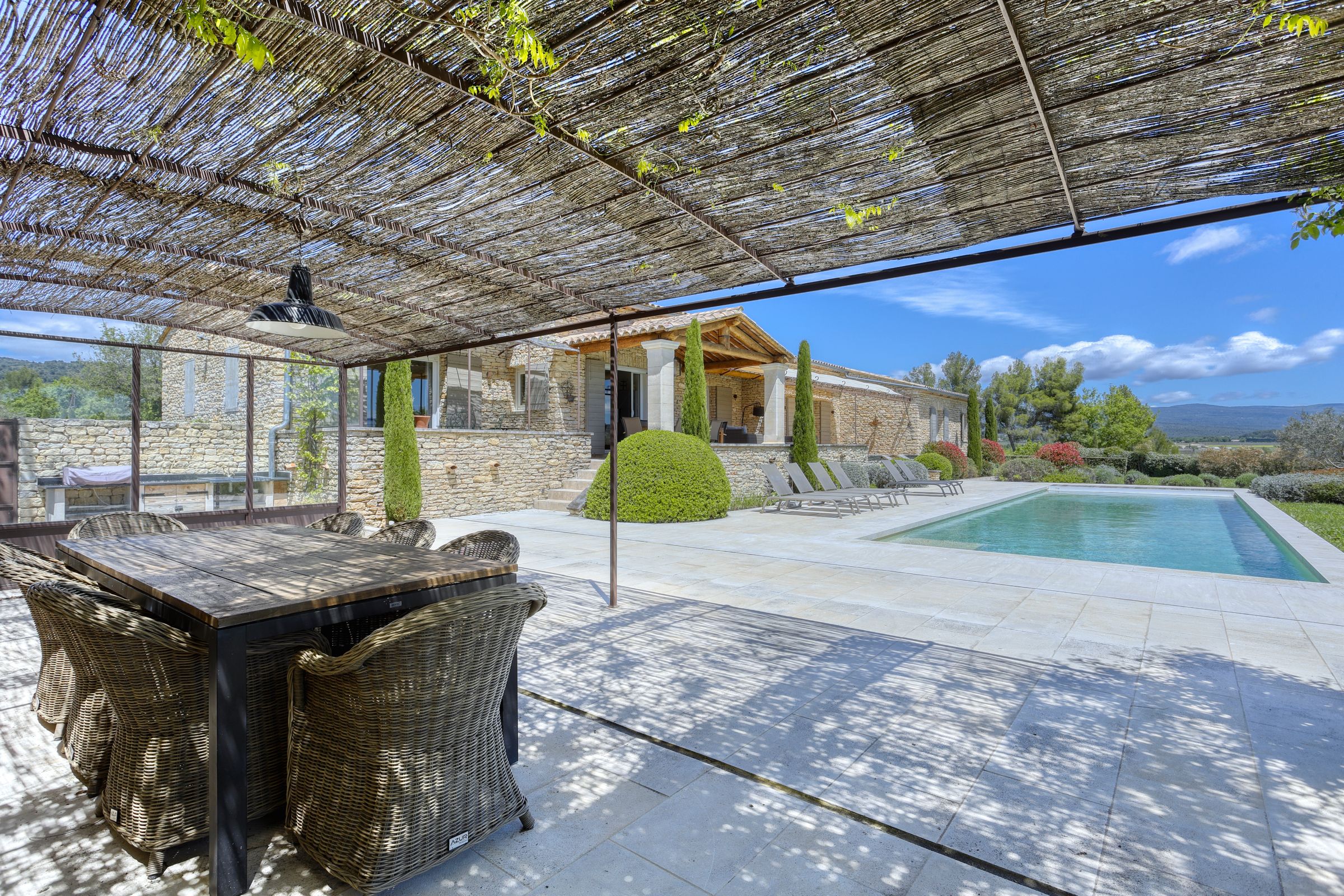 Tucked into the Provençal hills just a short drive from Roussillon and Gordes, this peaceful farmhouse is all about space, silence and sweeping views of Luberon. With multiple terraces for laid-back lunching, a large heated pool big enough for swimming lengths in, and uninterrupted countryside gardens, it’s perfect for slow days and a chance to unwind. With two separate living areas, this home is ideal for two families sharing or a chance for bigger groups to spread out. Interiors are relaxed and homely, while the thick stone walls and cooling floors will help to keep you cool and comfortable.