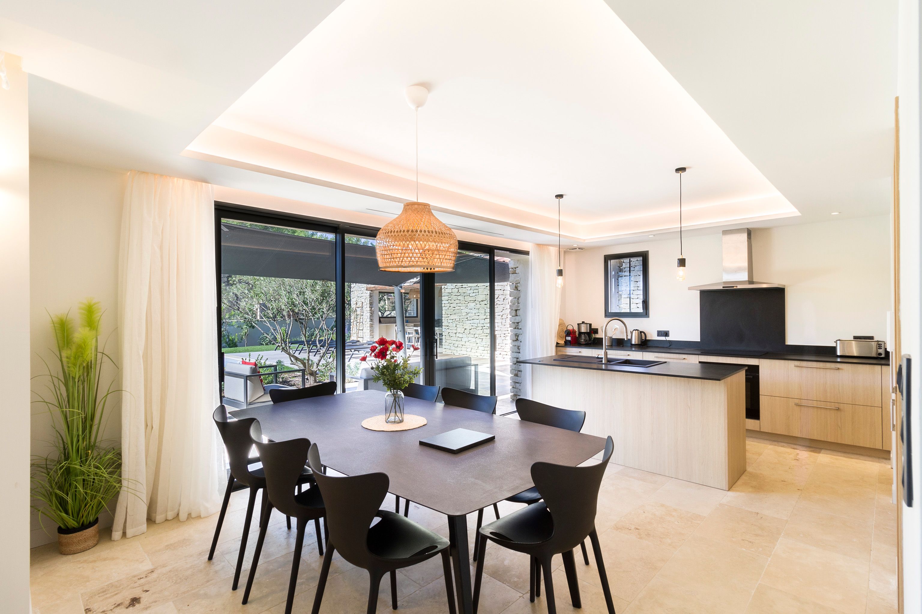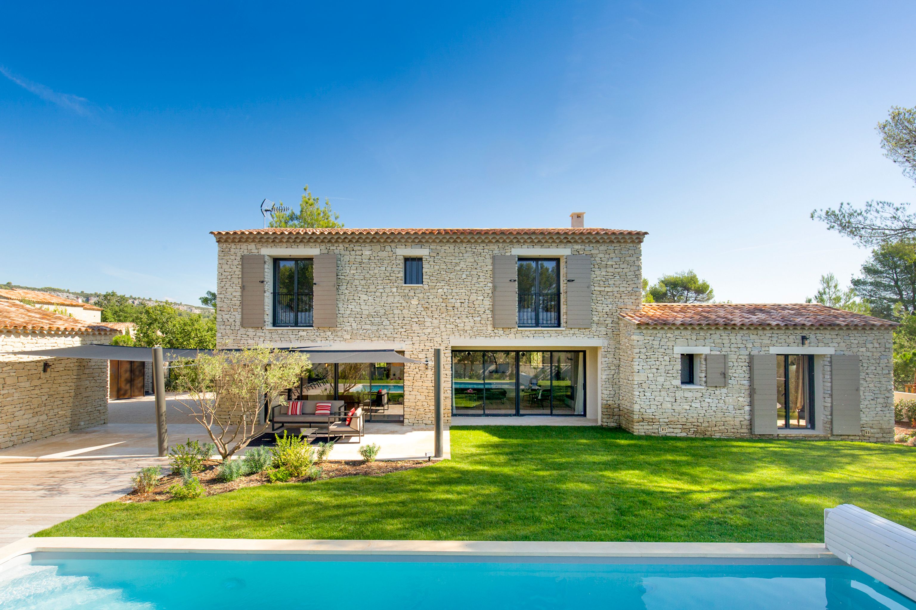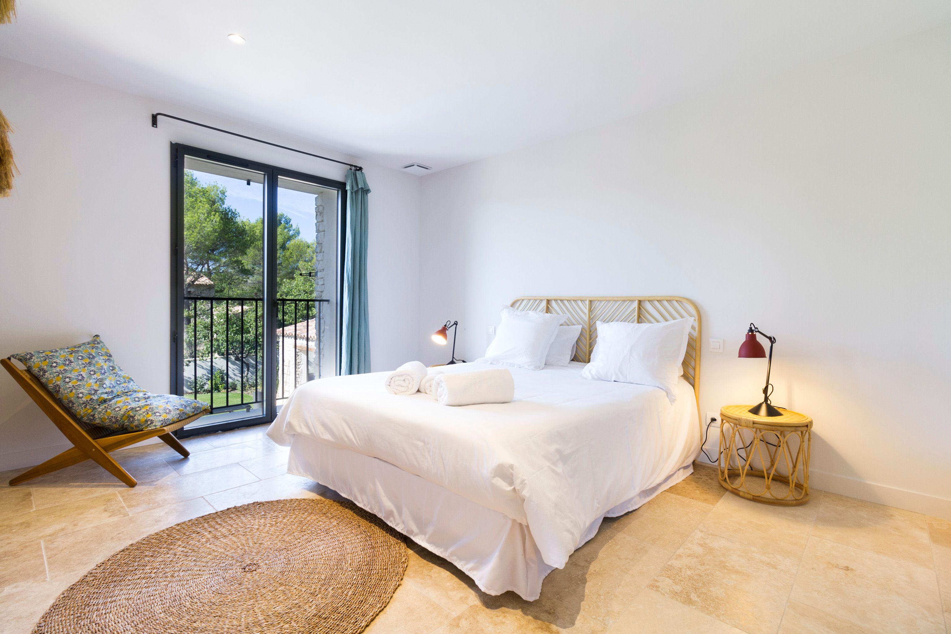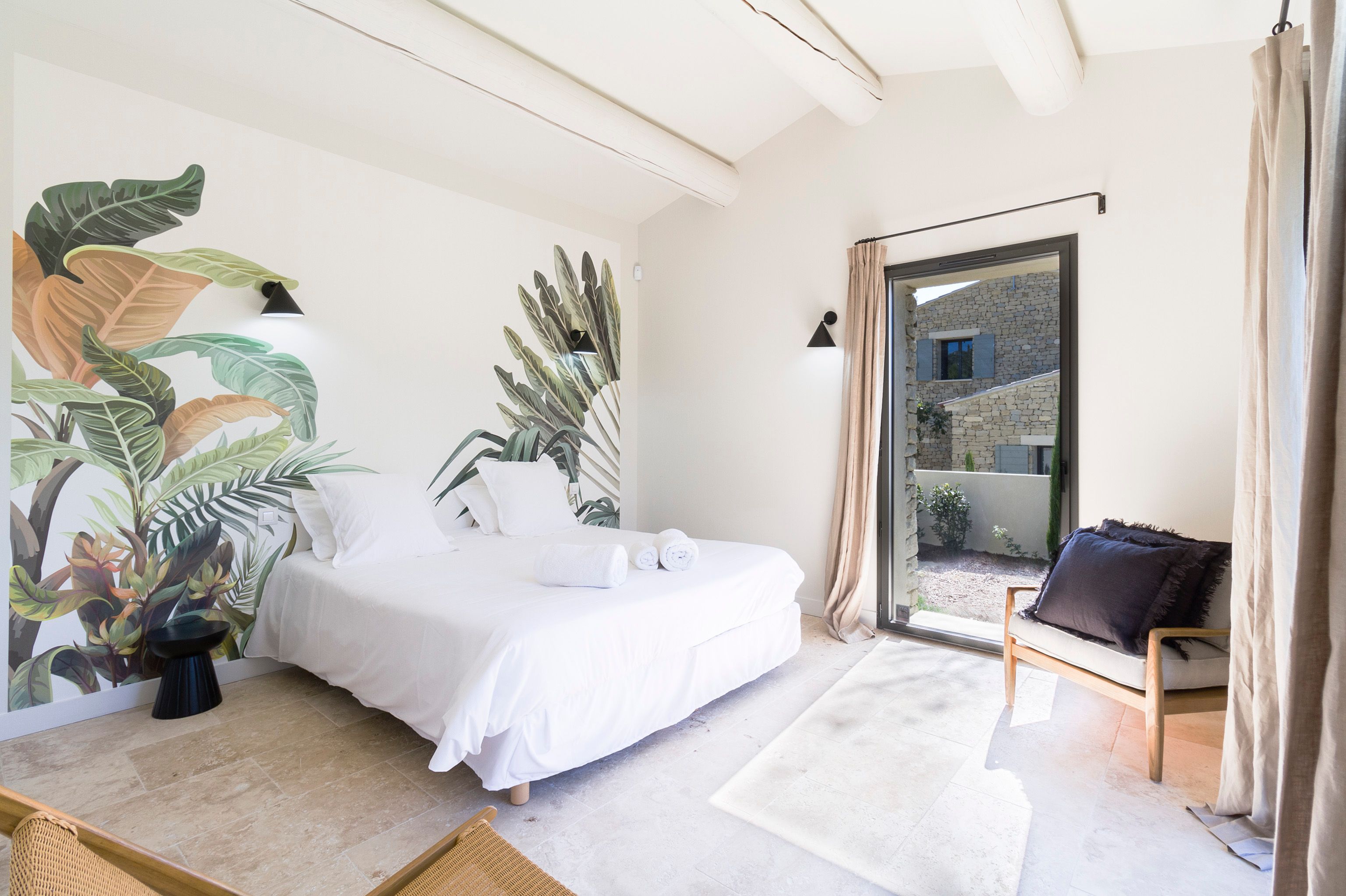 Stone-built and practically glowing in the southern France sunshine, this home is ideal for cyclists and hikers. It’s a fifteen-minute ride to the medieval village of Gordes and for a real challenge, you can head on to the slopes of Mount Ventoux. Hikers can hit the trails of Les Gorges de Véroncle, a short walk away. The walled garden is home to a summer kitchen for lazy lunches outside and the swimming pool awaits after a day’s exertion. Sleek and monochrome, the open living area and kitchen belies the traditional exterior. The ground-floor bedroom opens up to the poolside terrace and both upstairs rooms have sweeping countryside views.