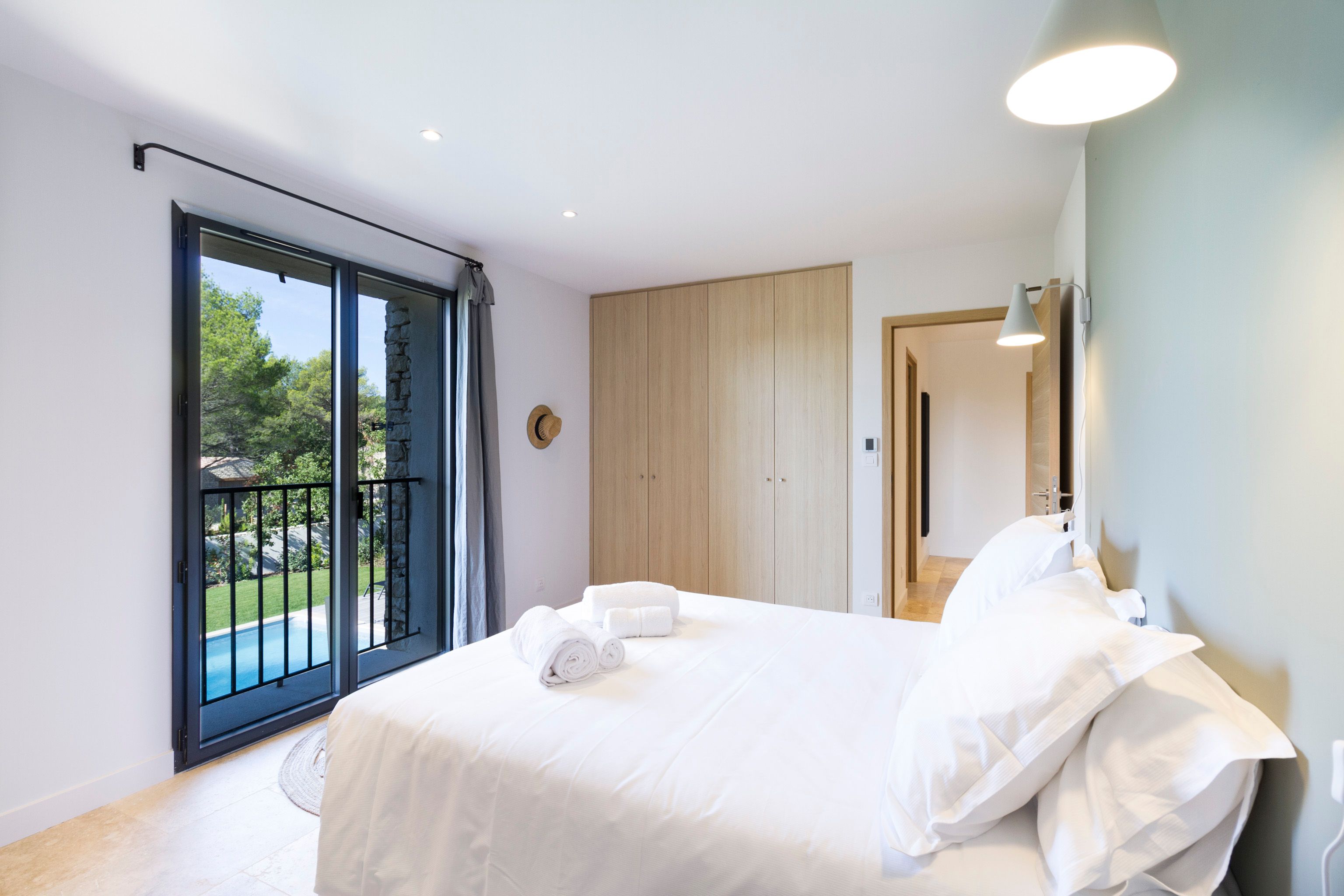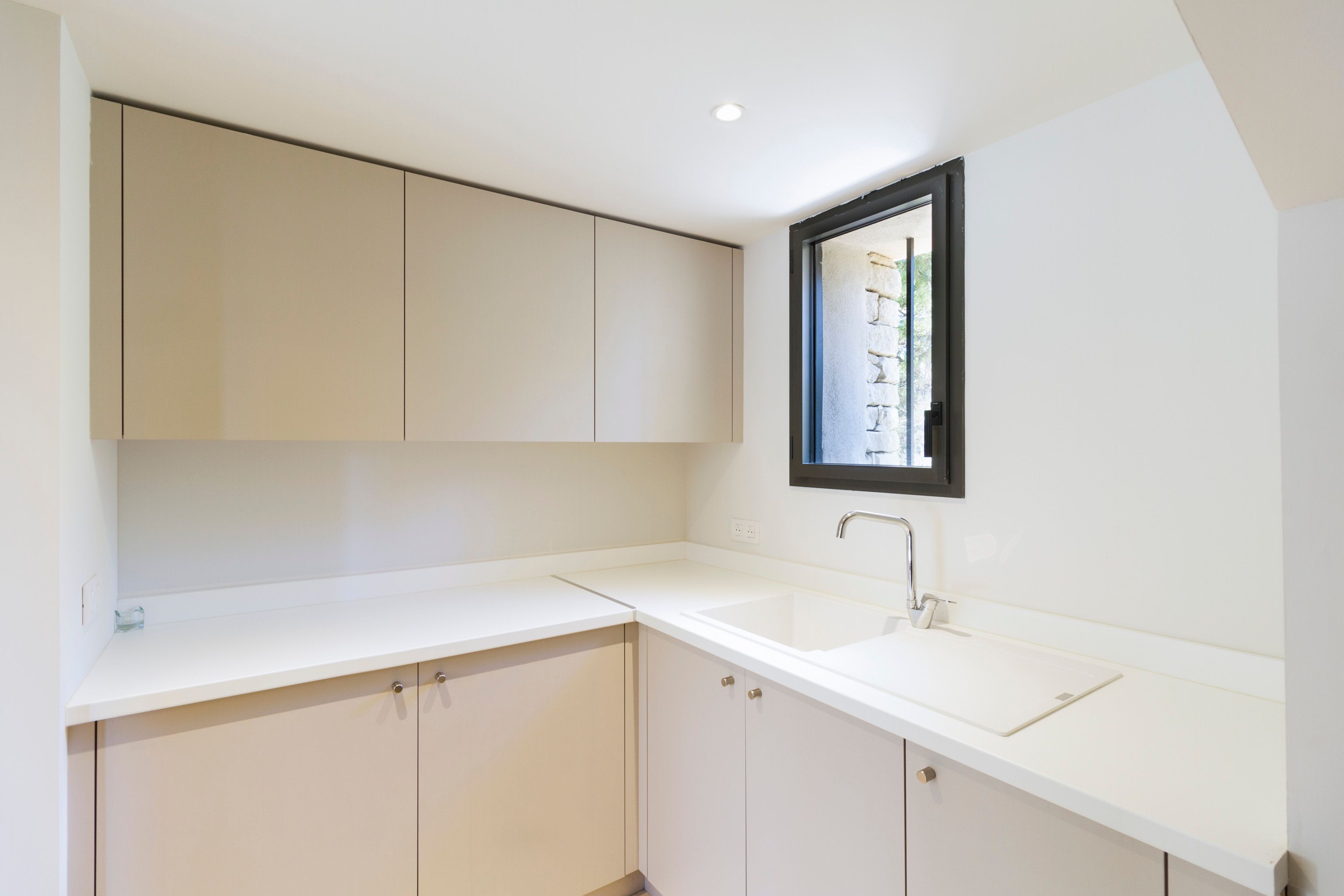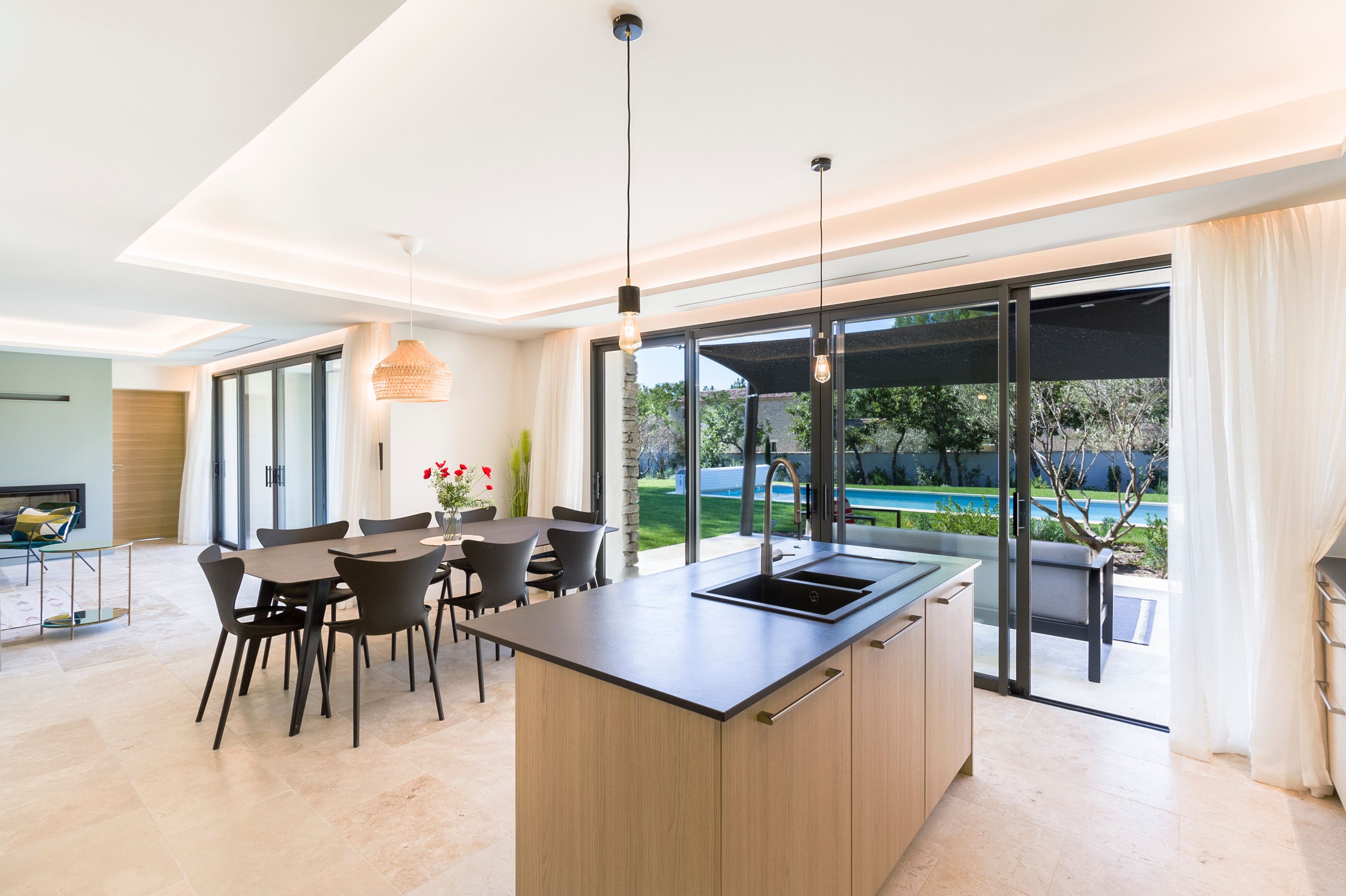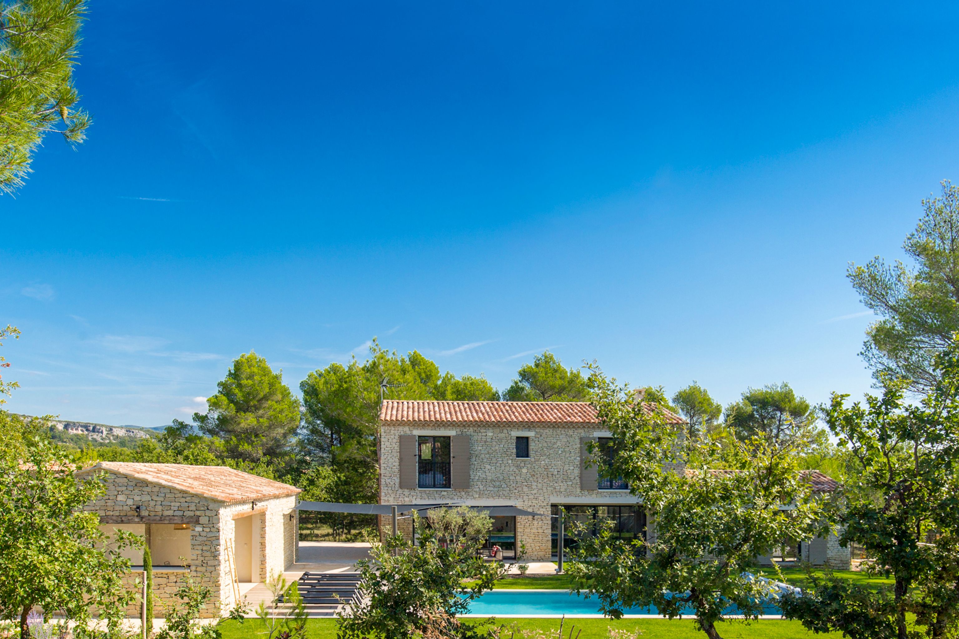 Stone-built and practically glowing in the southern France sunshine, this home is ideal for cyclists and hikers. It’s a fifteen-minute ride to the medieval village of Gordes and for a real challenge, you can head on to the slopes of Mount Ventoux. Hikers can hit the trails of Les Gorges de Véroncle, a short walk away. The walled garden is home to a summer kitchen for lazy lunches outside and the swimming pool awaits after a day’s exertion. Sleek and monochrome, the open living area and kitchen belies the traditional exterior. The ground-floor bedroom opens up to the poolside terrace and both upstairs rooms have sweeping countryside views.