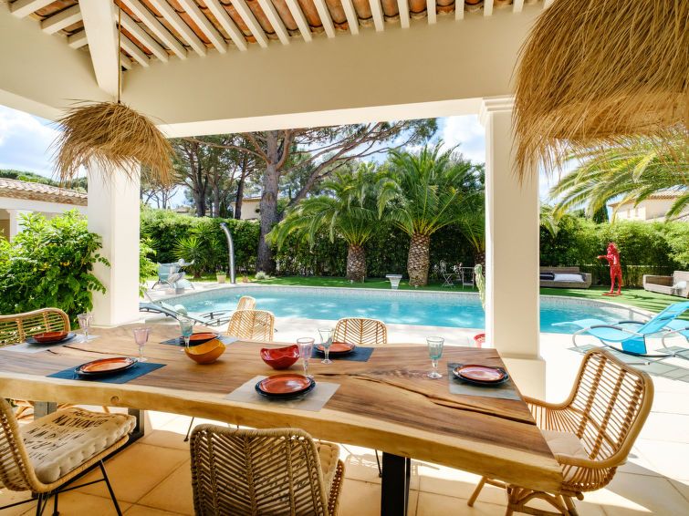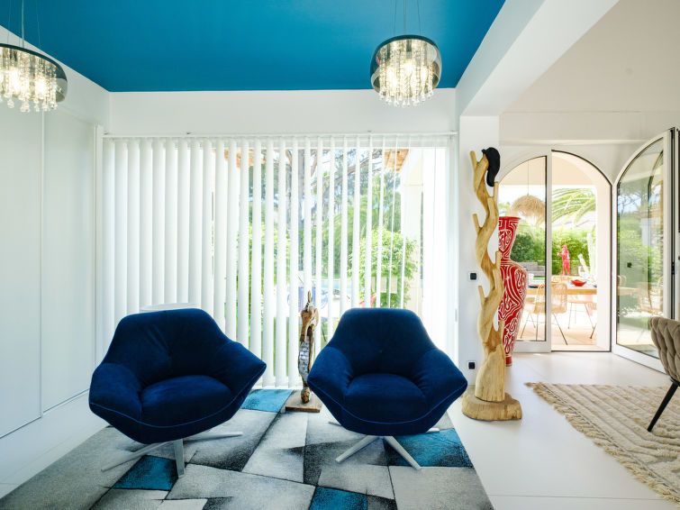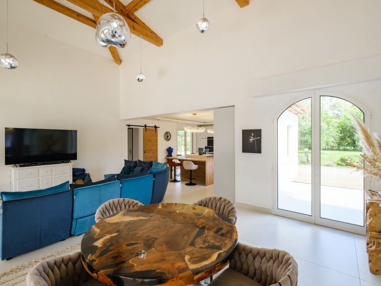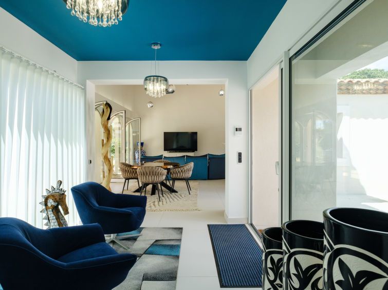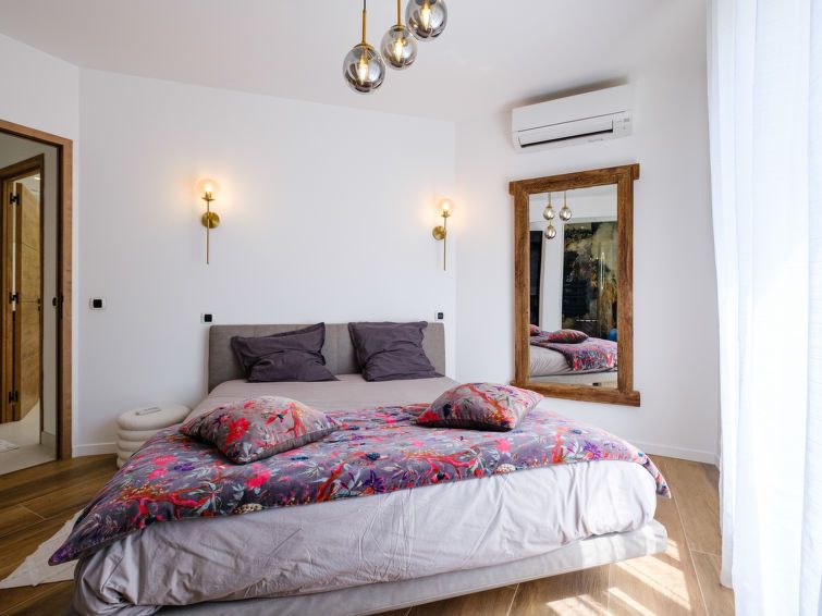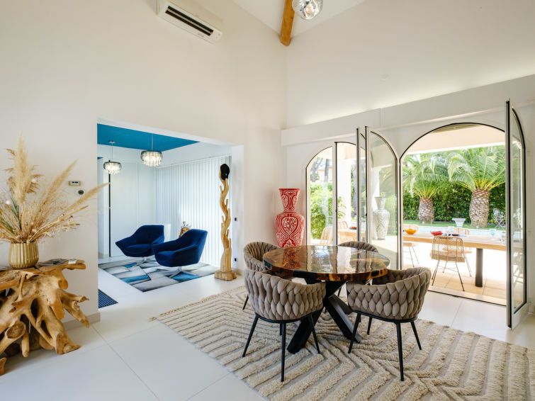 5-room villa 220 m2. Fully renovated in 2025, luxurious furnishings: large living/dining room with TV (flat screen). Exit to the terrace. 1 room with 1 french bed (180 cm, length 200 cm), shower/WC, double hand-basin and TV. 1 room with 1 french bed (140 cm, length 200 cm), shower/WC and double hand-basin.