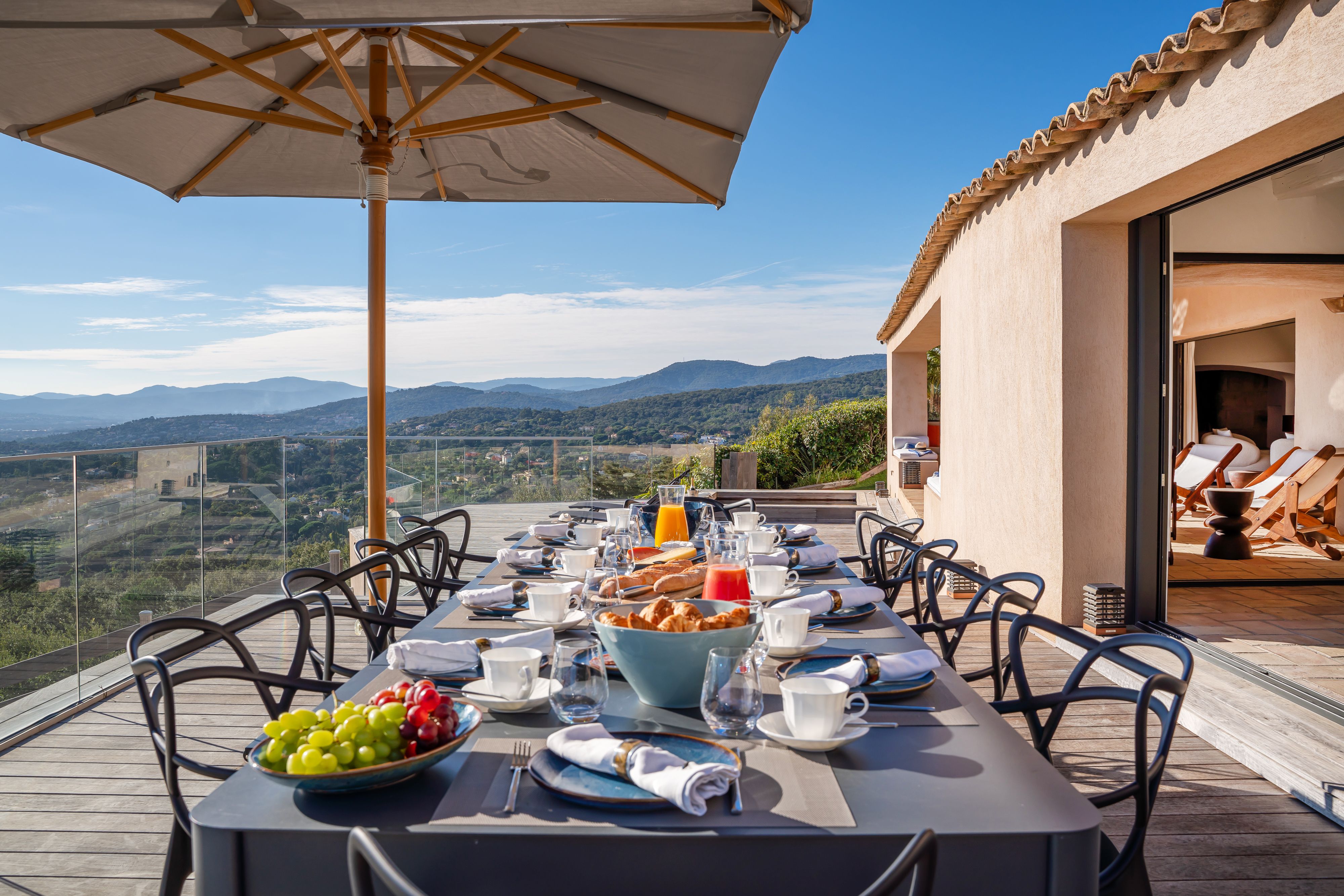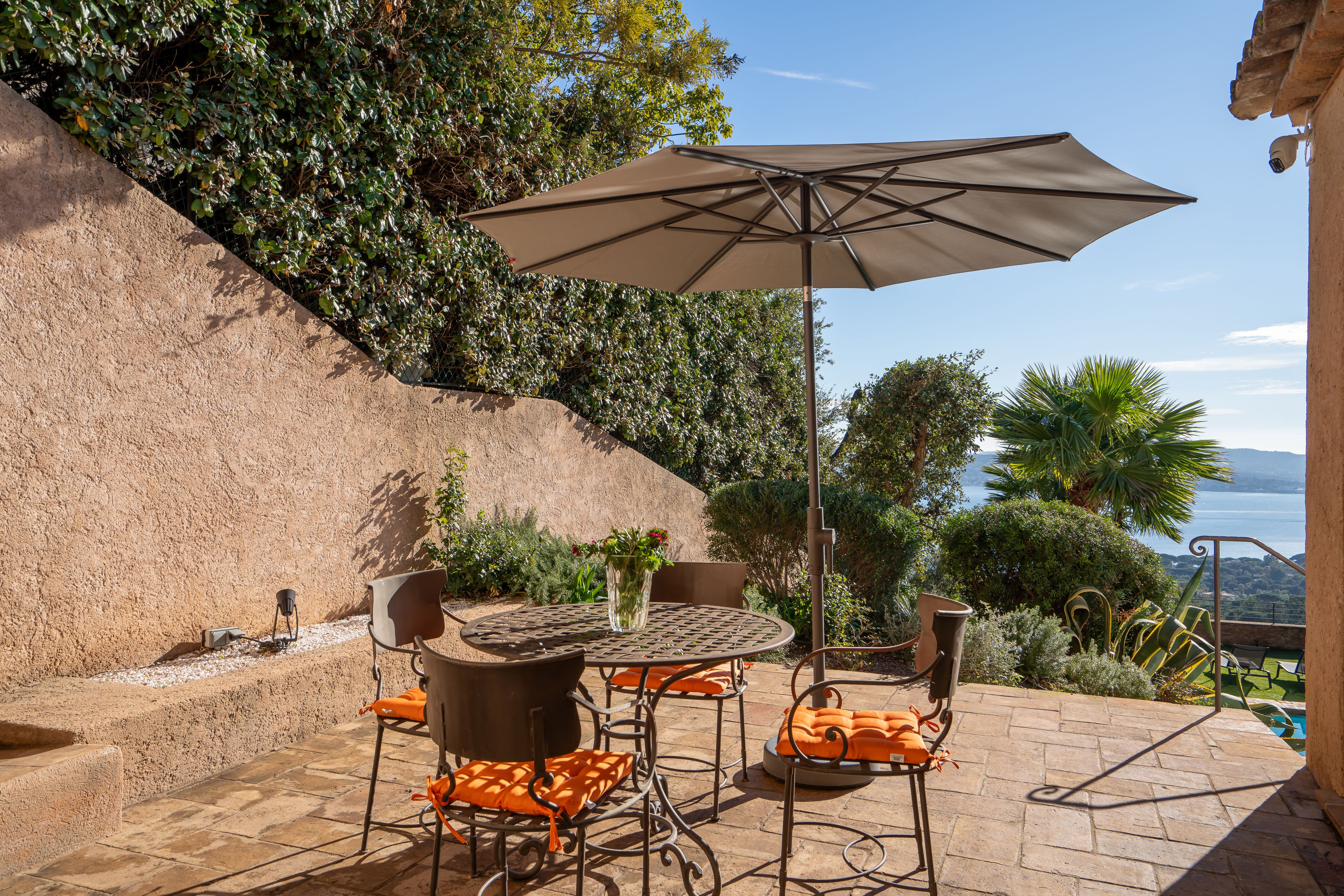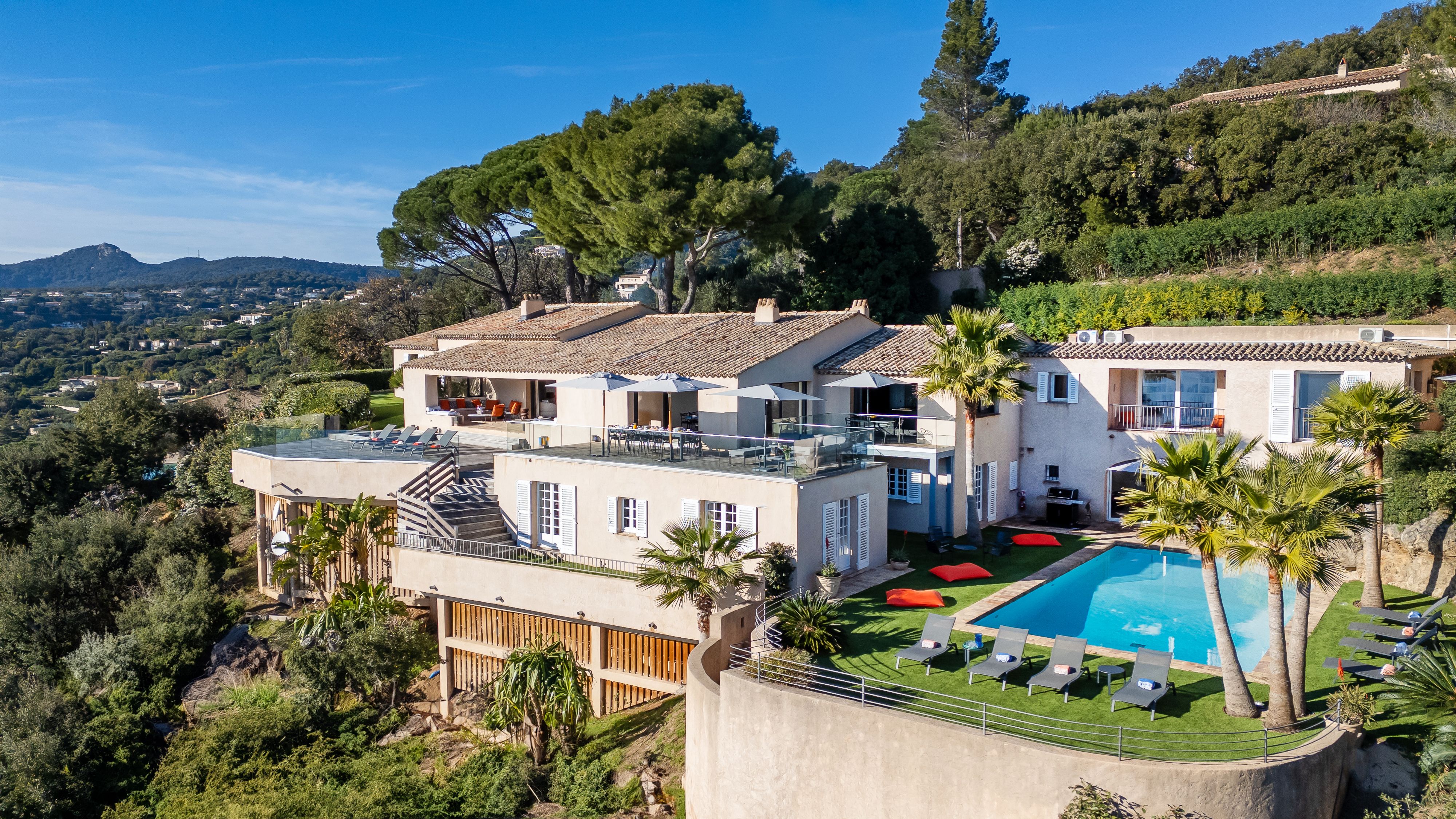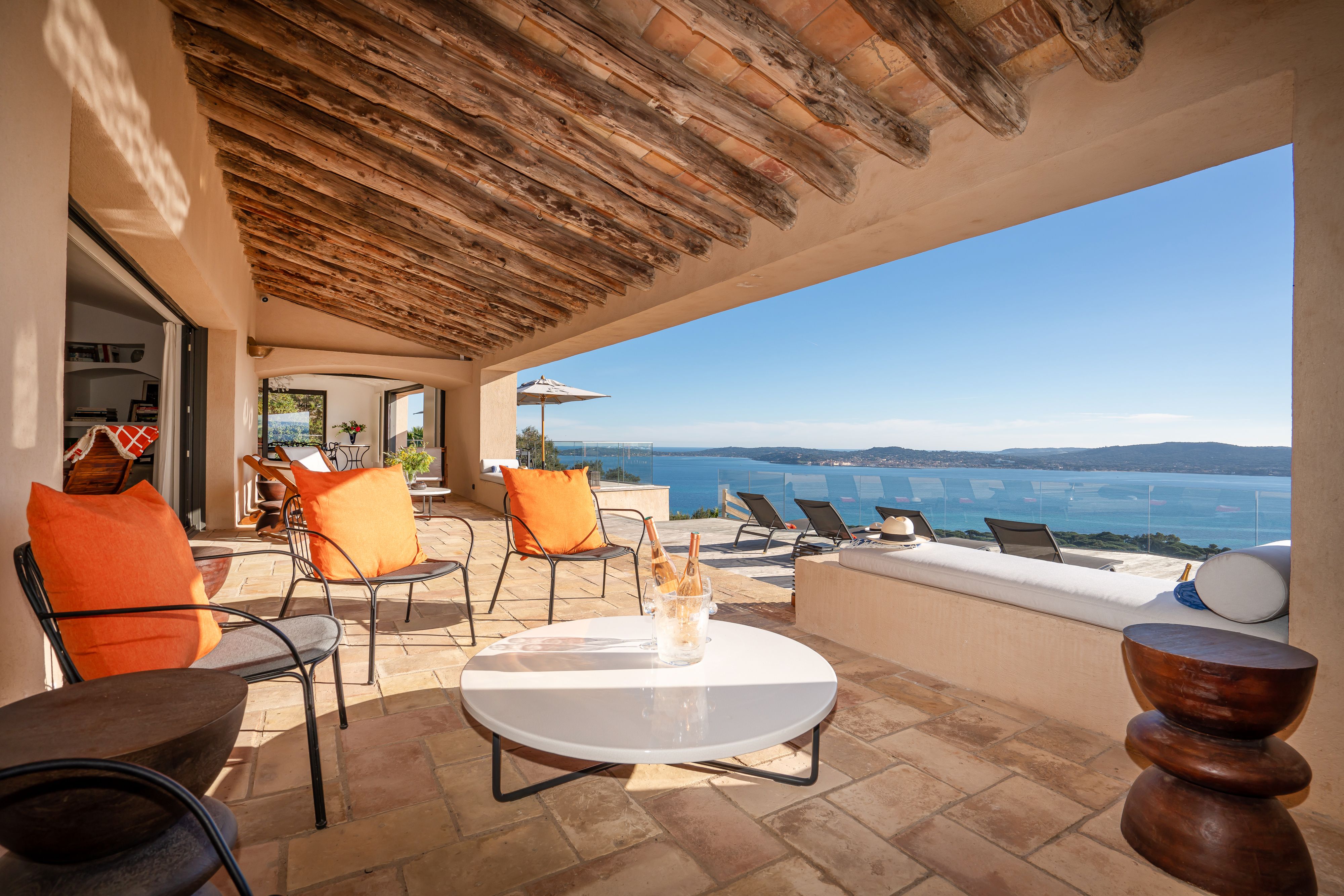 Overlooking the shimmering Gulf of Saint-Tropez, this hillside villa feels worlds away from the bustle below. It’s a Provençal retreat through and through – sunlight bouncing off colourful tiles, the scent of lavender drifting through open doors, and views that go on forever. Spend your days moving between the terrace, the hot tub, and the pool, or challenge friends to a round of boules before dinner. When the evening calls for adventure, your private boat can ferry you across the bay for dinner in Saint-Tropez – or a personal chef can conjure up a feast beneath the stars.