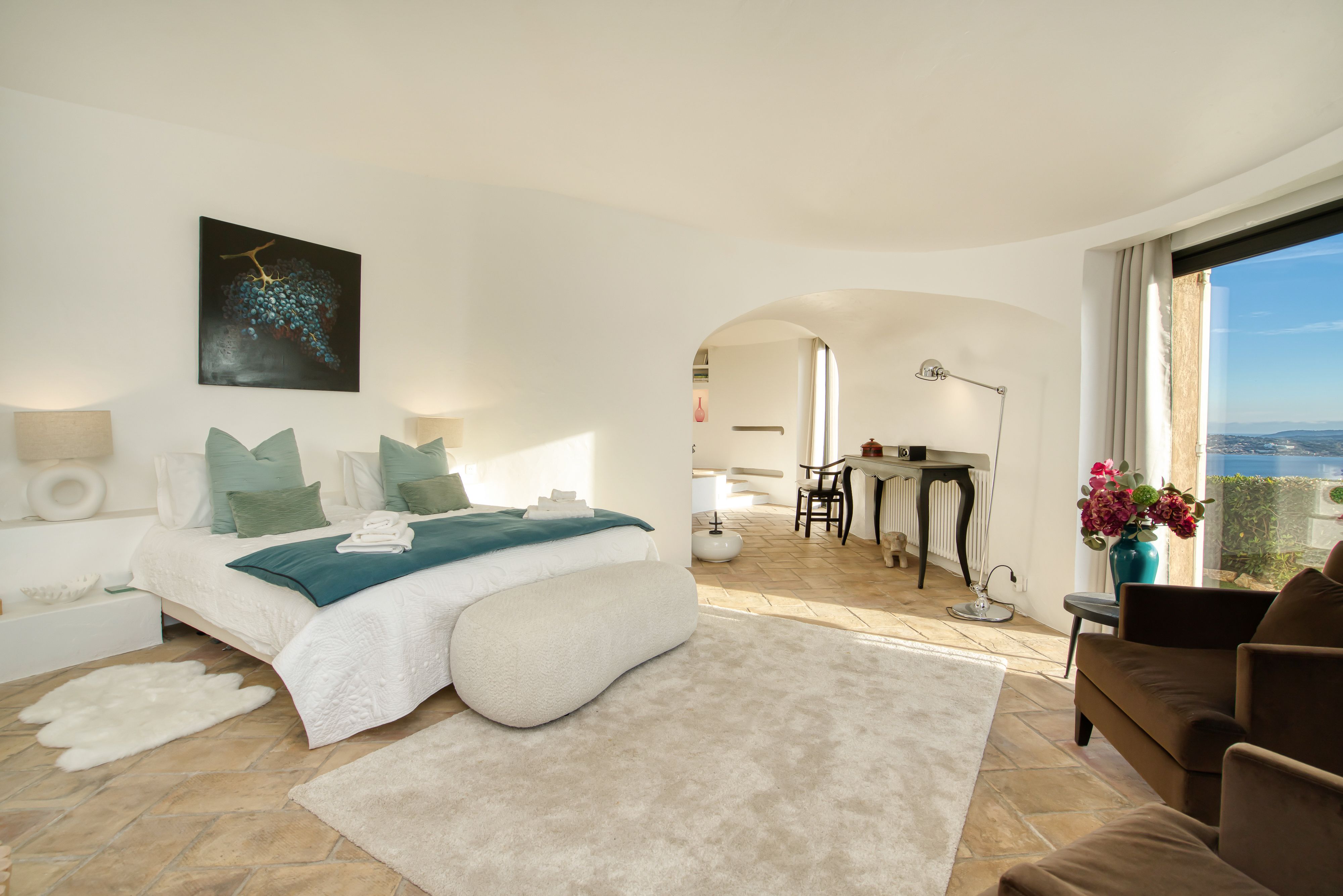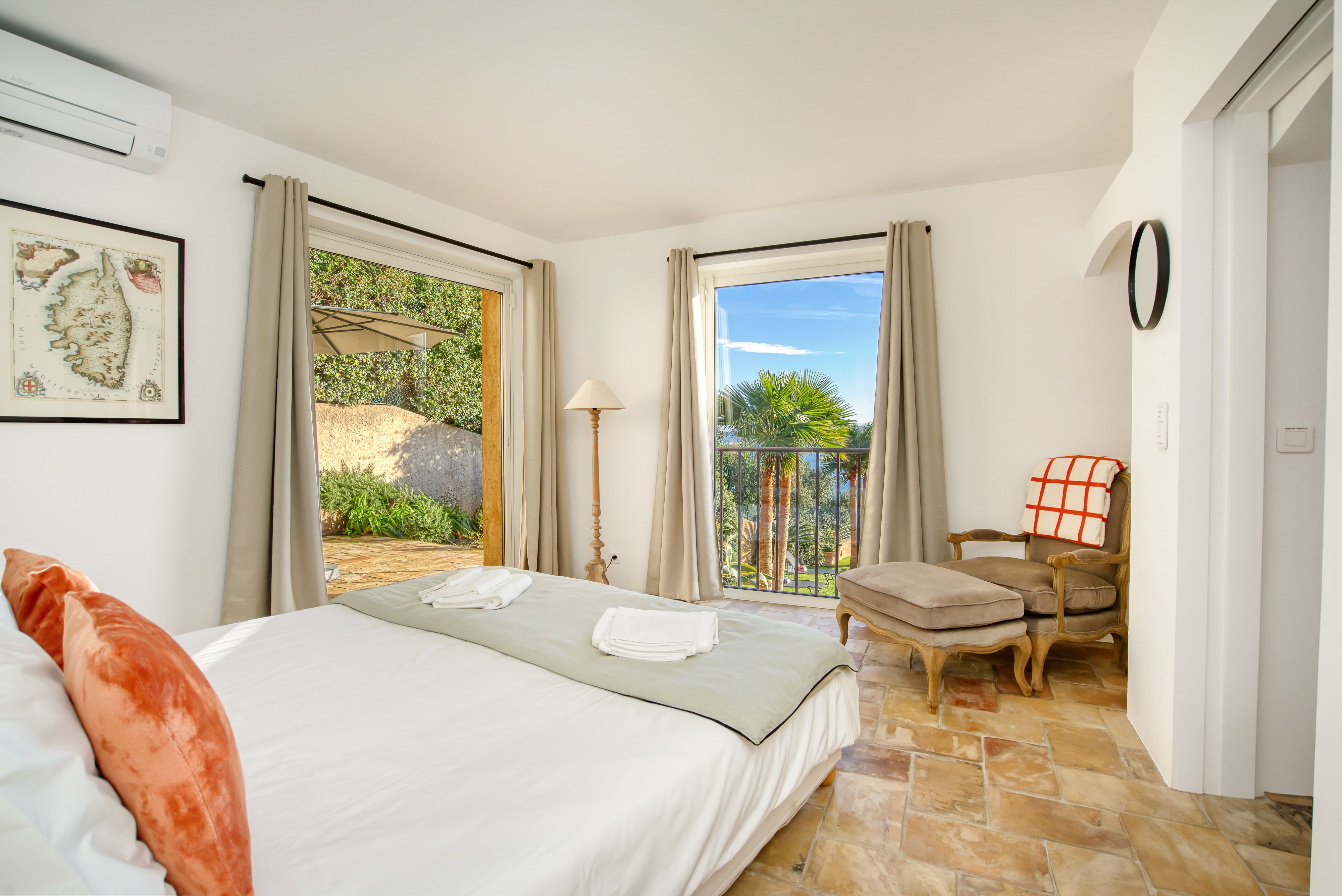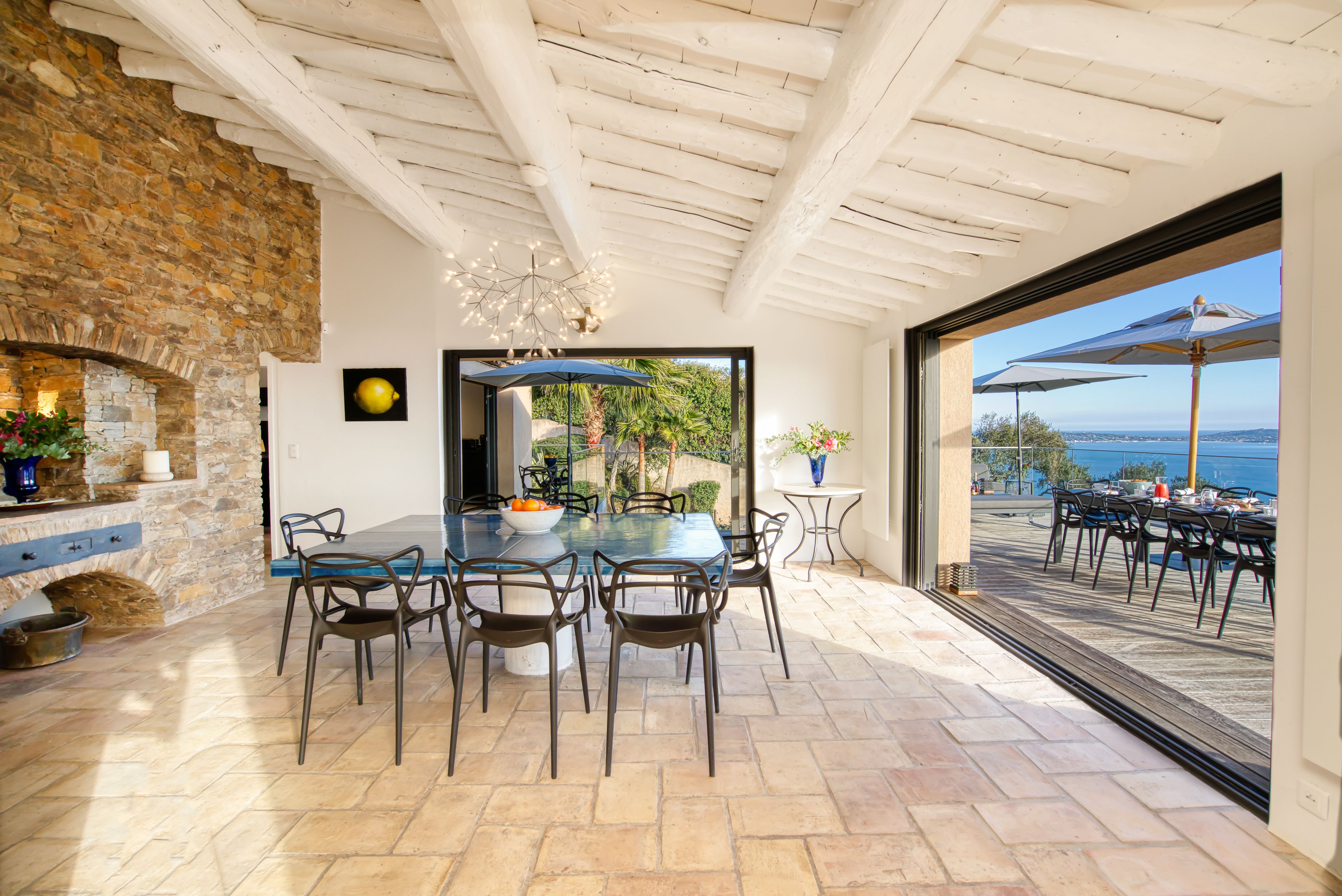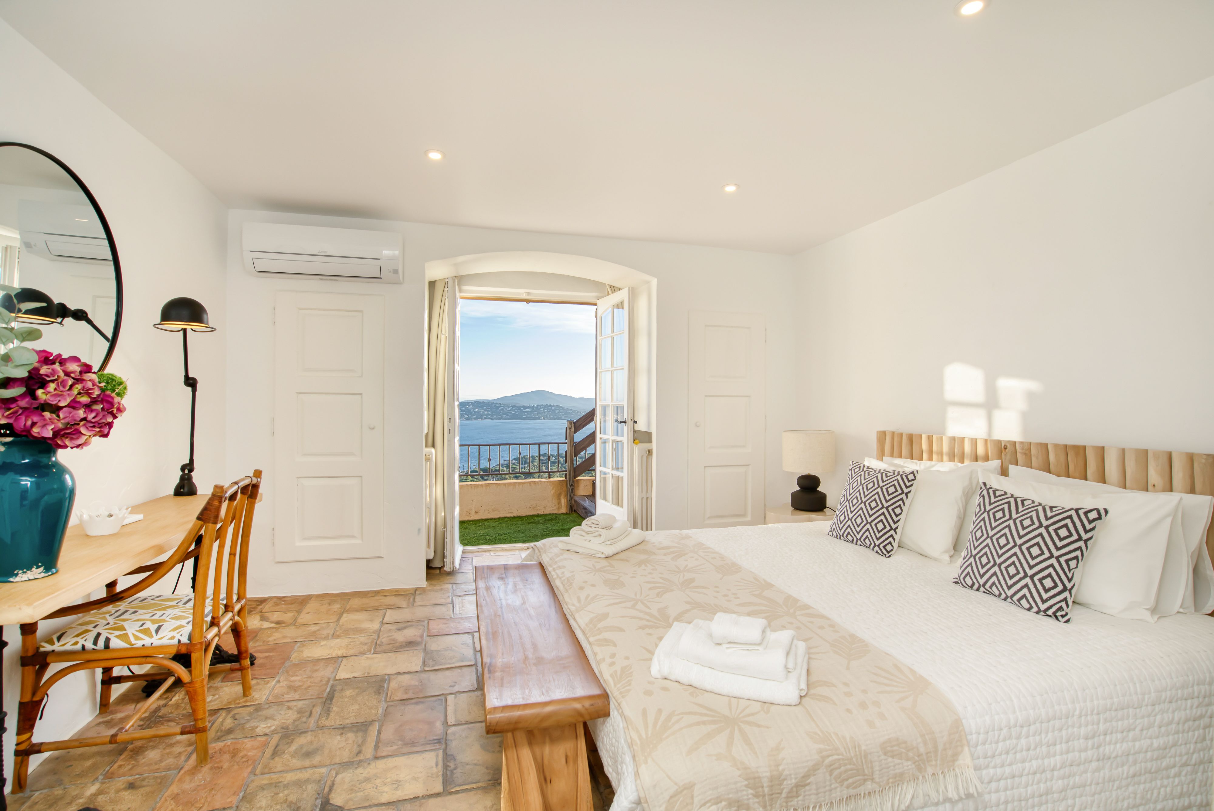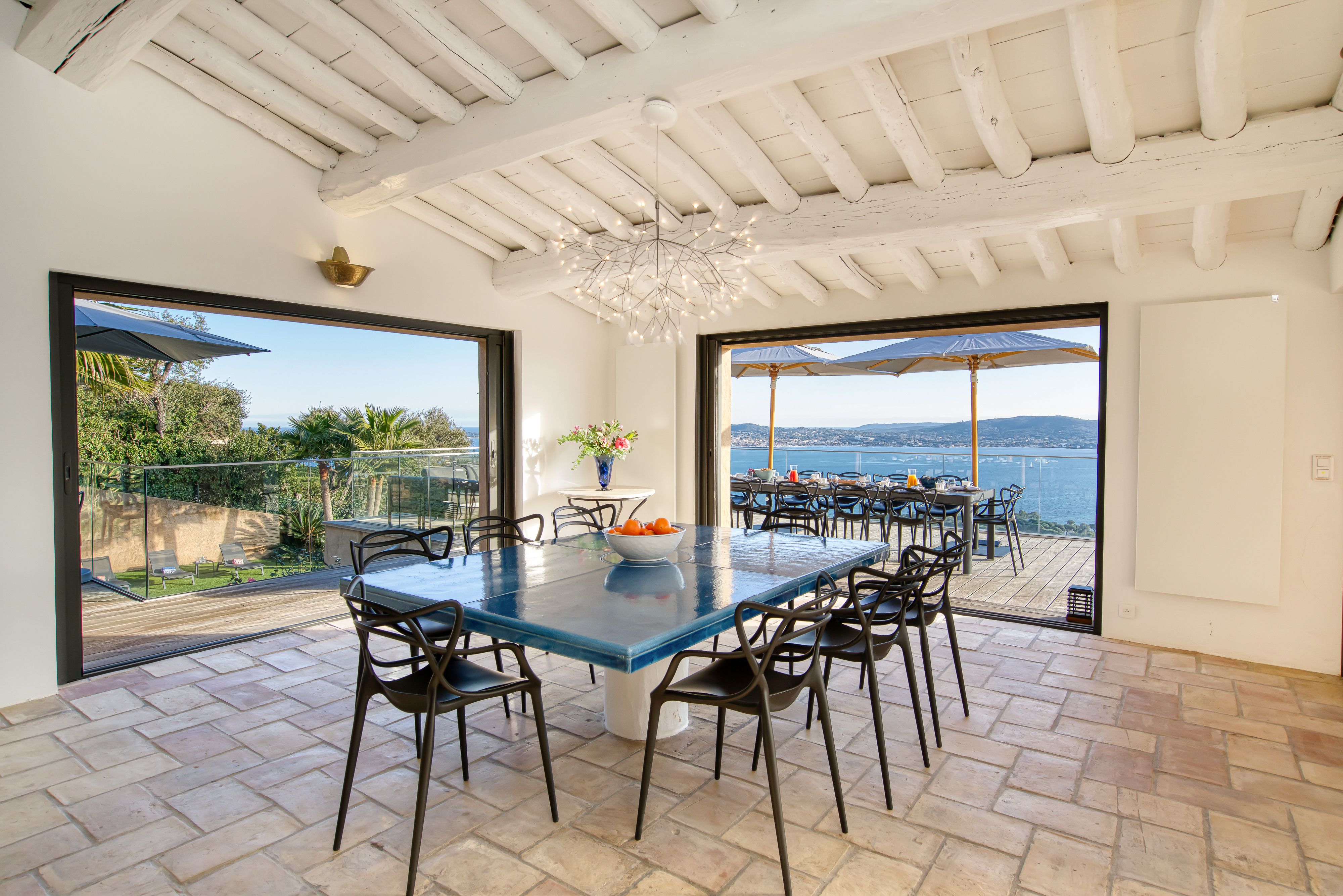 Overlooking the shimmering Gulf of Saint-Tropez, this hillside villa feels worlds away from the bustle below. It’s a Provençal retreat through and through – sunlight bouncing off colourful tiles, the scent of lavender drifting through open doors, and views that go on forever. Spend your days moving between the terrace, the hot tub, and the pool, or challenge friends to a round of boules before dinner. When the evening calls for adventure, your private boat can ferry you across the bay for dinner in Saint-Tropez – or a personal chef can conjure up a feast beneath the stars.