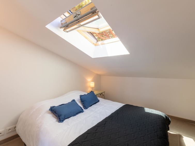 5-room villa 100 m2 on 2 levels. Bright, comfortable and beautiful furnishings: living/dining room with open-hearth fireplace (only for decoration), dining table and TV (flat screen). Exit to the garden, to the terrace. 1 room with 1 french bed (140 cm, length 190 cm). Kitchen (oven, dishwasher, 4 ceramic glass hob hotplates, toaster, kettle, microwave, freezer, electric coffee machine).