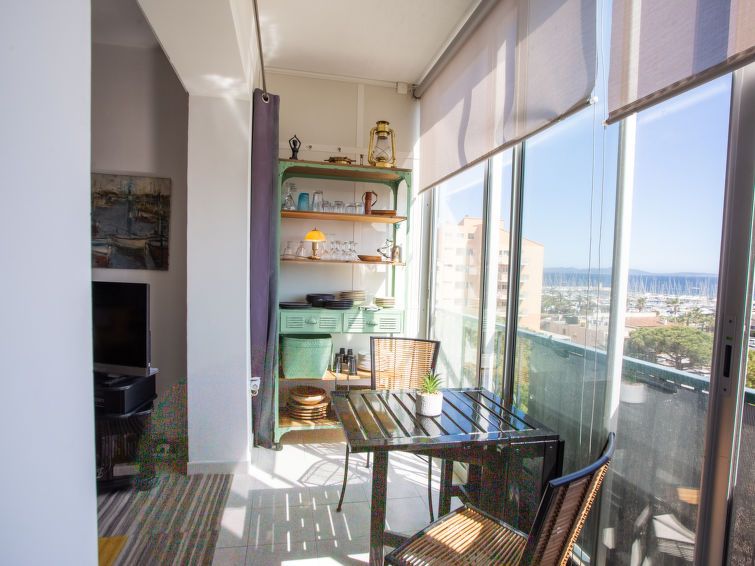 "Le Clinfoc", 2-room apartment 48 m2 on 5th floor. Living/dining room with 1 double sofabed (140 cm, length 190 cm), TV (flat screen), DVD. Exit to the loggia. 1 room with 1 french bed (160 cm, length 190 cm). Kitchen (dishwasher, 4 ceramic glass hob hotplates, toaster, kettle, microwave, freezer, electric coffee machine).