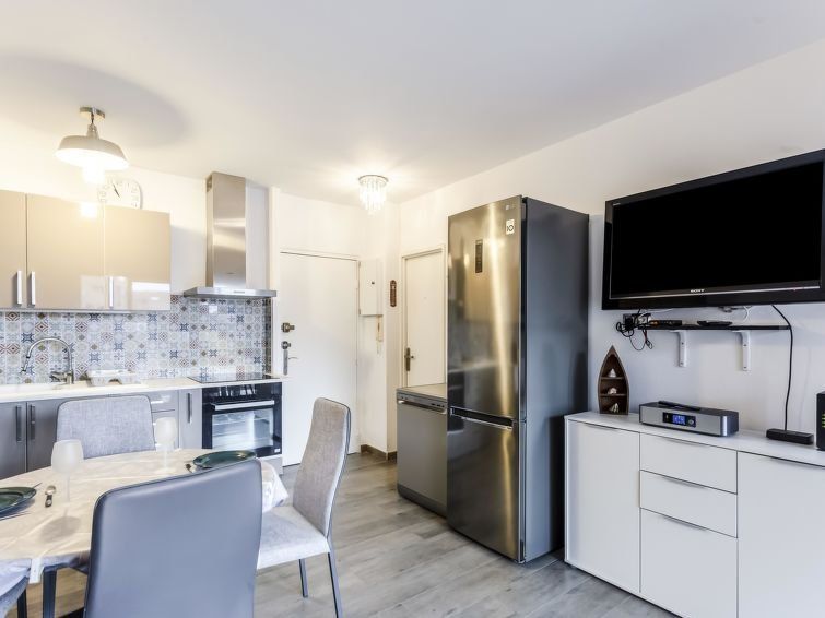 2-room apartment 33 m2 on 2nd floor. Comfortable and beautiful furnishings: living/dining room with 1 sofabed (140 cm, length 190 cm), TV (flat screen). Exit to the terrace. 1 room with 1 french bed (160 cm, length 200 cm), air conditioning. Exit to the terrace. Open kitchen (oven, dishwasher, 4 ceramic glass hob hotplates, toaster, kettle, microwave, freezer, electric coffee machine).