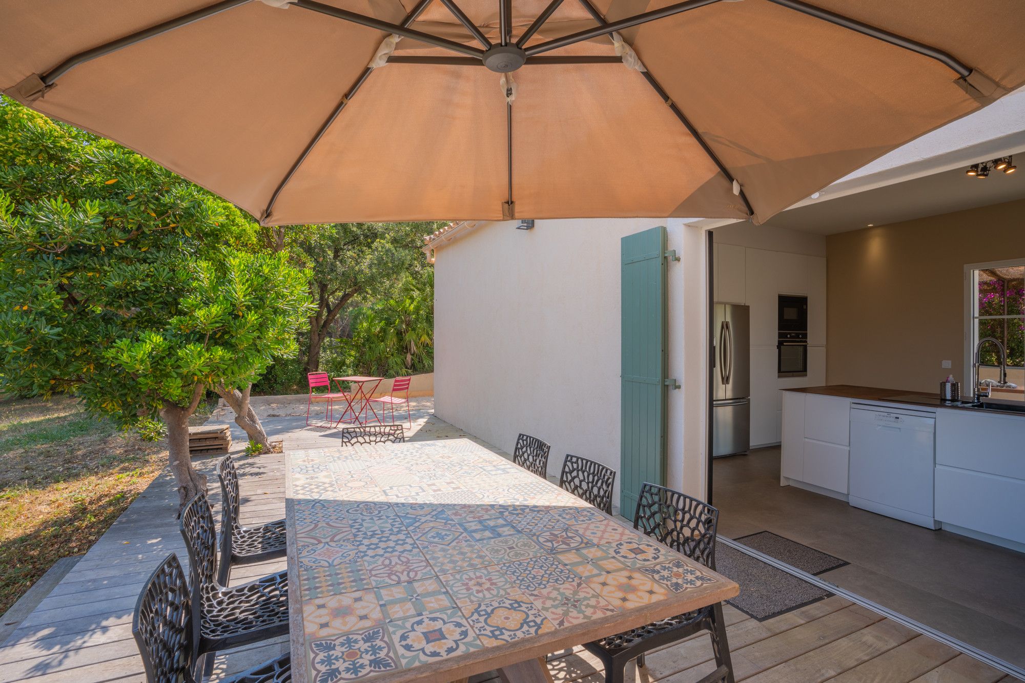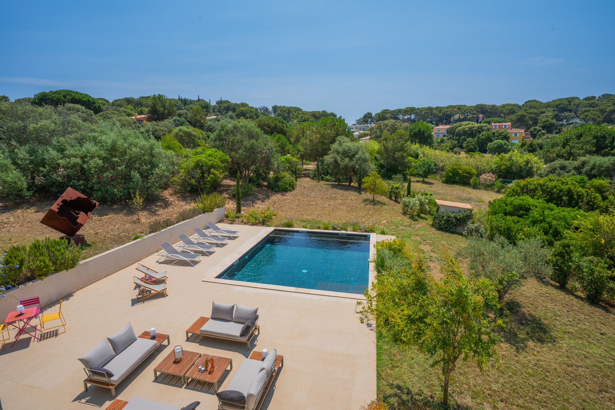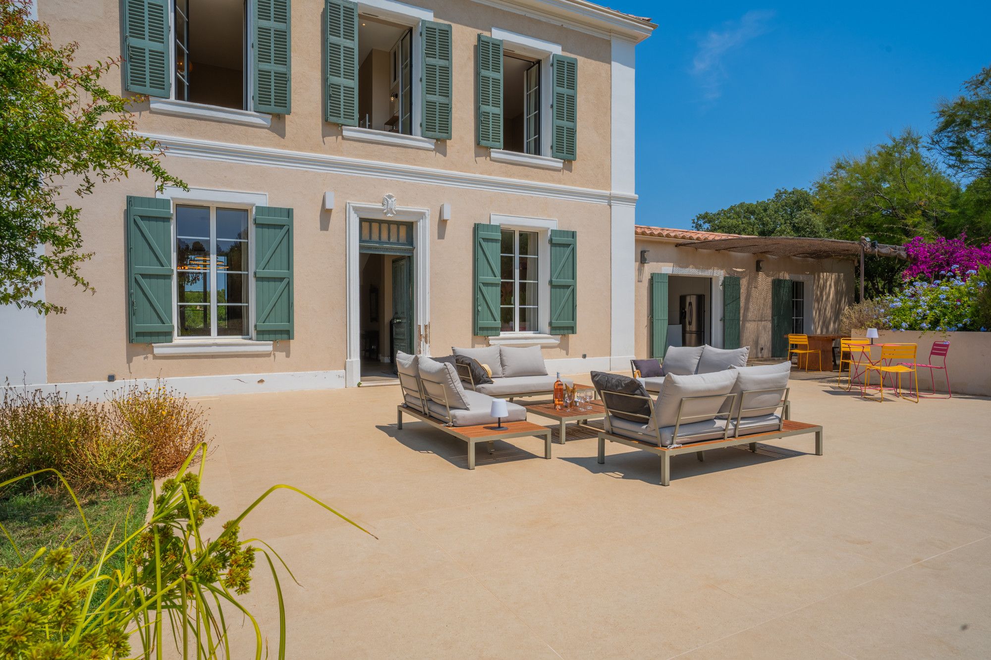 This classic French Riviera home is the perfect spot for a family or group exploring the Giens Peninsula. With large living spaces and several outdoor seating areas, relaxing and dining together will be the theme of your stay, and the private pool surrounded by trees and gardens is a great setting for relaxing. Exploring the peninsula from here is easy – there are authentic restaurants and bars within walking distance, and the rest of the region's beaches and coves are just a short drive away.