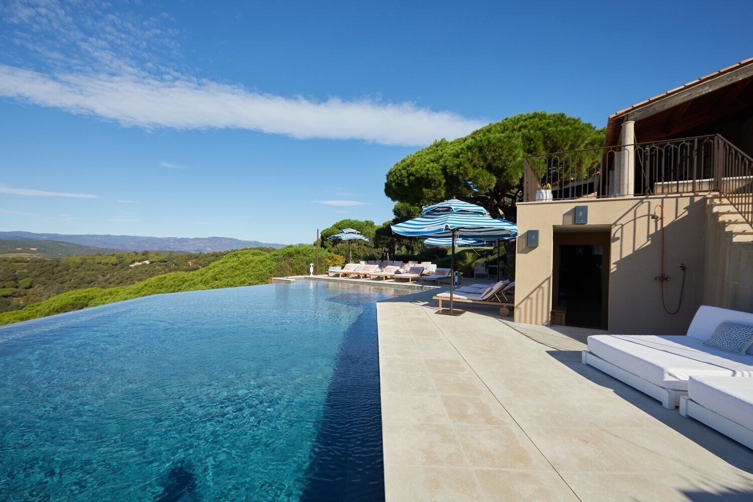 Hidden in a sun-drenched valley near Ramatuelle, this Côte d’Azur retreat feels like a world of its own. Wander through manicured gardens, take in sweeping views from the infinity pool, or sip rosé beneath the pines as the sun sets over the hills. Inside, each bedroom is a private escape, with en-suites and doors opening onto terraces or gardens. There’s space to come together—whether for wood-fired pizza on the terrace or cocktails by the bar—and plenty of quiet corners too. Spend mornings exploring nearby vineyards or strolling through the cobbled streets of Ramatuelle, before returning for golden hour by the pool. Tranquil, elegant and fully staffed, it’s a place to truly exhale.