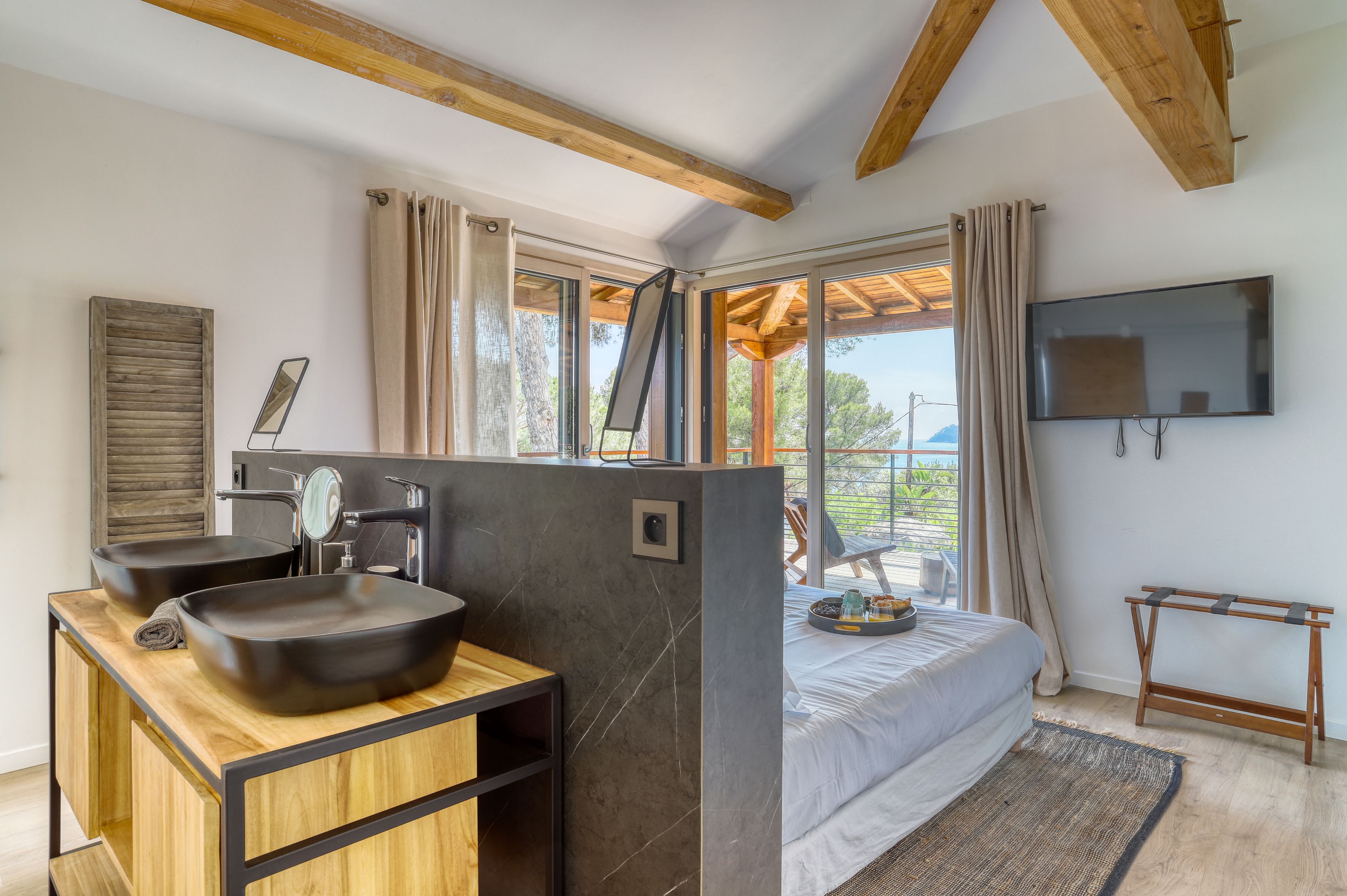 This villa near Saint-Tropez is really something special. Overlooking the Mediterranean, it offers show-stopping views of the French Riviera and is perfectly placed for exploring this captivating coastline. We love the scenic swimming pool surrounded by lush greenery, and the large deck for dinner, drinks, and days spent doing very little. It also has direct access to the sea, with a small cove where you can launch kayaks and paddle boards (your host provides two of each). Inside, the rooms are elegant and comfortable – a peaceful place to recharge your batteries after a blissful day spent sightseeing.