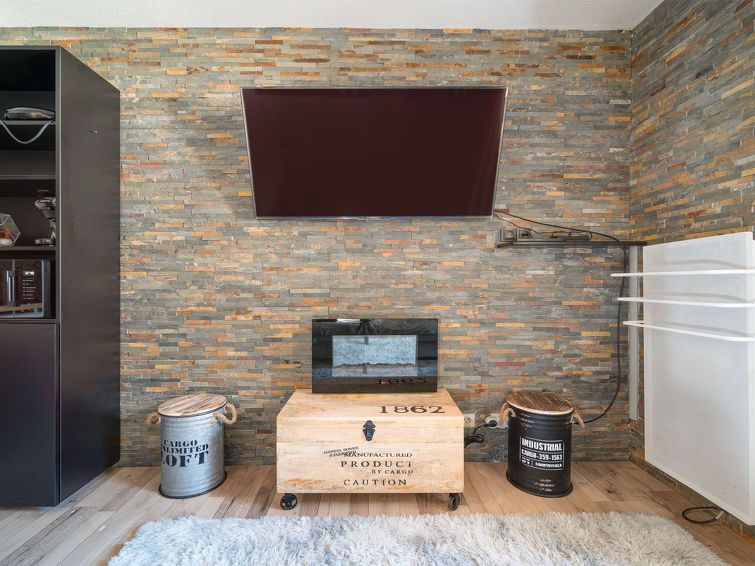 "Le Schuss 4", 1-room studio 15 m2 on 3rd floor. Object suitable for 4 adults. Living room with 1 sofabed and 1 x 2 bunk beds, 1 pull-out bed and TV. Kitchen (2 hot plates, toaster, microwave, electric coffee machine). Shower/WC. Balcony. Please note: non-smokers only. Smoke alarm.