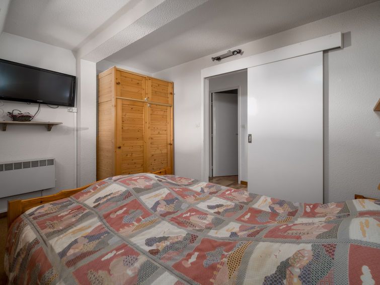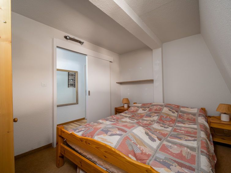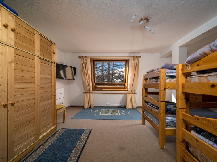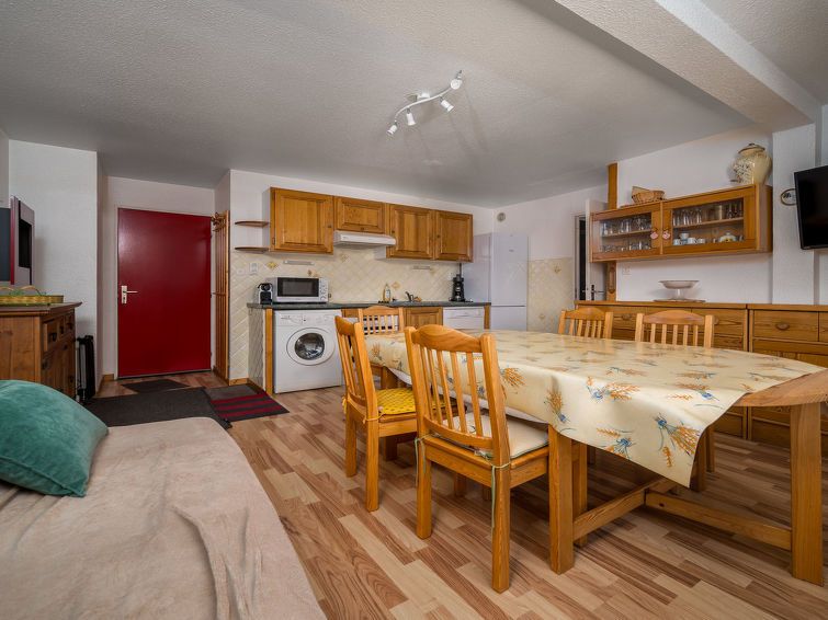 "Les Etoiles D", 3-room apartment 60 m2 on 2nd floor. Object suitable for 8 adults. 1 room with 2 x 2 bunk beds, TV. 1 room with 1 double bed and TV. Living room with 1 sofabed, 1 pull-out bed and TV. Open kitchen (4 hot plates, oven, dishwasher, toaster, microwave, freezer, electric coffee machine).