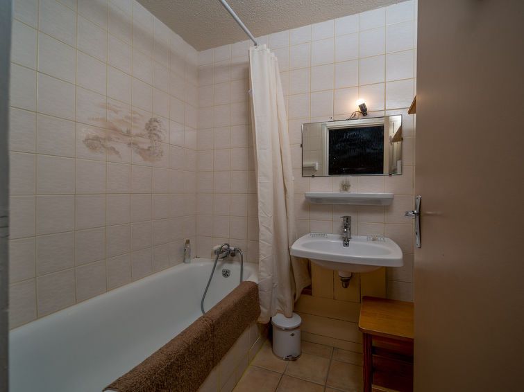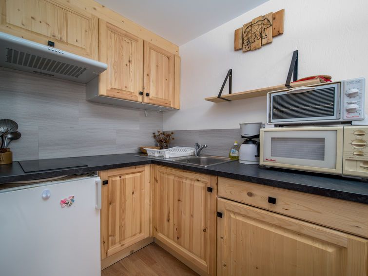 "Les Marmottes", 1-room studio 27 m2, on the ground floor. Object suitable for 4 adults. Living room with 1 sofabed and 1 x 2 bunk beds, 1 pull-out bed, TV and DVD. Open kitchen (2 hot plates, microwave, electric coffee machine). Bath/WC. Balcony. View of the mountains. Please note: 1 pet/ dog allowed.