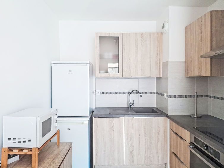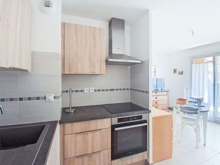 2-room apartment 40 m2 on 1st floor. Bright, comfortable and beautiful furnishings: living/dining room 20 m2 with TV (flat screen). Exit to the terrace, south facing position. 1 room with 1 french bed (140 cm, length 190 cm). Open kitchen (oven, dishwasher, 3 induction hot plates, toaster, kettle, microwave, freezer, electric coffee machine, Capsules for coffee machine (NESPRESSO) extra).