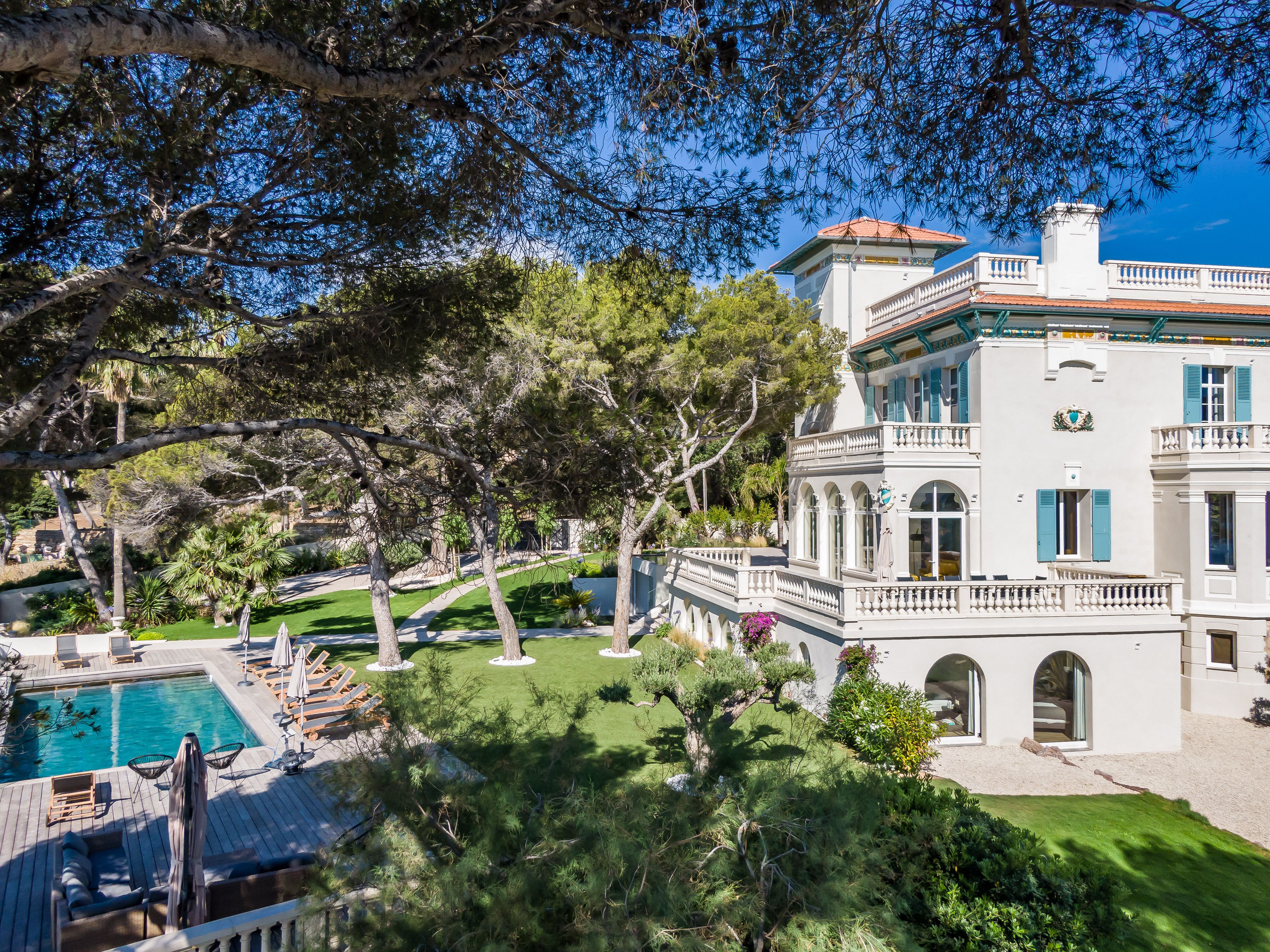 *This villa has over 43,000 square feet of landscaped gardens dotted with pine trees, olive trees and yuccas, along with direct access to the sea