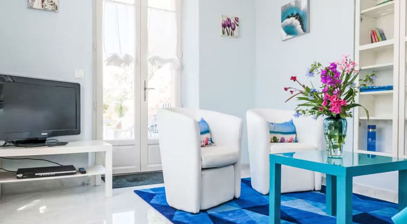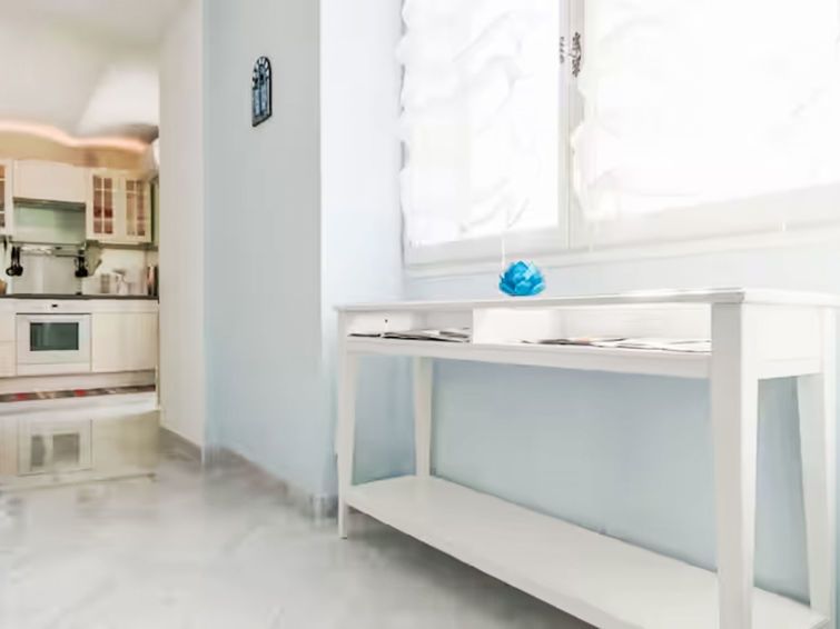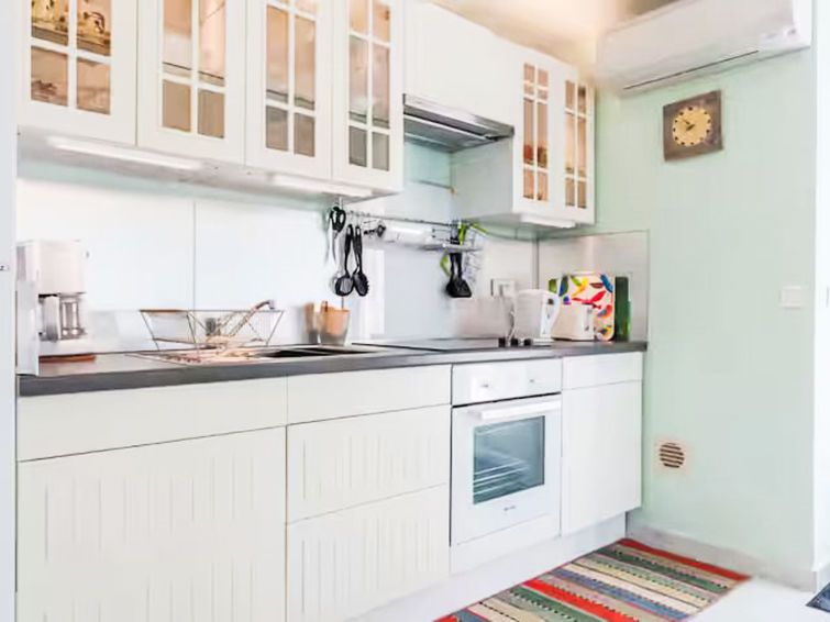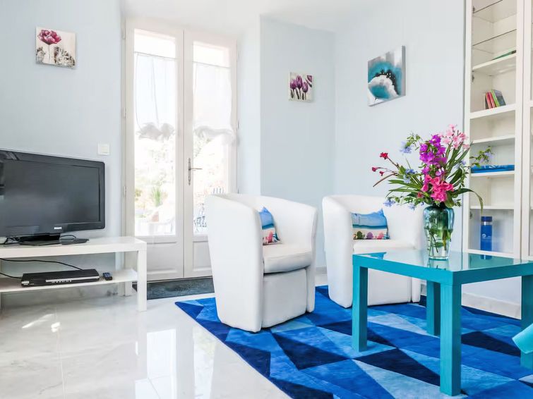 2-room apartment 45 m2, on the ground floor. Bright, beautiful furnishings: living room with 1 sofabed (120 cm, length 200 cm), TV (flat screen). Exit to the terrace, west facing position. 1 room with 1 french bed (140 cm, length 200 cm). Exit to the terrace, west facing position.