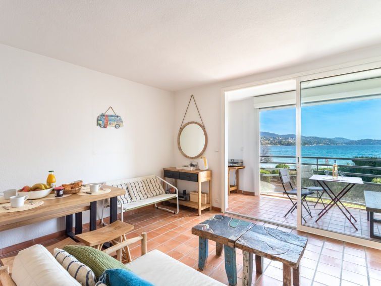 The apartment is located directly in the pretty, family-friendly bay of Saint Clair. From the balcony, you can enjoy a beautiful view. A small shop is a 5-minute walk away, and the coastal path takes you to the harbor in 10 minutes, and the center of Le Lavandou in 20 minutes. The apartment is very well equipped. Unfortunately, there is a fairly busy road behind the apartment, adjacent to the bedrooms, so there is some noise disturbance at night if the window is open.