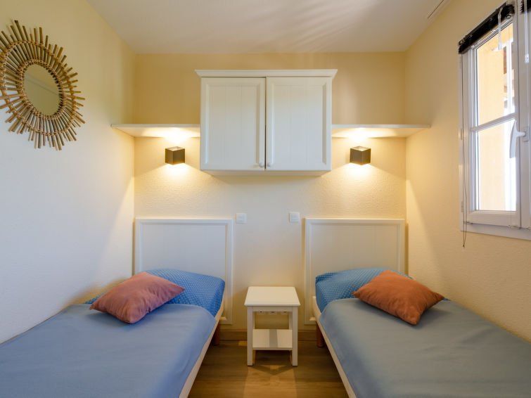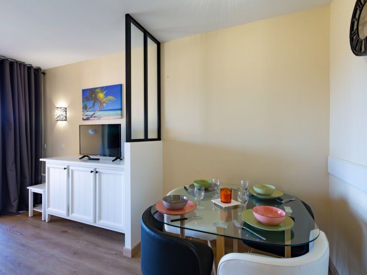2-room apartment 25 m2 on 2nd floor, south-east facing position. Beautiful furnishings: living/dining room with 1 pull-out bed (2 x 90 cm, length 190 cm), TV (flat screen). Exit to the terrace. 1 small room with 2 beds (80 cm, length 190 cm). Open kitchen (dishwasher, 4 ceramic glass hob hotplates, toaster, kettle, electric coffee machine, combination microwave).