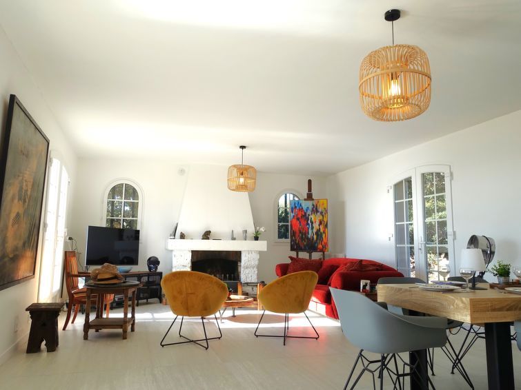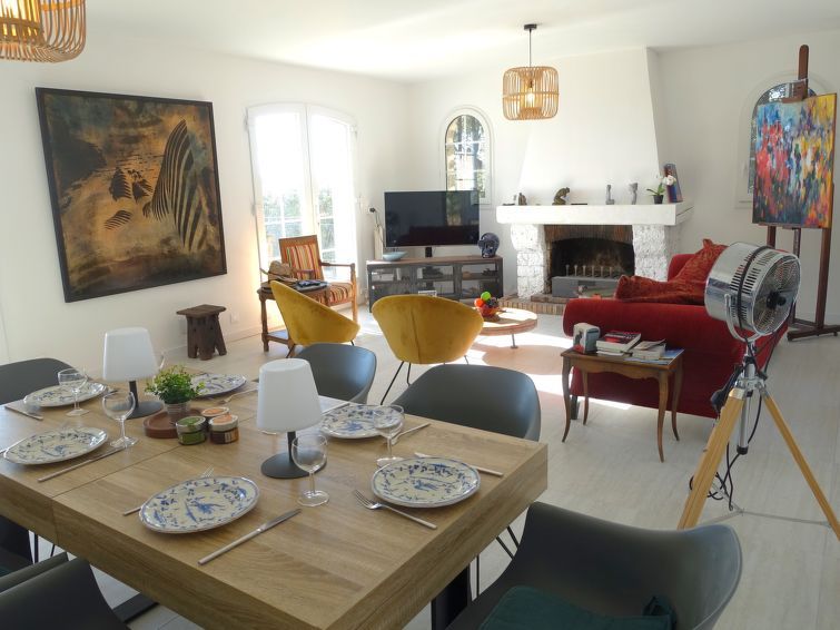 4-room villa 110 m2 on 2 levels, south facing position. Spacious, cosy furnishings: living/dining room with TV (flat screen), hi-fi system, DVD and fan. Exit to the terrace. 1 room with Dressing room with 1 french bed (1 x 160 cm, length 190 cm), fan. Exit to the balcony. 1 room with Dressing room with 1 french bed (1 x 140 cm, length 190 cm), fan.