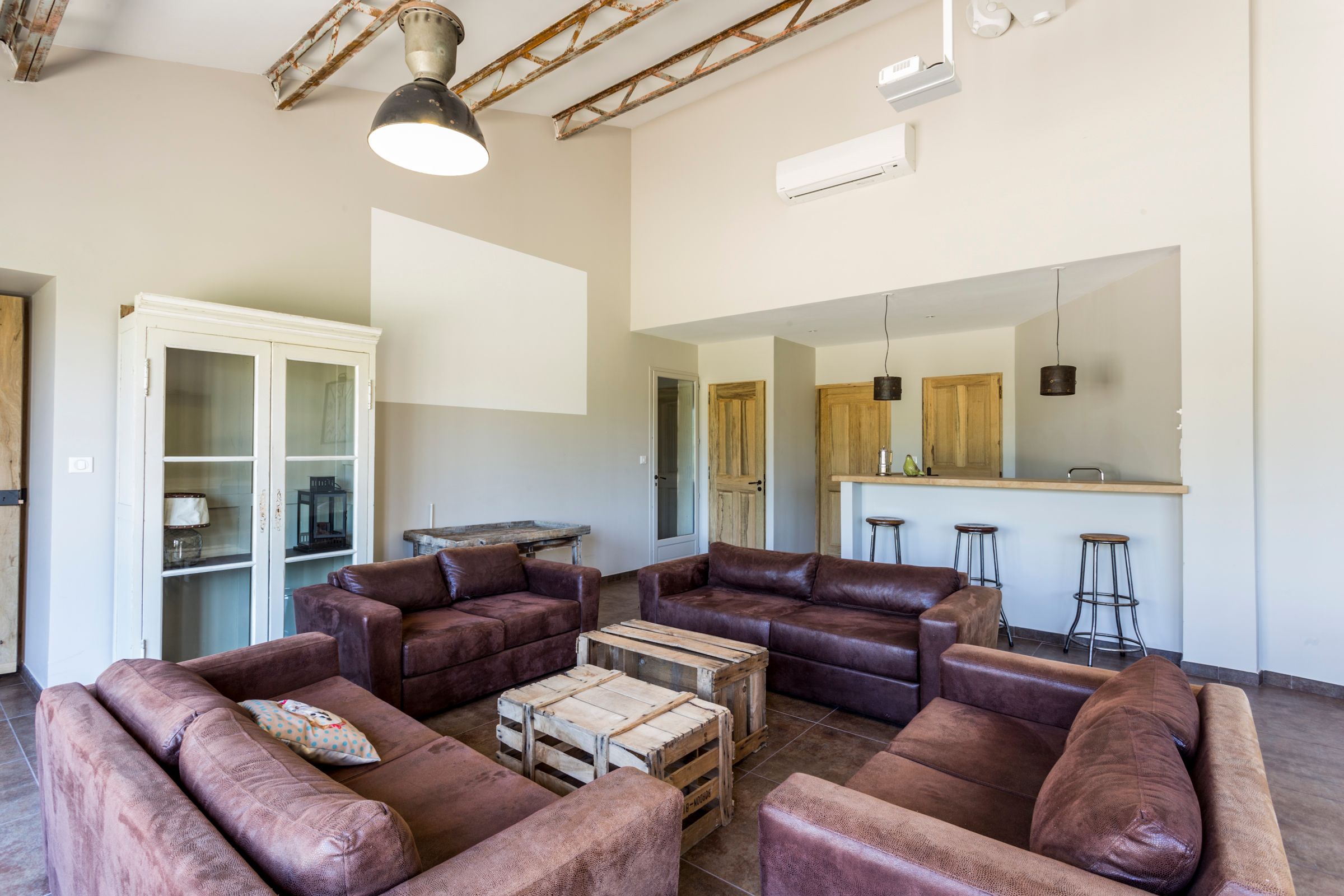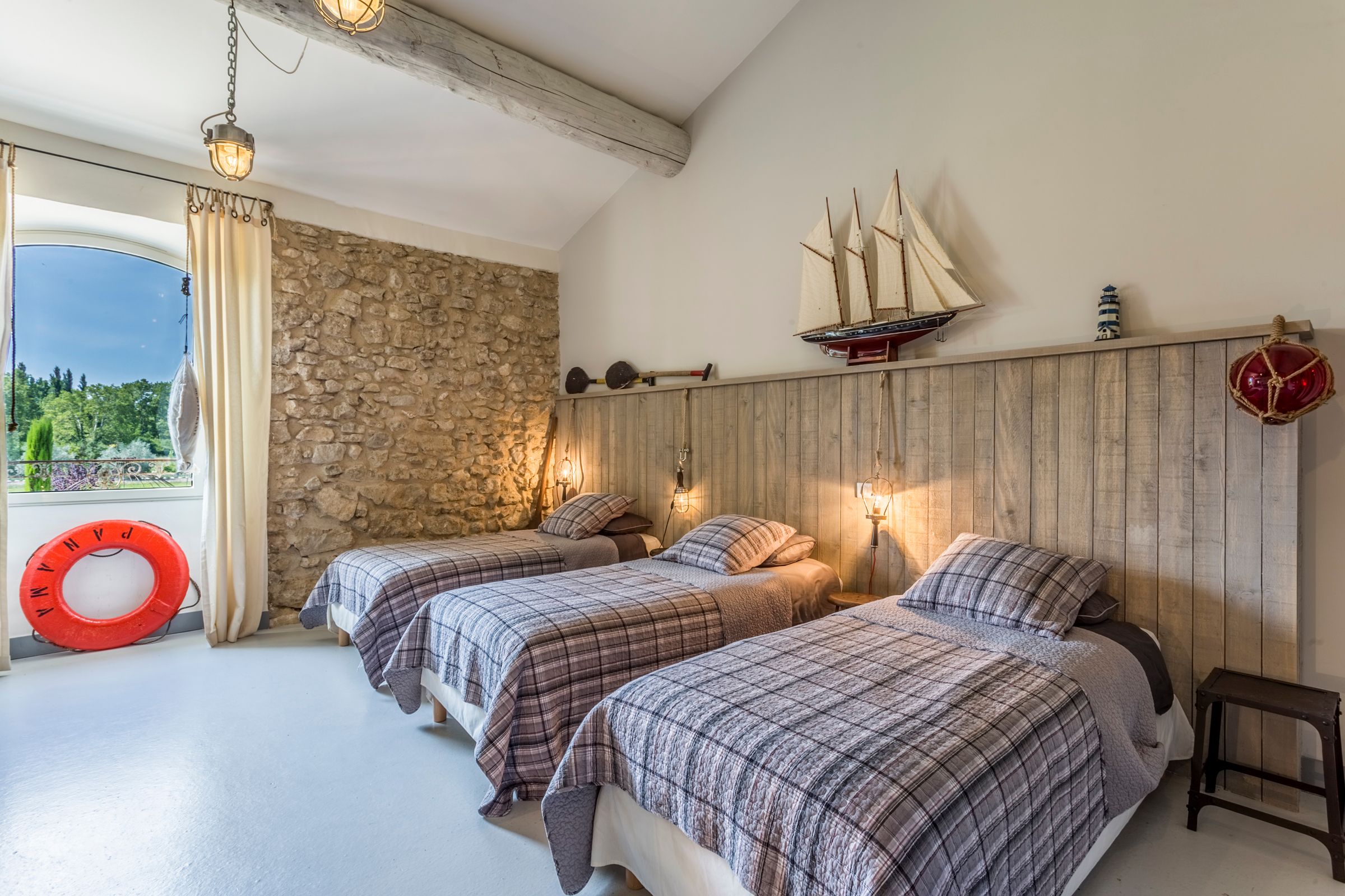 Surrounded by three-hundred-year-old olive groves, cypress trees and lavender, this Provençal stone farmhouse is an idyllic setting for you to relax and explore the region. You'll enjoy peace and quiet here, with 6 hectares of greenery, a private swimming pool, and plenty of outdoor living areas that invite you to unwind. With a fully-equipped games room, boules playing area, swing, sandpit, and trampoline, the home is ideal for family get-togethers and entertaining. There's also a second professional kitchen which can be reserved for a private chef to cater for all. Beyond the house, head to the beautiful Provençal town of L'Isle-sur-la-Sorgue, just a short drive away.
