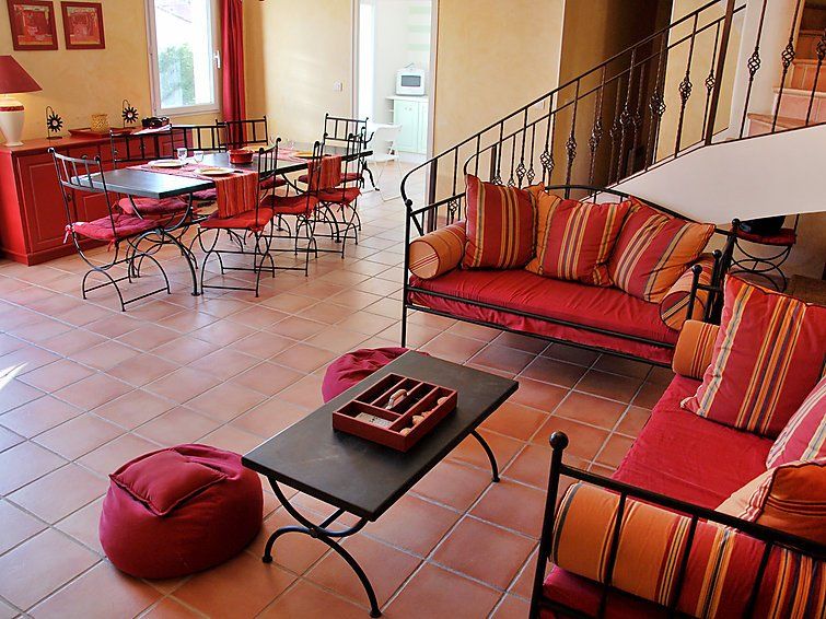 5-room house 120 m2 on 2 levels. Entrance hall. Living/dining room 36 m2 with open-hearth fireplace and TV (flat screen), hi-fi system. Exit to the terrace. 1 room with 1 french bed. Exit to the terrace. Kitchen (4 hot plates, oven, dishwasher, microwave, freezer, electric coffee machine).