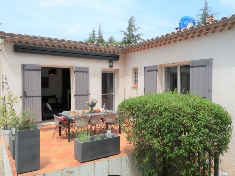"Le Jade", 5-room house 104 m2. Comfortable and beautiful furnishings: living/dining room with Scandinavian wood stove (only for decoration), dining table and TV. Exit to the garden, to the terrace. 1 room with 1 french bed (1 x 160 cm, length 200 cm). 1 room with 1 french bed (1 x 140 cm, length 190 cm).