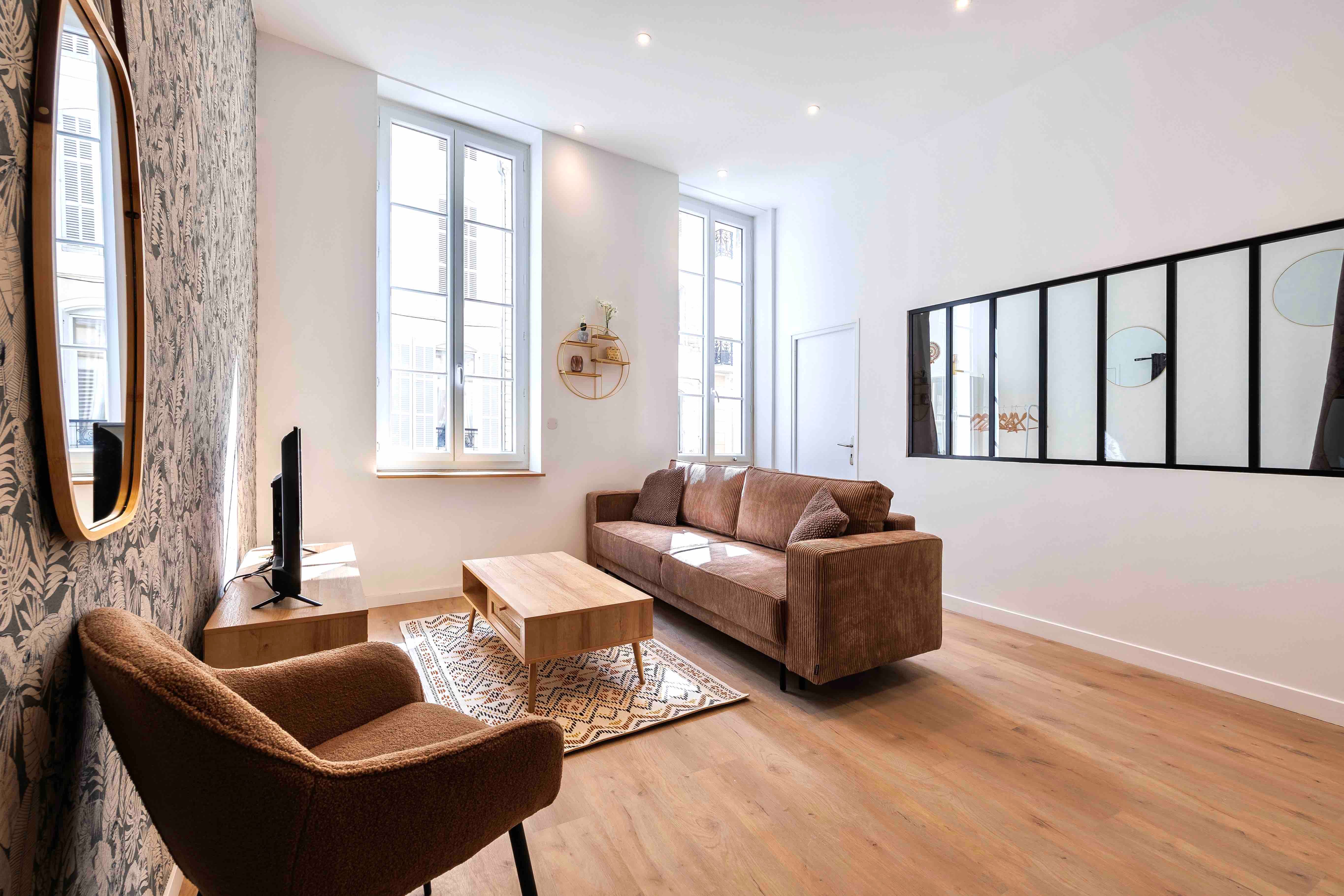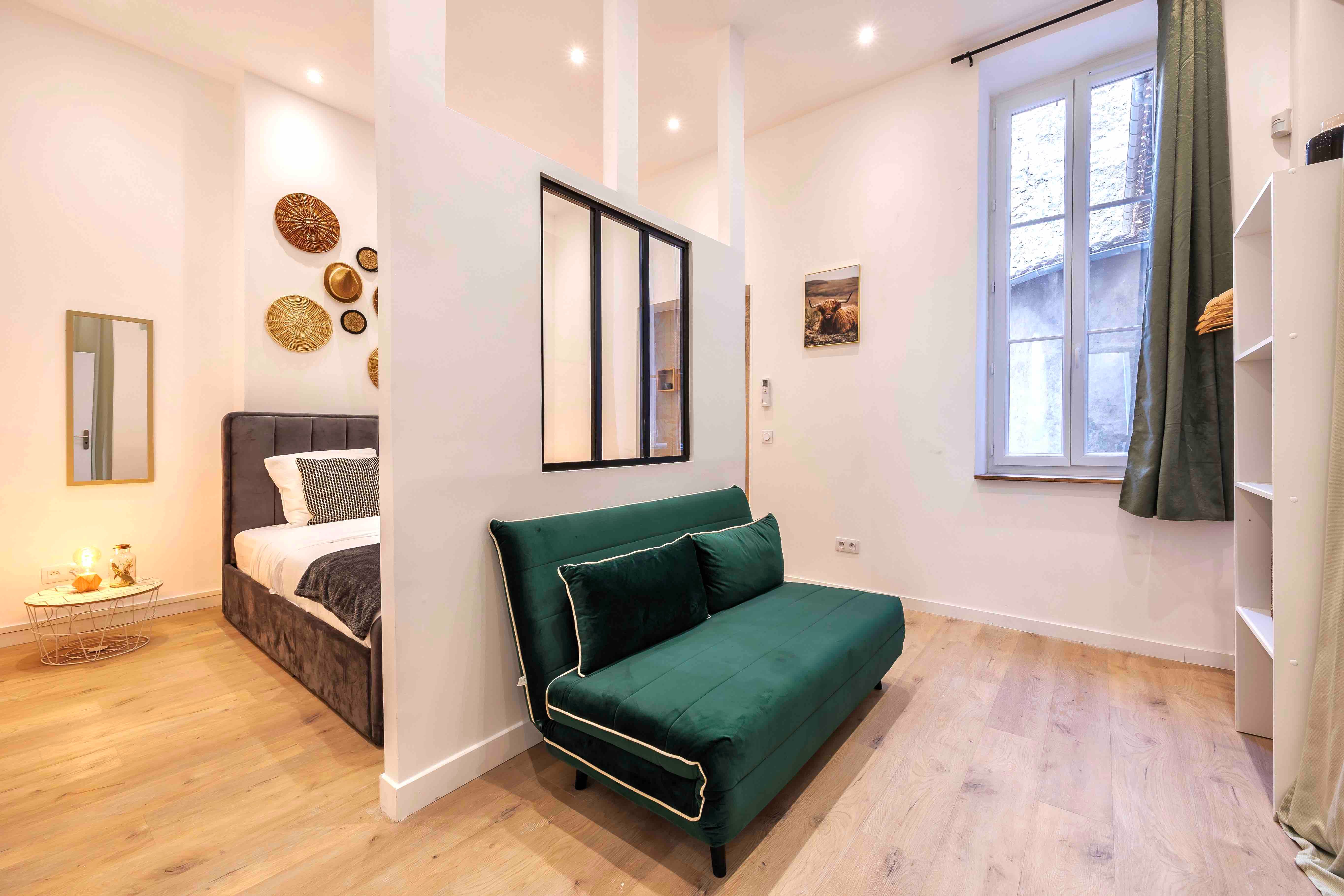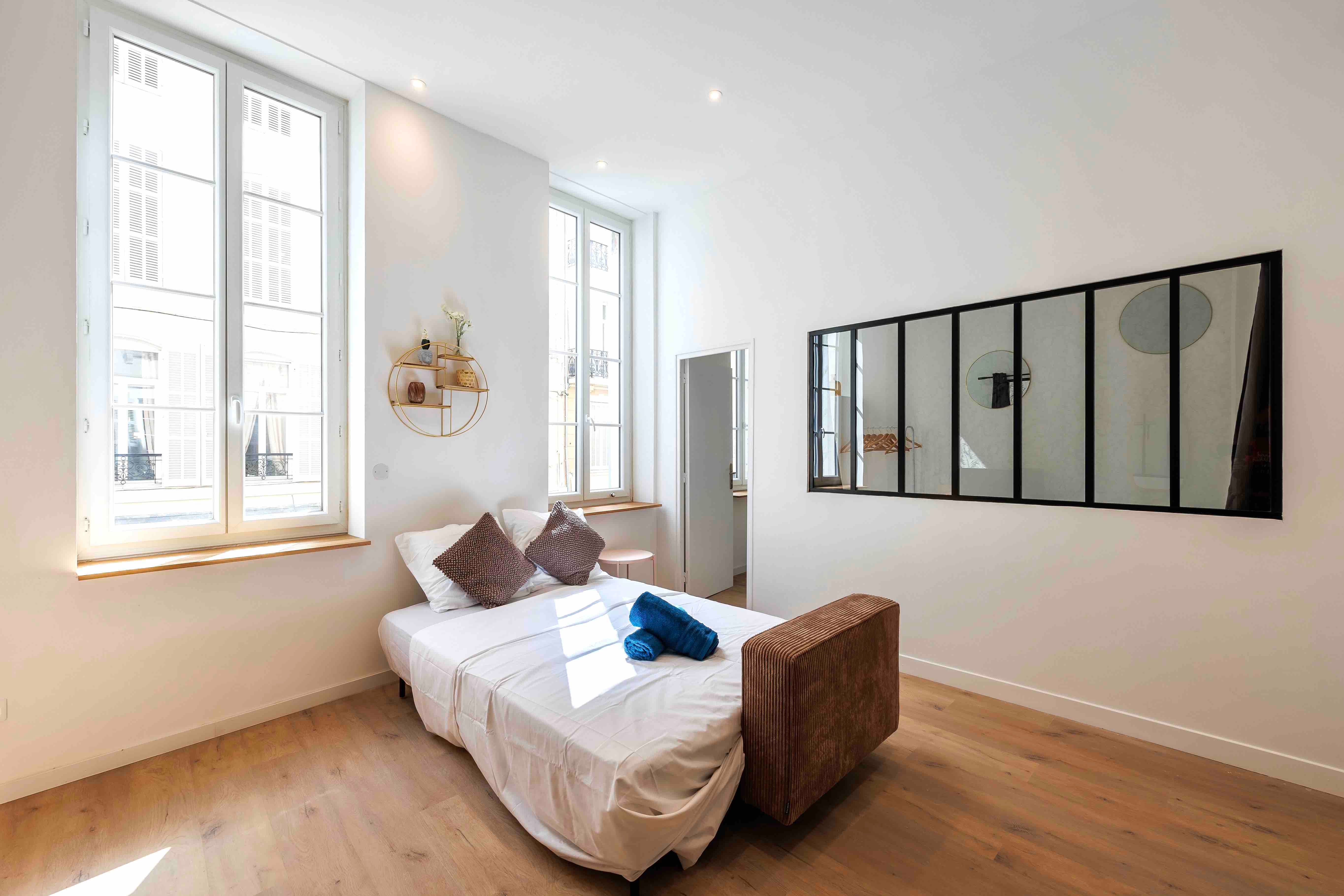 A short stroll from the Vieux Port, this apartment puts you right in the heart of the action. Take your pick from nearby restaurants, hunt for vintage treasures, or simply enjoy watching the world go by from the floor-to-ceiling windows. The kitchen has everything you need for cooking at home, and there's plenty of space to relax after a day of exploring. The neighbourhood can get a little lively during the day, but we think the central location is worth it.