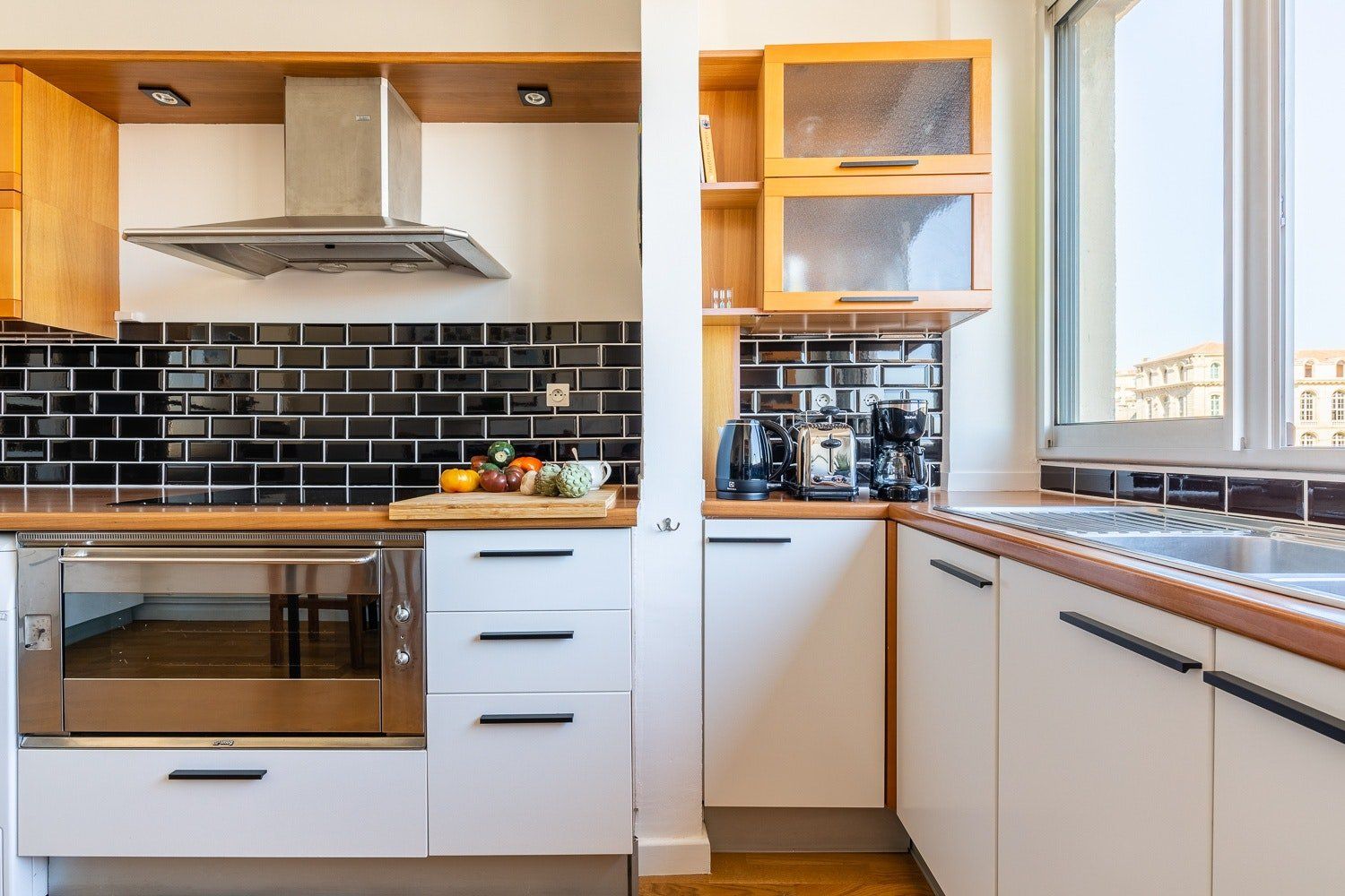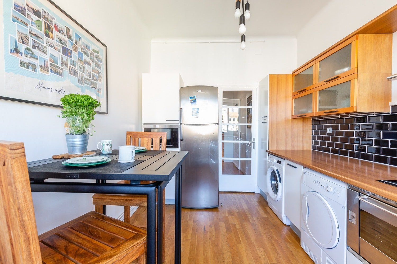 This bright space packs a punch with its soft blush tones, 70s modern furnishings and glass walls that flood the open-plan living room with light. The views are what really grab us here. Wake up in the master bedroom to sights of the Hôtel-Dieu – a 16th-century building classified as a palace since the start of the 21st-century – before walking a matter of steps to your private balcony, where you'll find sprawling vistas across the port and up to the basilica known by locals as, la Bonne Mère. It's here we imagine you’ll start your day sipping coffee as the sun rises and end your day by clinking glasses of Bandol as the sun falls.