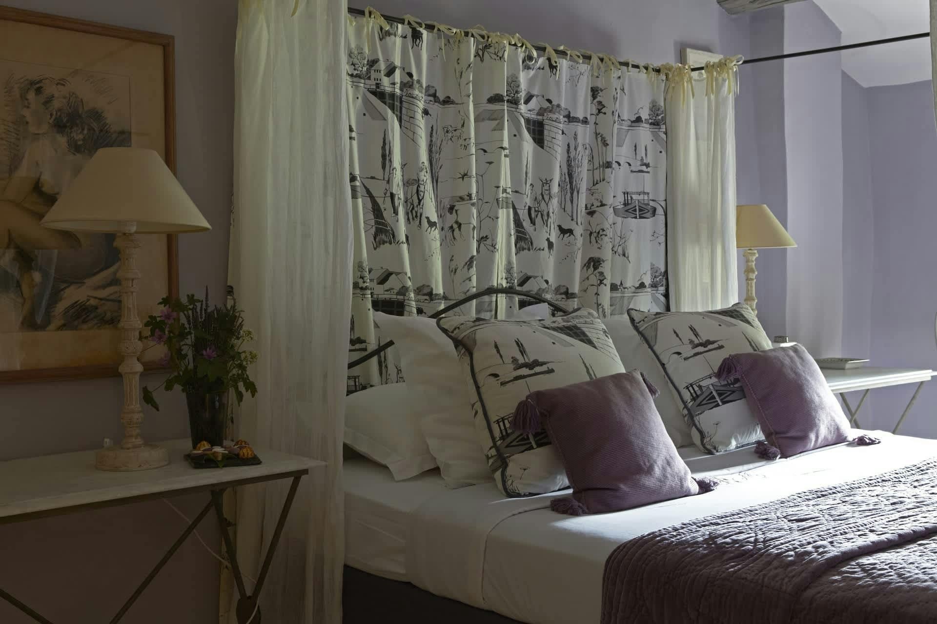 This romantic villa is nestled in the vineyards and lavender fields of the Luberon, offering a quintessential Provençal escape. Patio doors open onto the peaceful terrace, surrounded by greenery – the alfresco dining table under the vines is the perfect spot for breakfast, which is included with your stay. Lie back on a lounger in the sun, or retreat to the shady outdoor lounge area – the scent of lavender will follow you. Inside, exposed stone walls and wooden beams evoke country tradition, and we love the elegant master suite with its petite spiral staircase. You're a short drive from Ménerbes – make sure to visit on a Thursday morning for the weekly market.