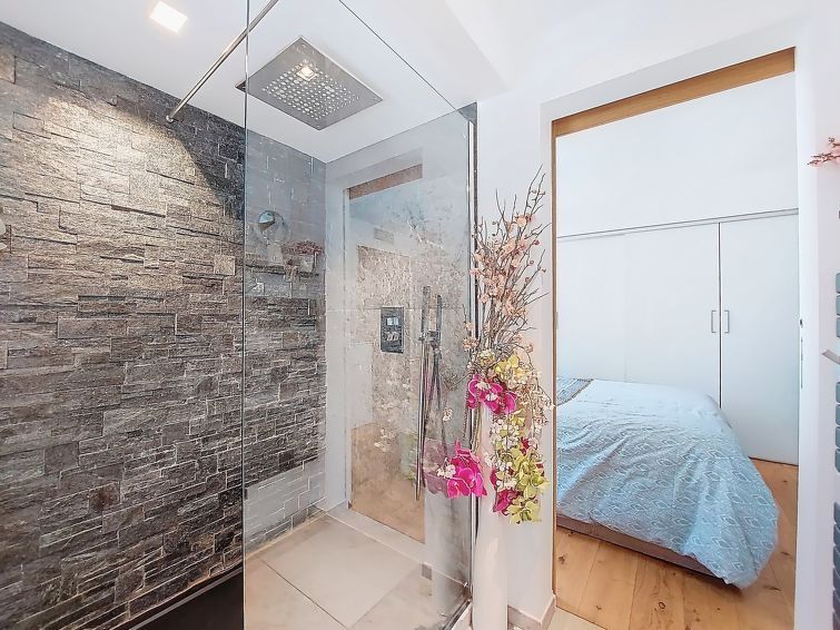 The apartment is in a very good location, right on the beach, and features modern furnishings. Nothing was missing. The terrace is really large and offers a fantastic view of the promenade and the sea. Unfortunately, the street noise and the sound of the pebble beach were quite loud. The surrounding area is easy to explore on foot or by bus, which stops right in front of the house. The service on site was very friendly and attentive – a huge compliment!