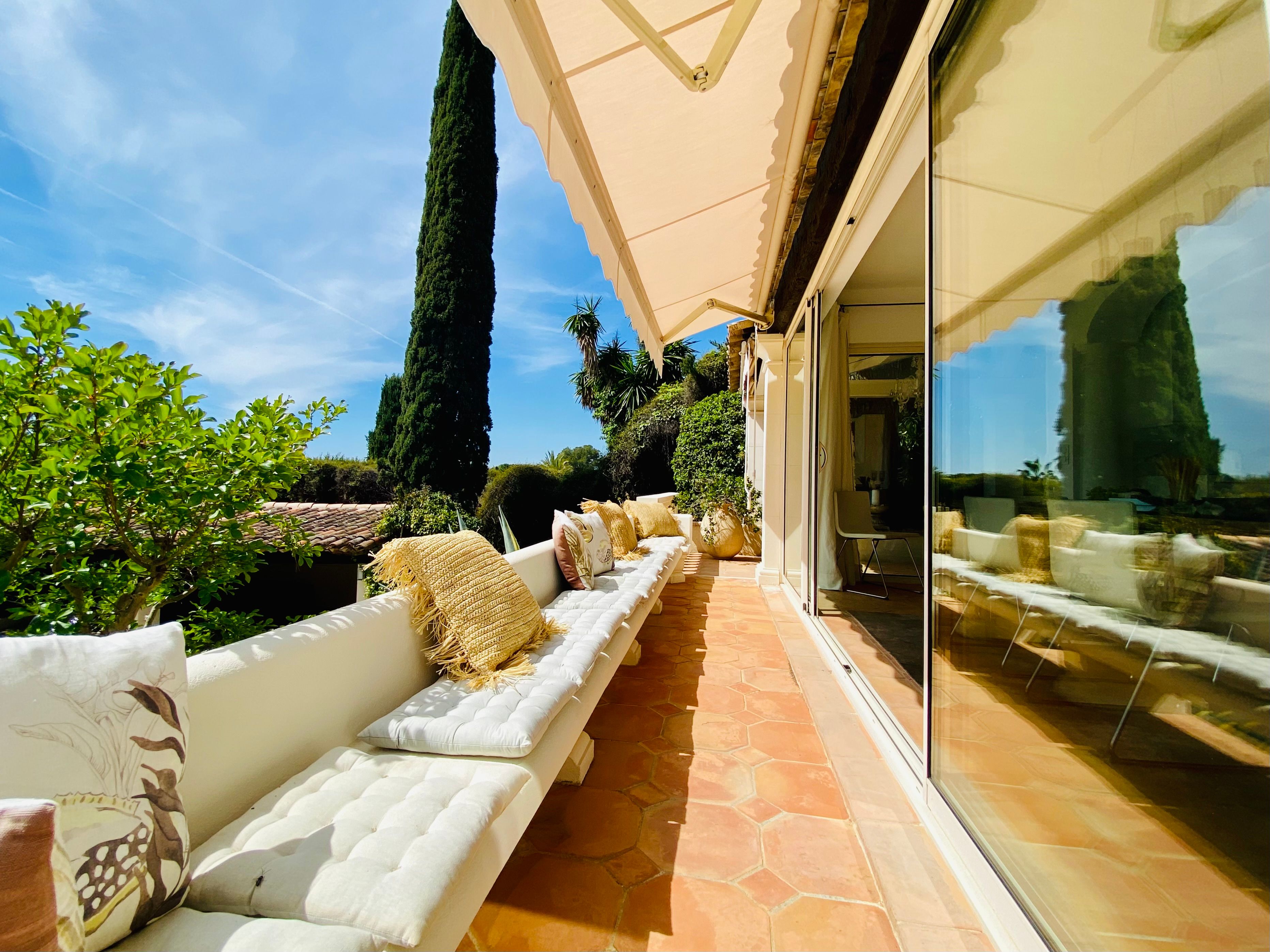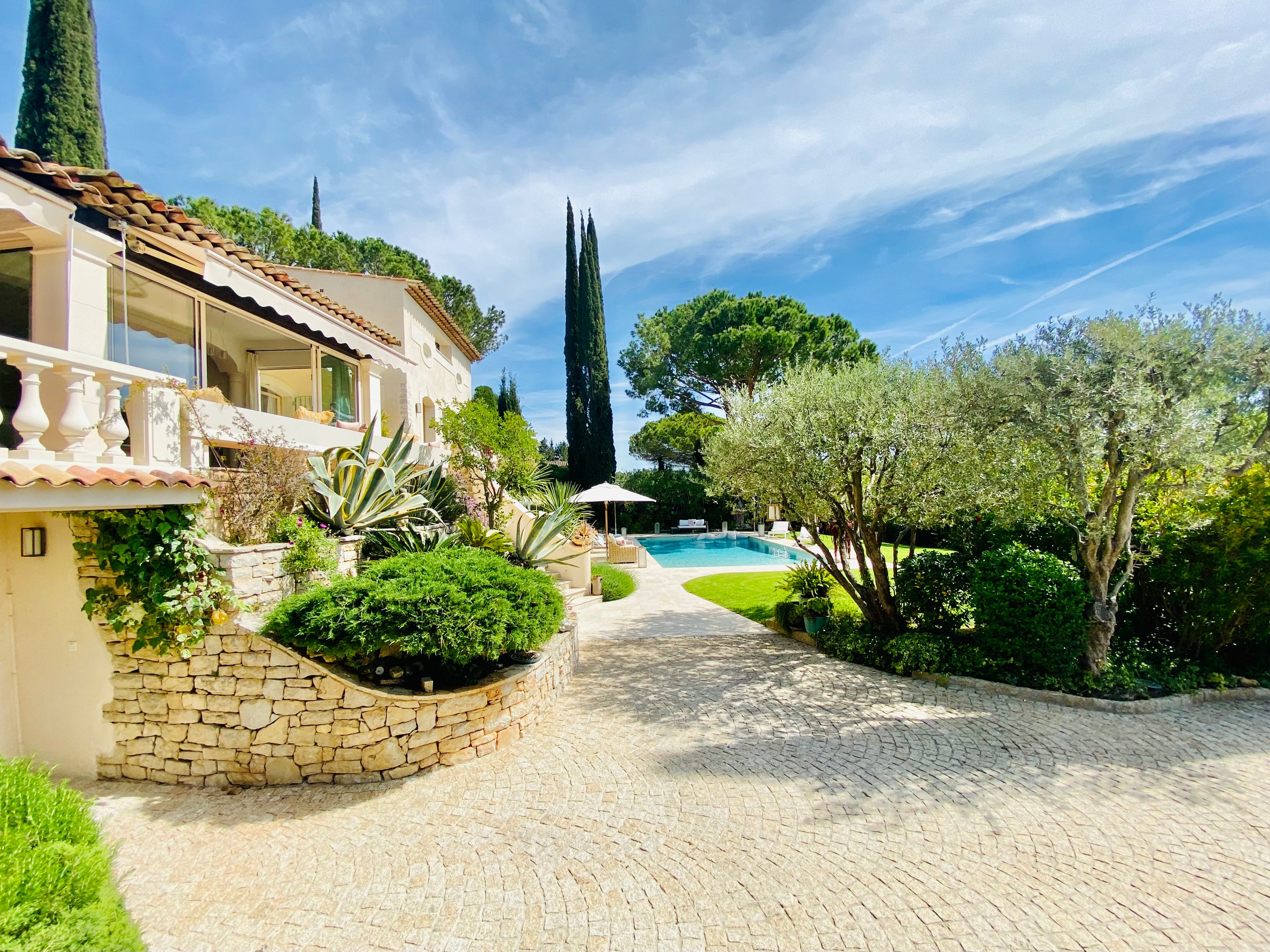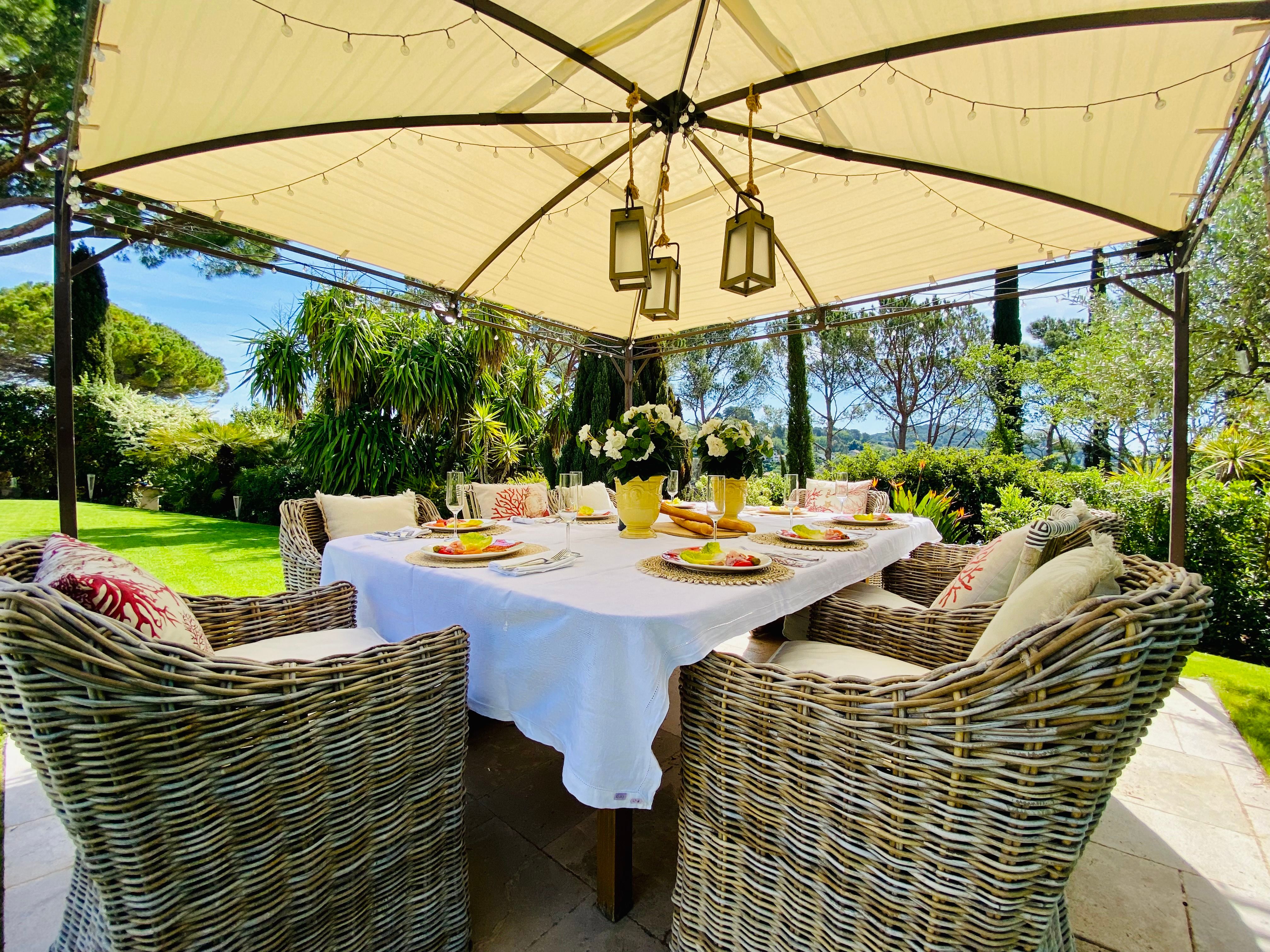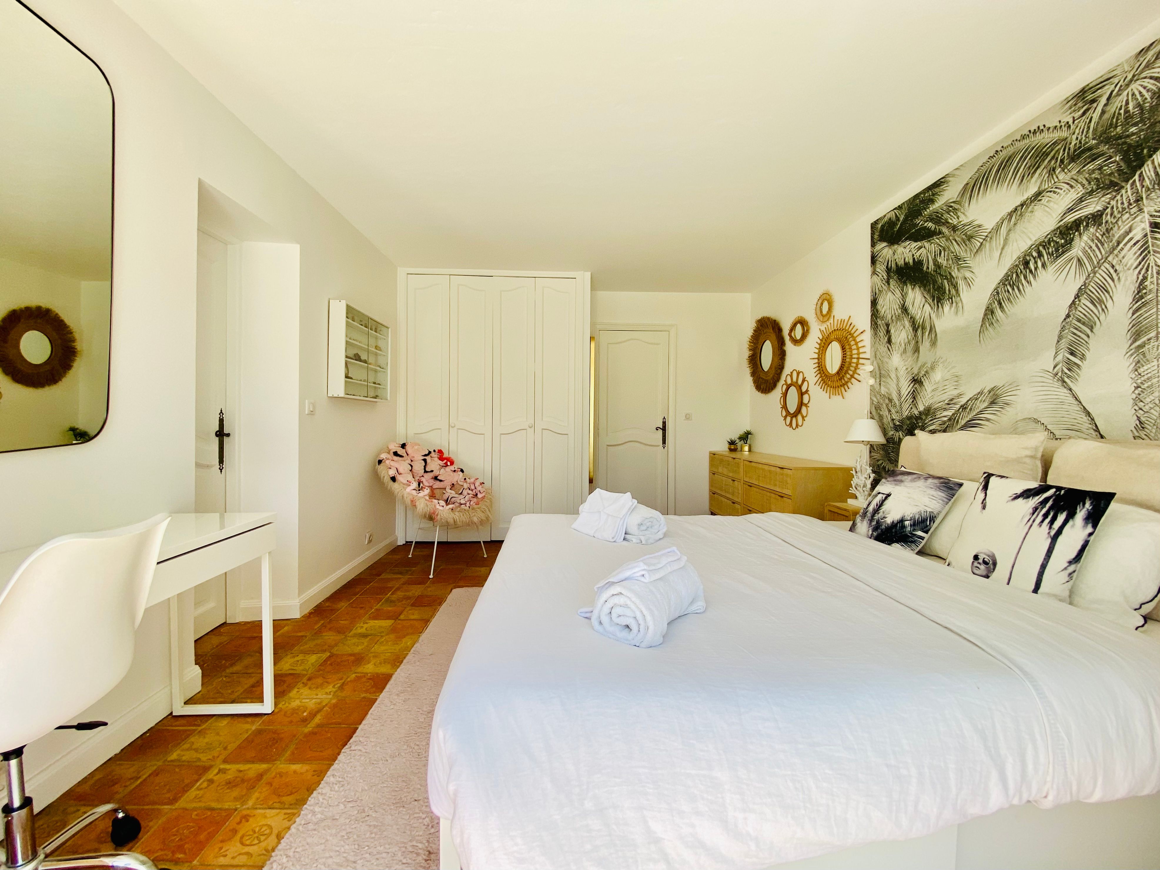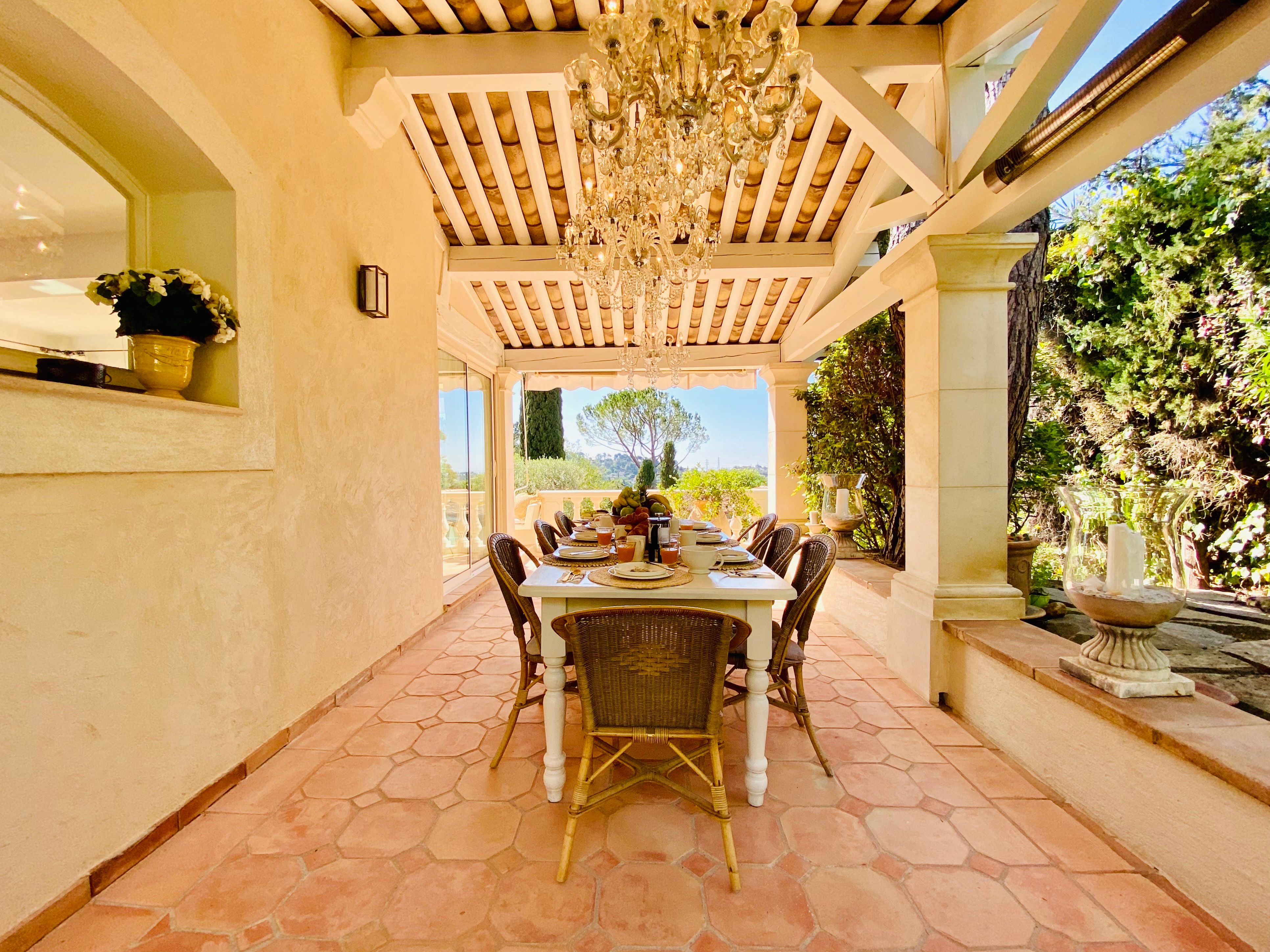 Not only is this villa a lavish spot for group gatherings, but it’s also a short walk from the beautiful historic centre of Mougins where you’ll find restaurants, bars and numerous art galleries. The villa has a series of terraces and patios, home to sunny dining spots, outdoor lounges and a private swimming pool. Inside, you can choose to hang out in the plush main lounge or more casual space at garden level which acts as the fourth bedroom. The kitchen is sleek and modern and glass sliding doors by the dining table show off a view of the greenery around you.