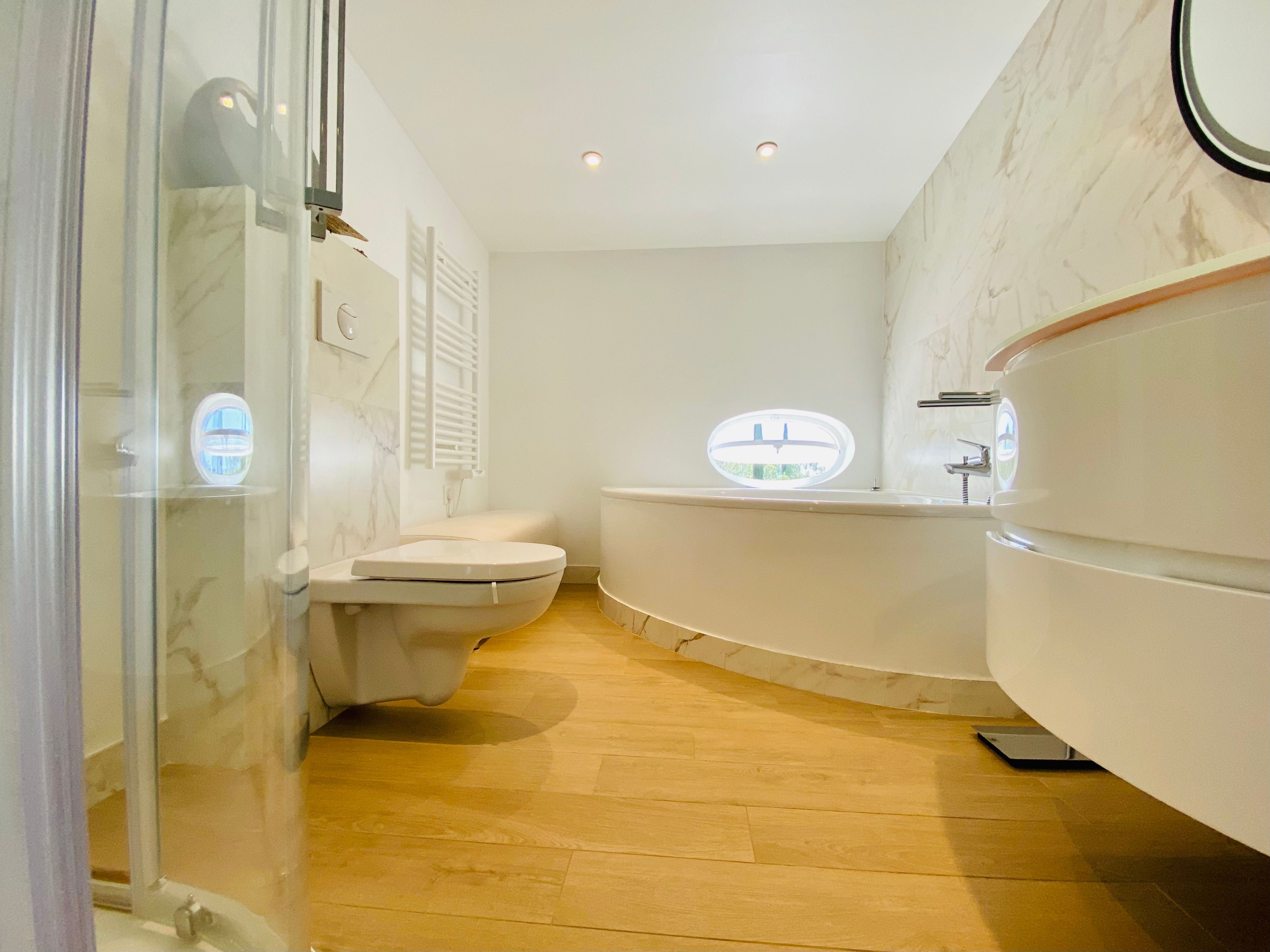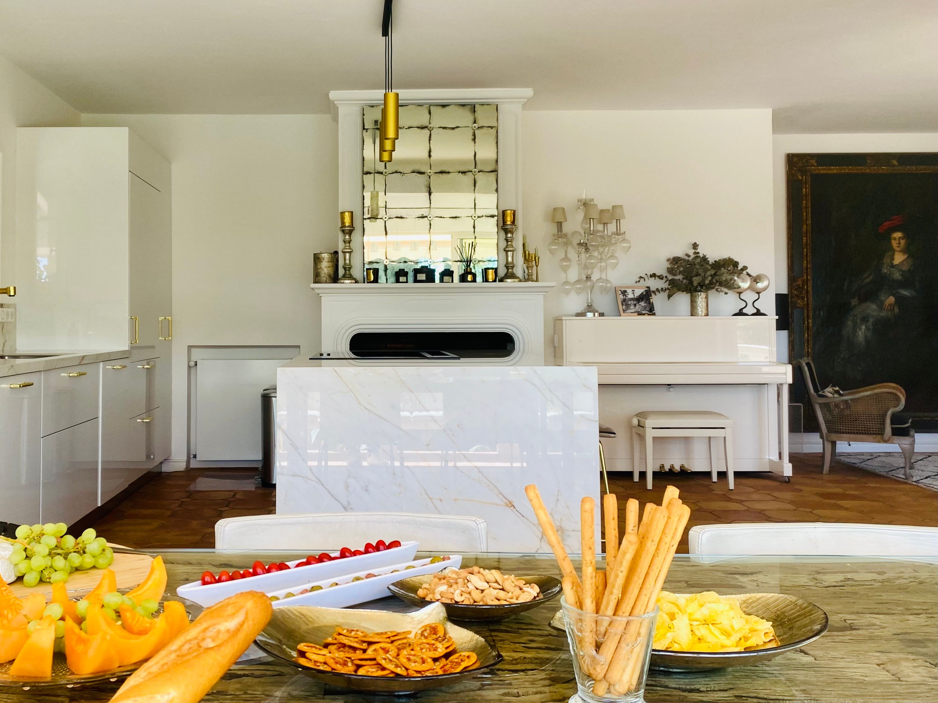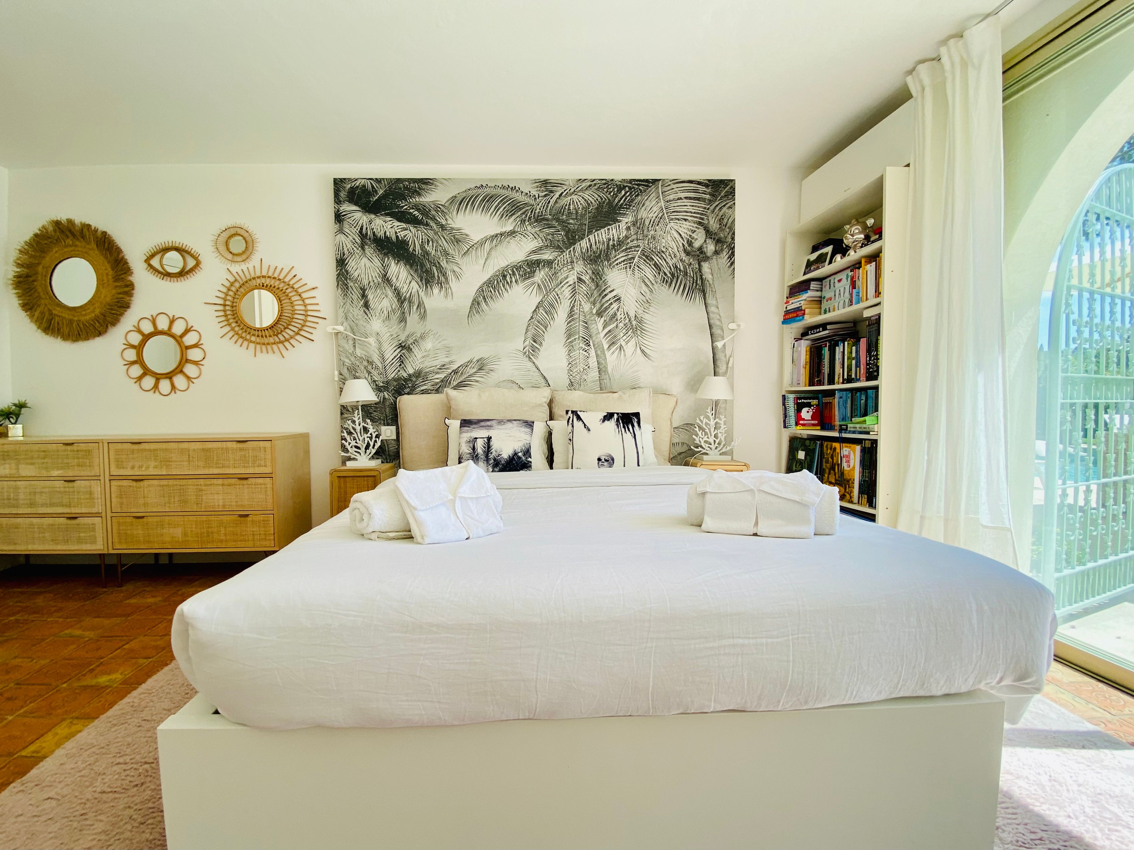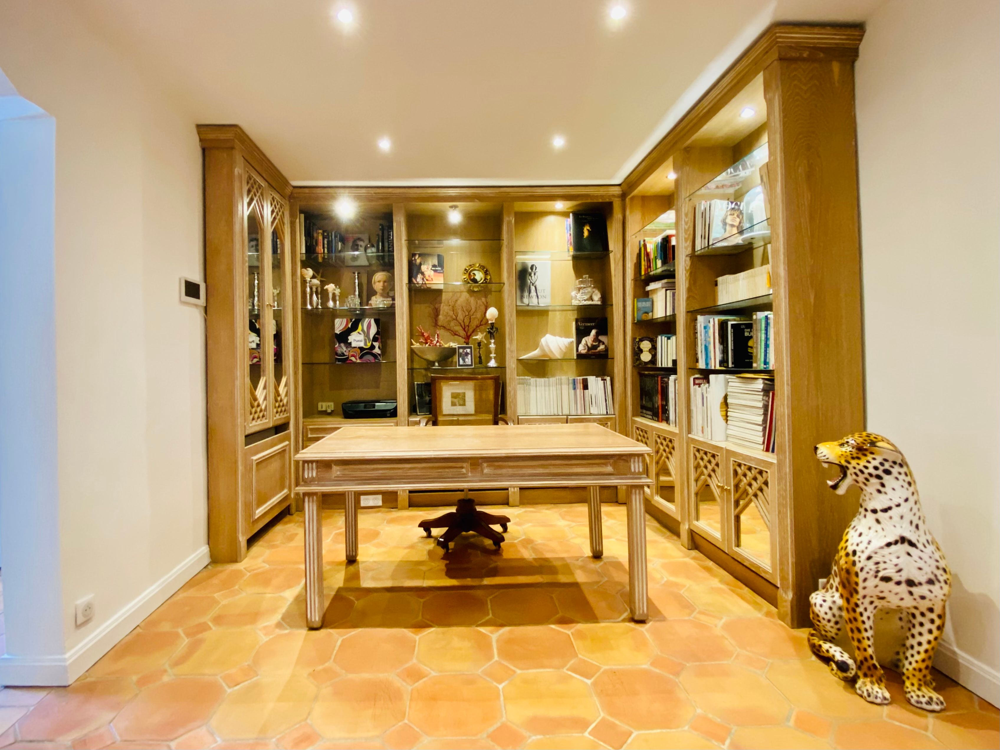 Not only is this villa a lavish spot for group gatherings, but it’s also a short walk from the beautiful historic centre of Mougins where you’ll find restaurants, bars and numerous art galleries. The villa has a series of terraces and patios, home to sunny dining spots, outdoor lounges and a private swimming pool. Inside, you can choose to hang out in the plush main lounge or more casual space at garden level which acts as the fourth bedroom. The kitchen is sleek and modern and glass sliding doors by the dining table show off a view of the greenery around you.