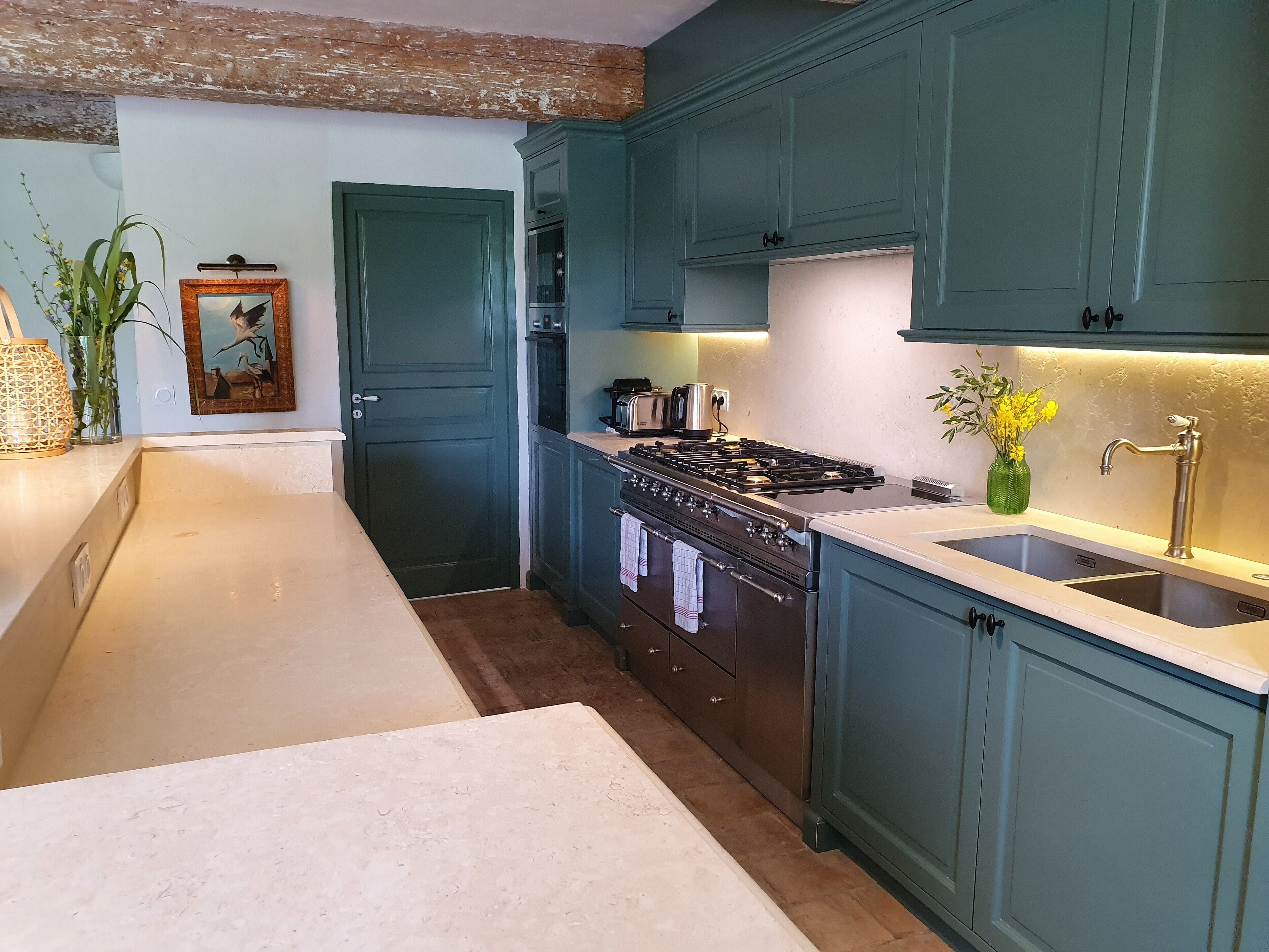 This elegant 18th-century chateau effortlessly blends traditional features with contemporary touches. The original fireplaces and domed ceilings exude French charm, while the fully-equipped kitchen and chic bathrooms are right on trend. You’ll have plenty of room here for the whole group to spread out, with ten bedrooms, three living rooms, and a large garden featuring sun terraces and a heated swimming pool at your disposal. But it’s the thoughtful details that really make us swoon, from gym equipment and a grand piano to the custom-built library. Location-wise, it’s nestled in the quaint town of Mouriès. Popular spots like Saint-Rémy-de-Provence, Avignon, and Arles are in driving distance and make fantastic options for day trips.