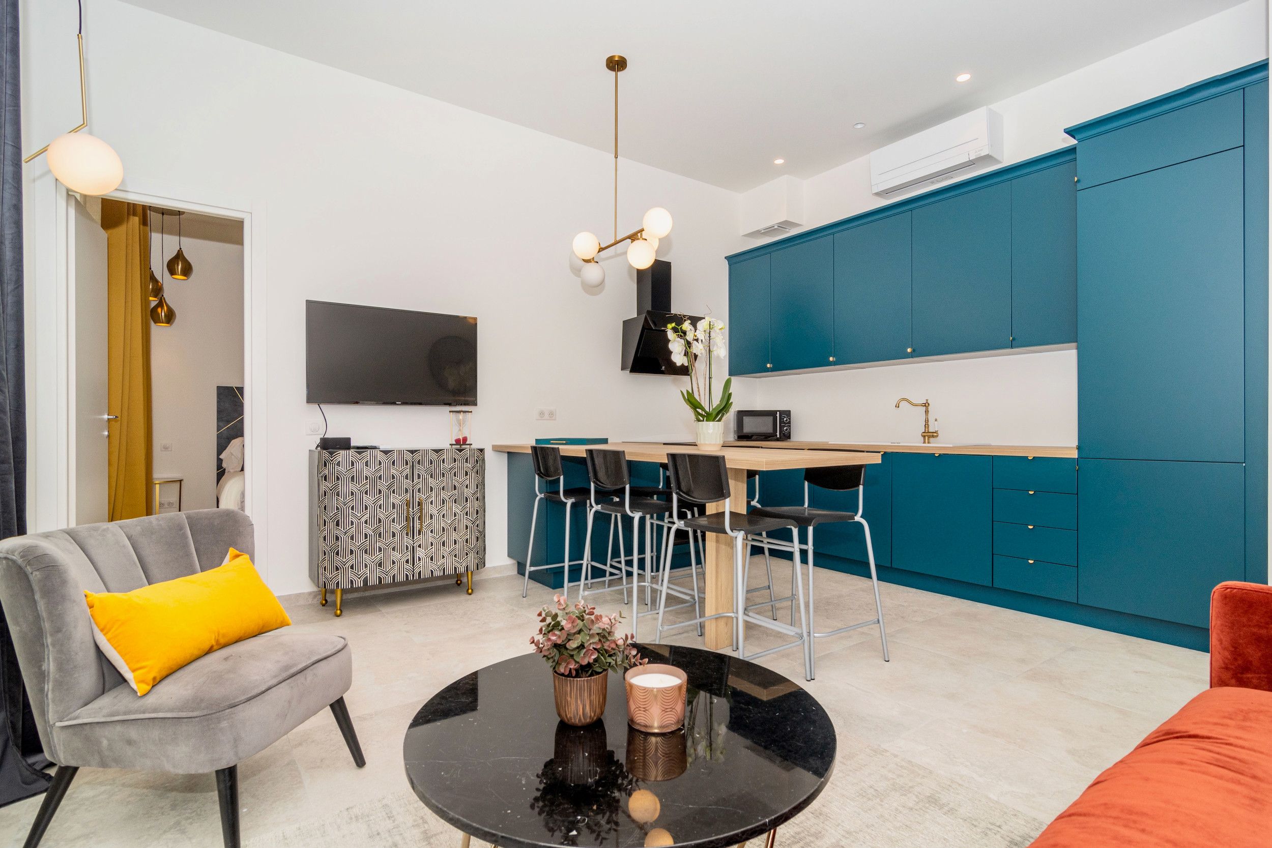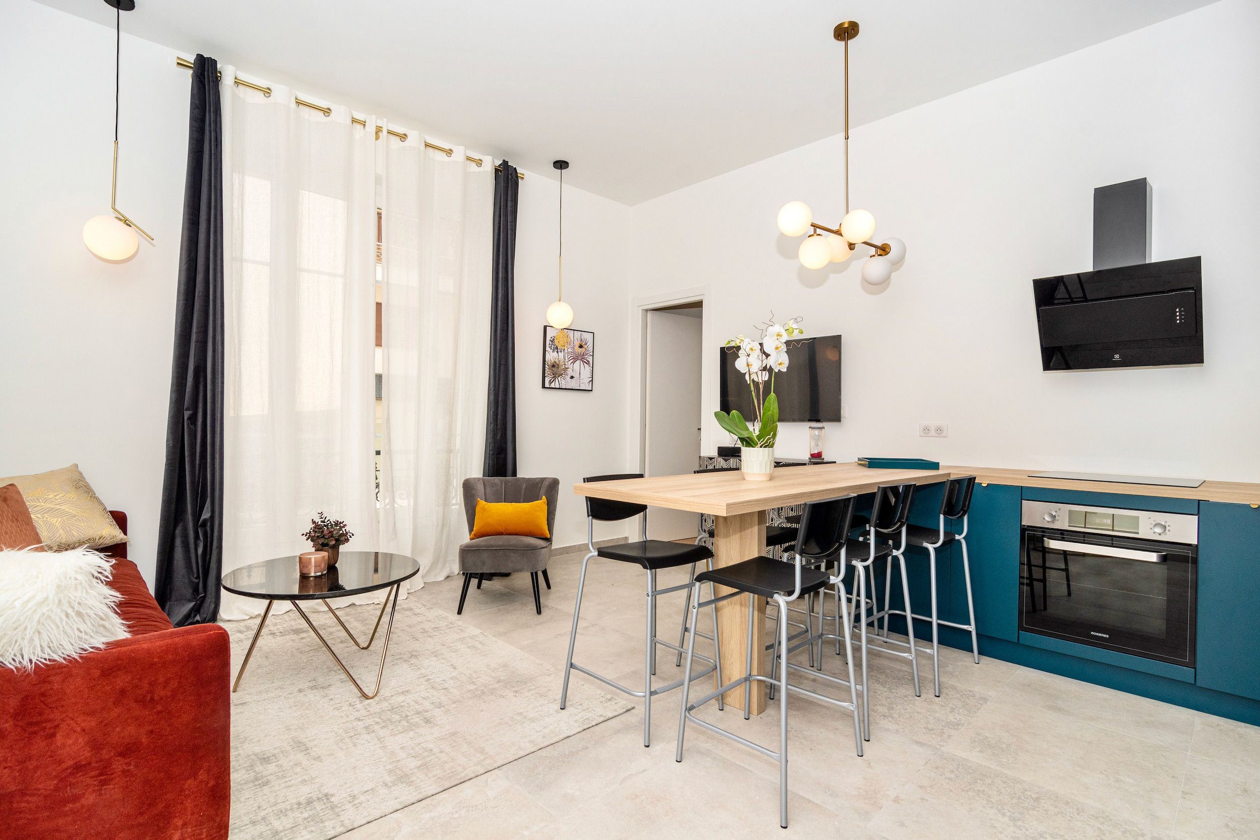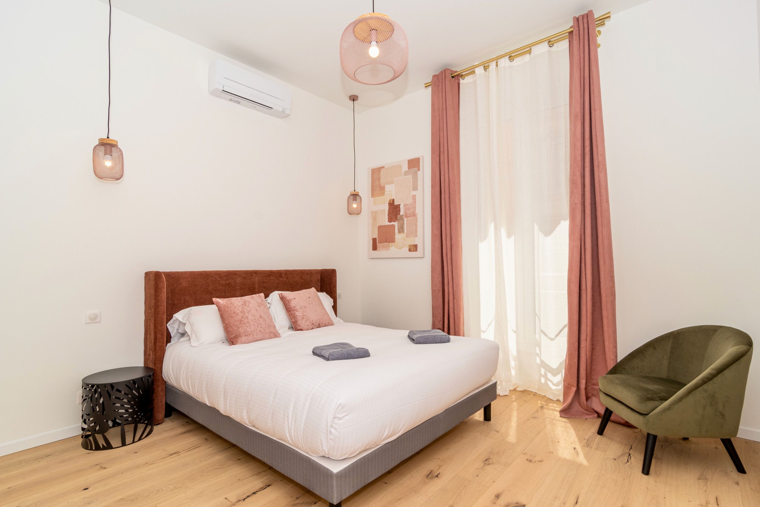 This comfortable Nice apartment is conveniently located in the heart of the Carré d'Or district, a stone's throw away from the Promenade des Anglais and the sprawling beaches of Nice. In such a central location, you can spend mornings in the sea, afternoons browsing boutiques in the old town, and evenings sampling local food and wine. There's plenty of space for the whole family here, with ensuite bathrooms, flexible sleeping arrangements in the second bedroom, and a full dining table in the open-plan kitchen and diner – perfect for a night in with a home-cooked meal.