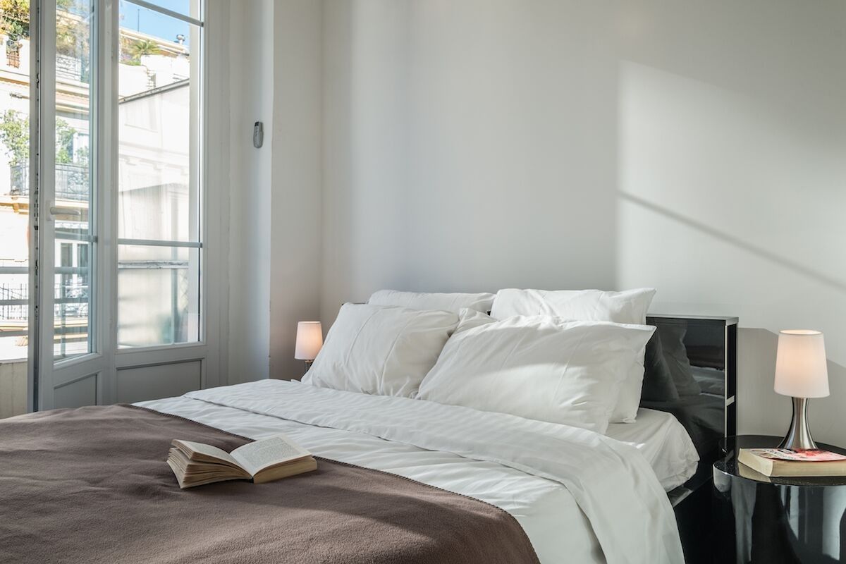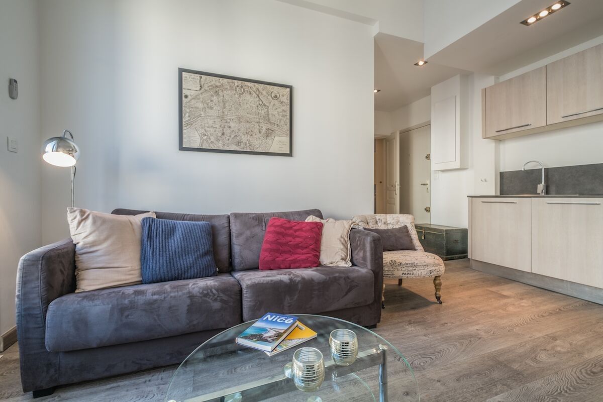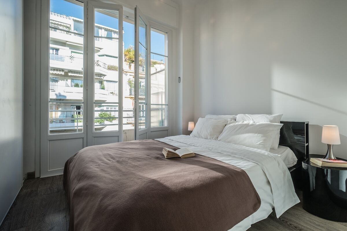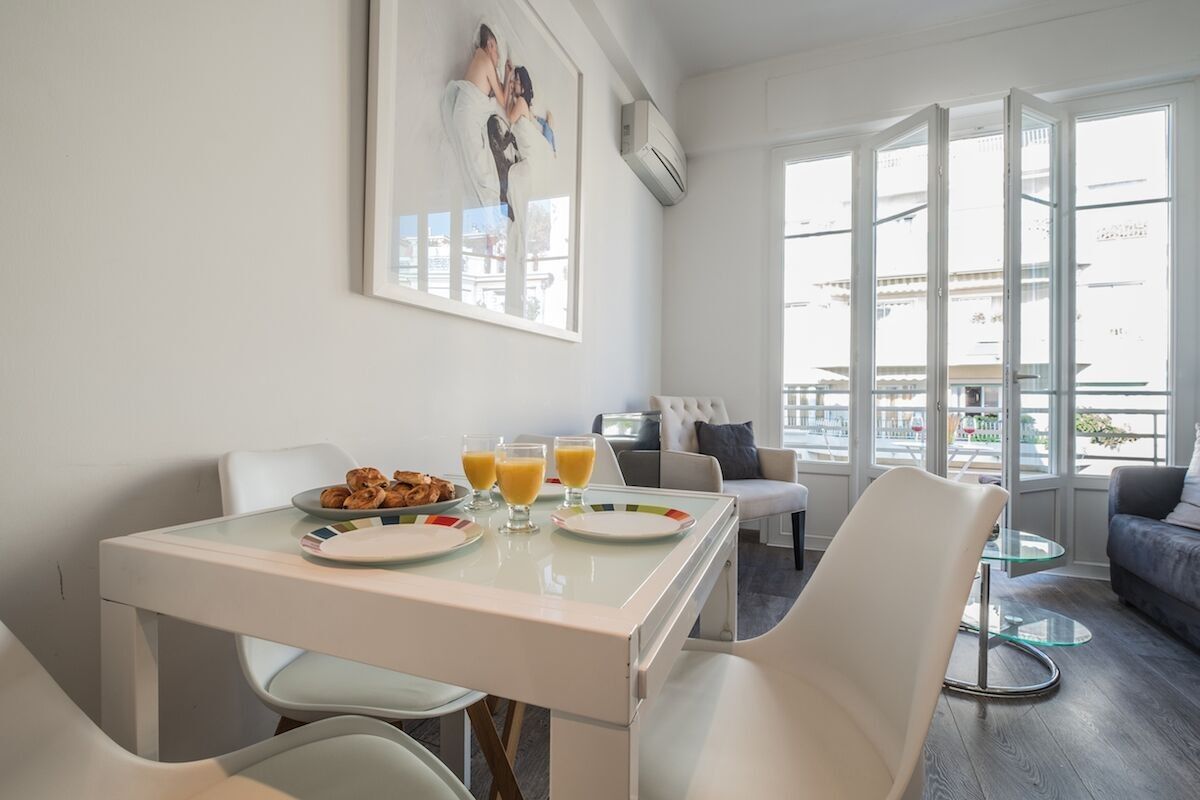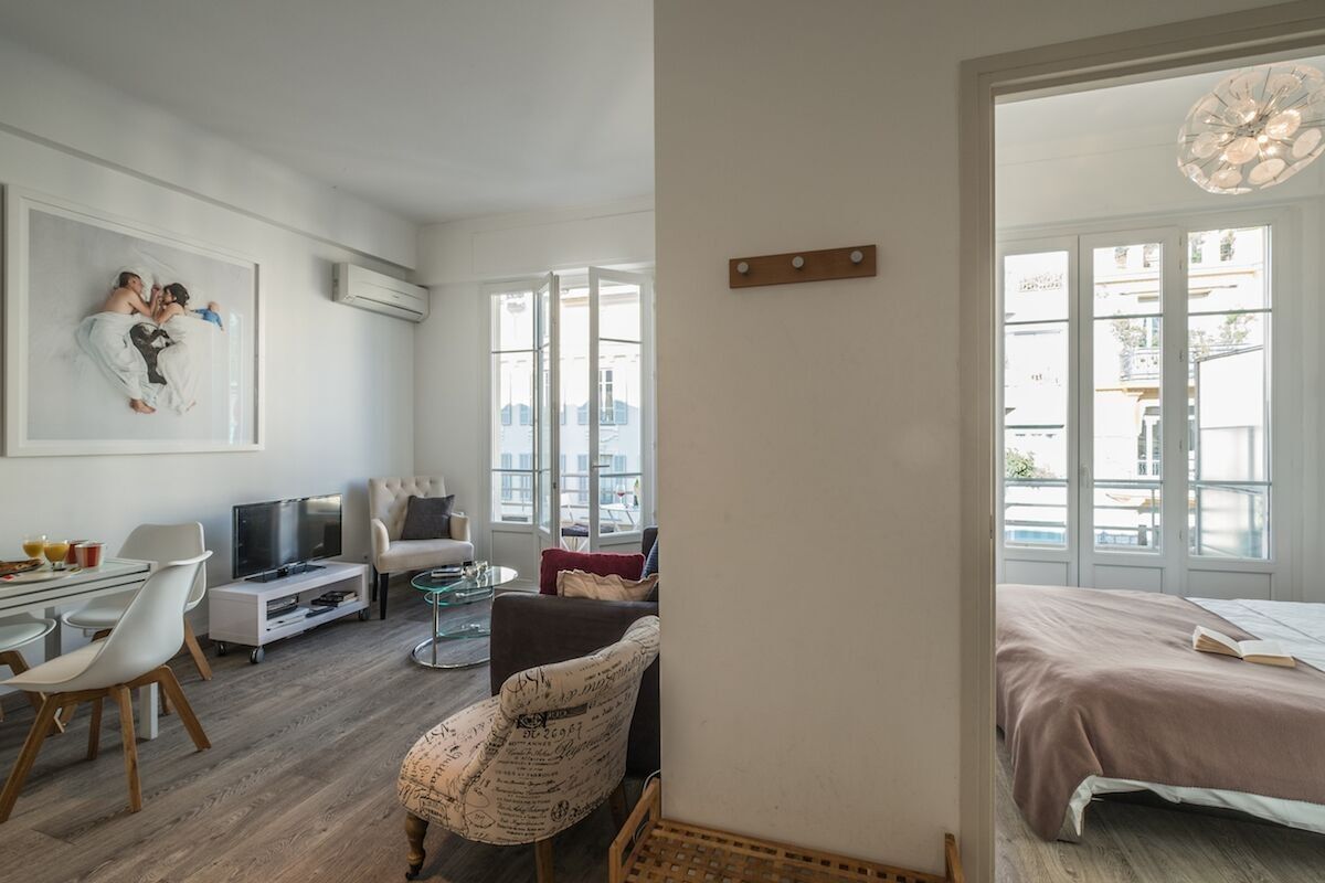 A charming, one-bedroom apartment with tall windows and a long balcony in the belle epoque neighbourhood of Les Musiciens. Cafe is less than a ten minute walk to the train station, shopping areas and the beach. A perfect place to stay for a couple, and there is a sofa bed, should you need it, for two extra guests.
